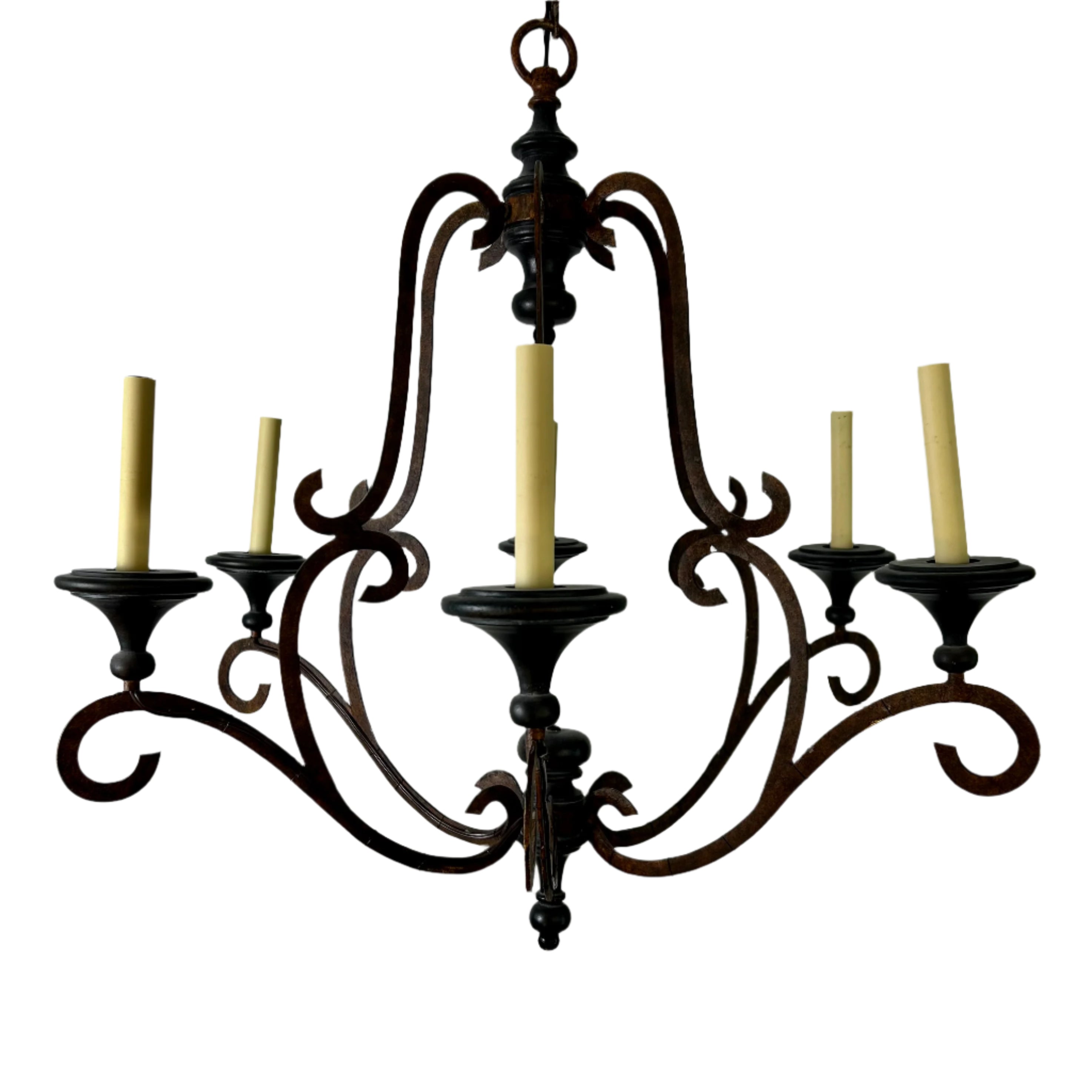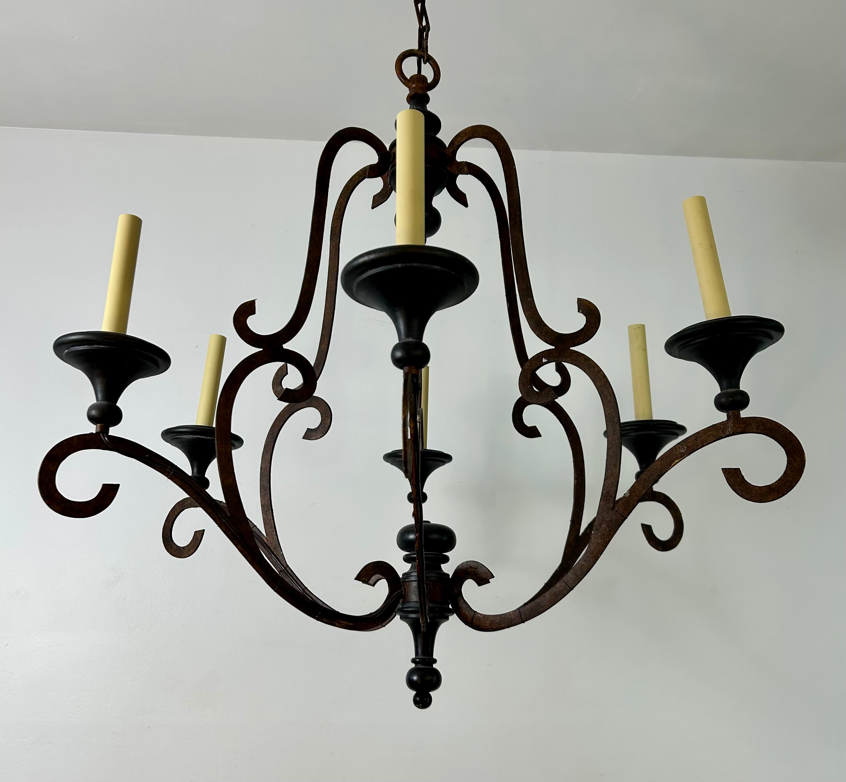 Chandelier, Oxidized Metal, Six Arm, Black Candle Cups