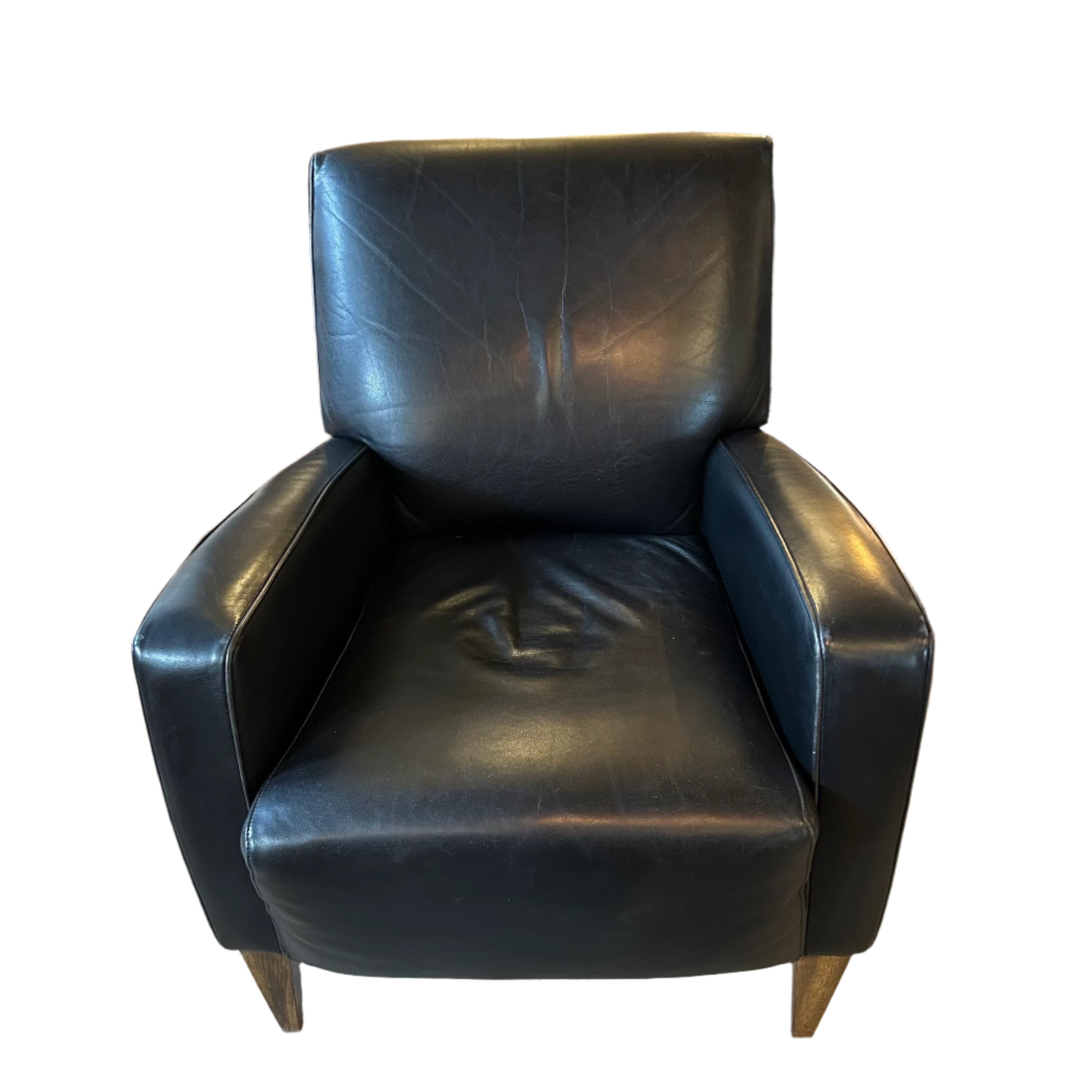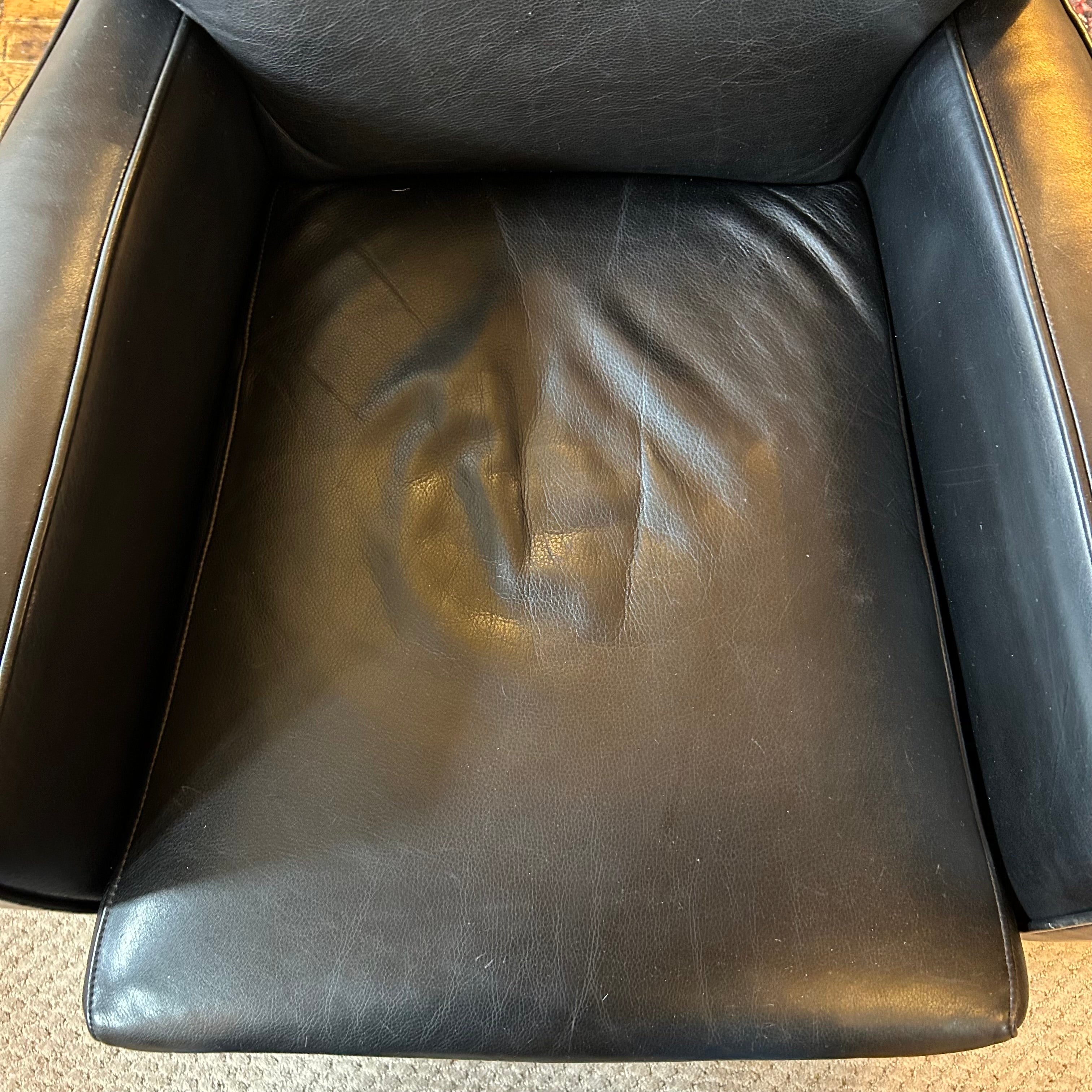American Leather Brand Arm Chair, Top Grain Leather, Black, Contemporary Style, Track Arm, Tapered Wooden Legs.