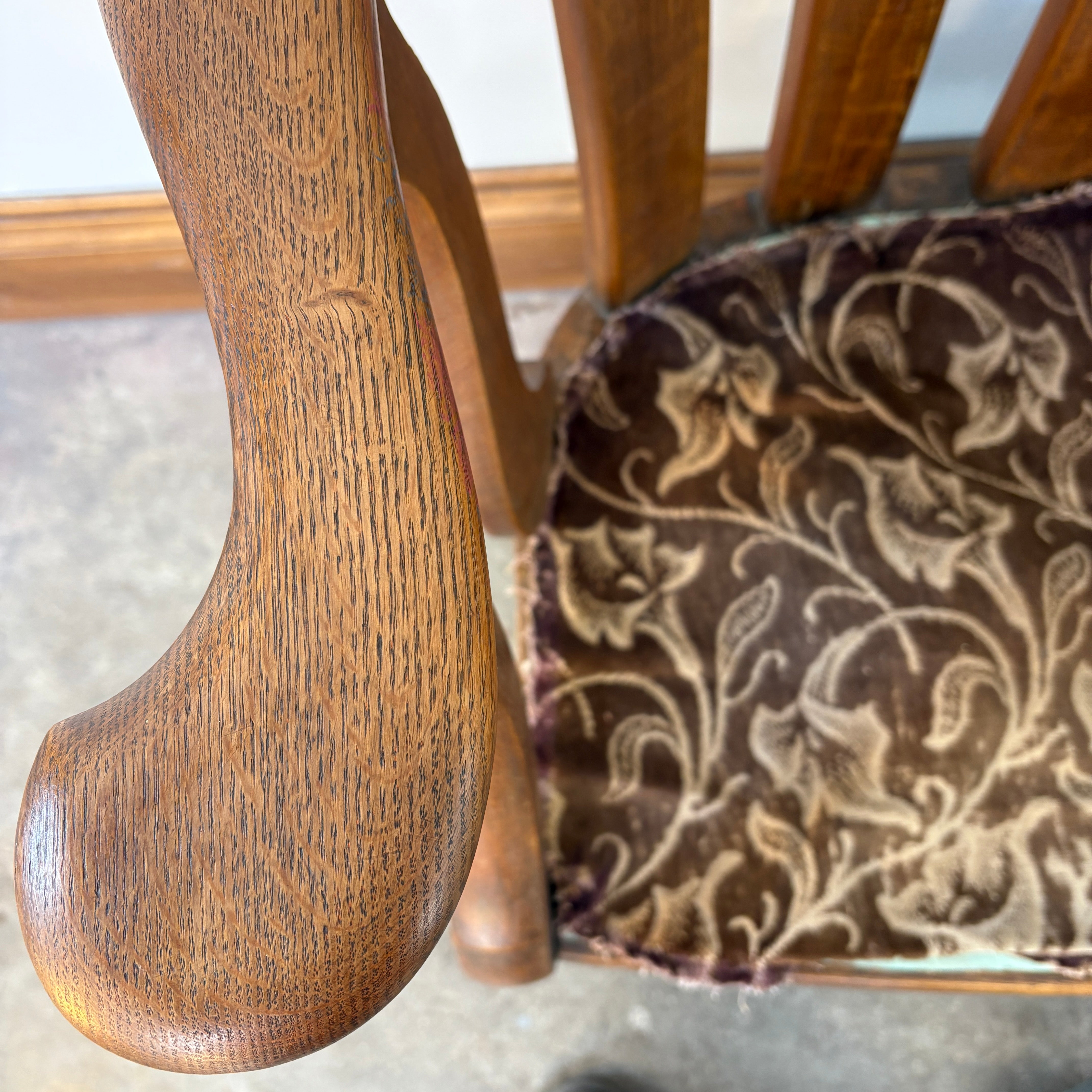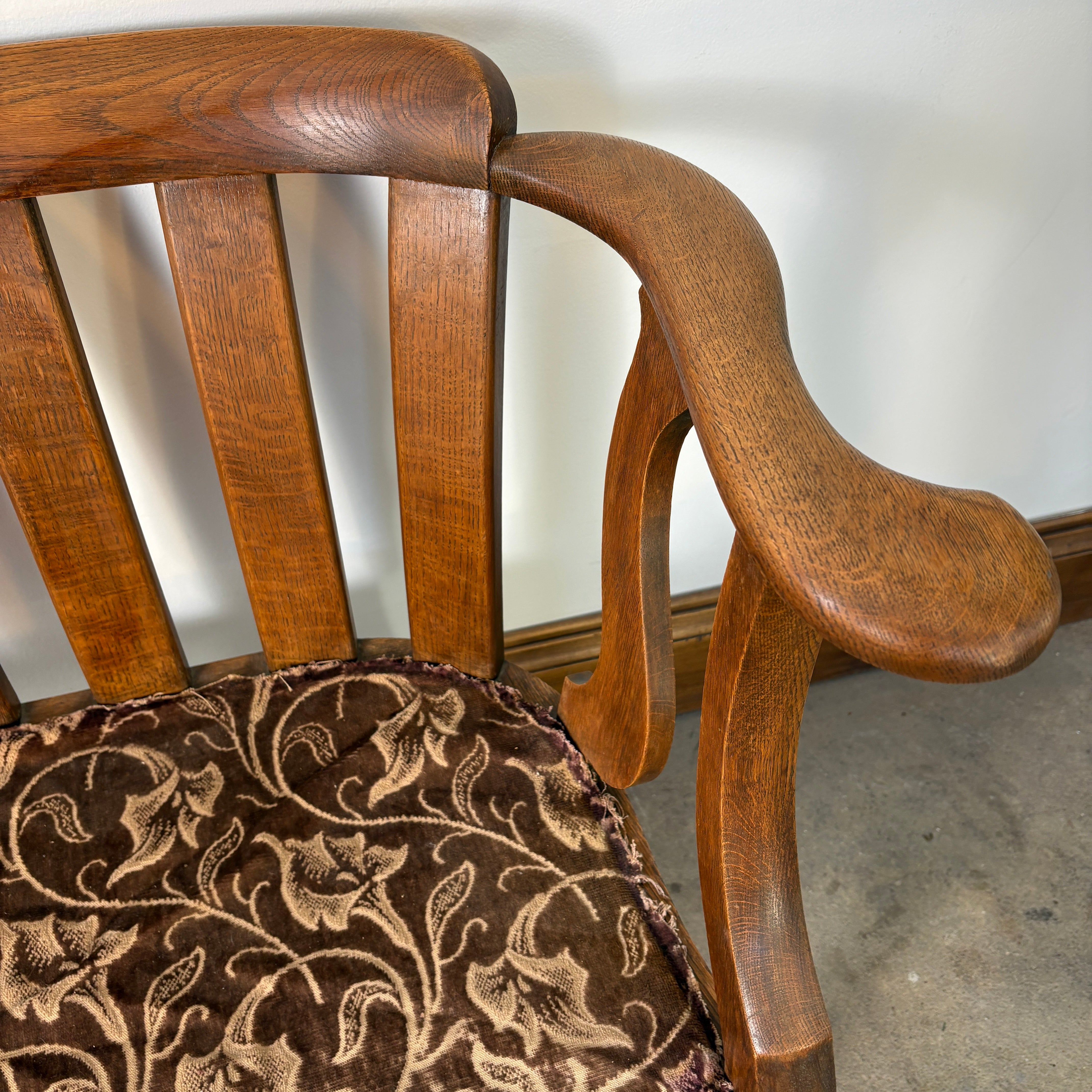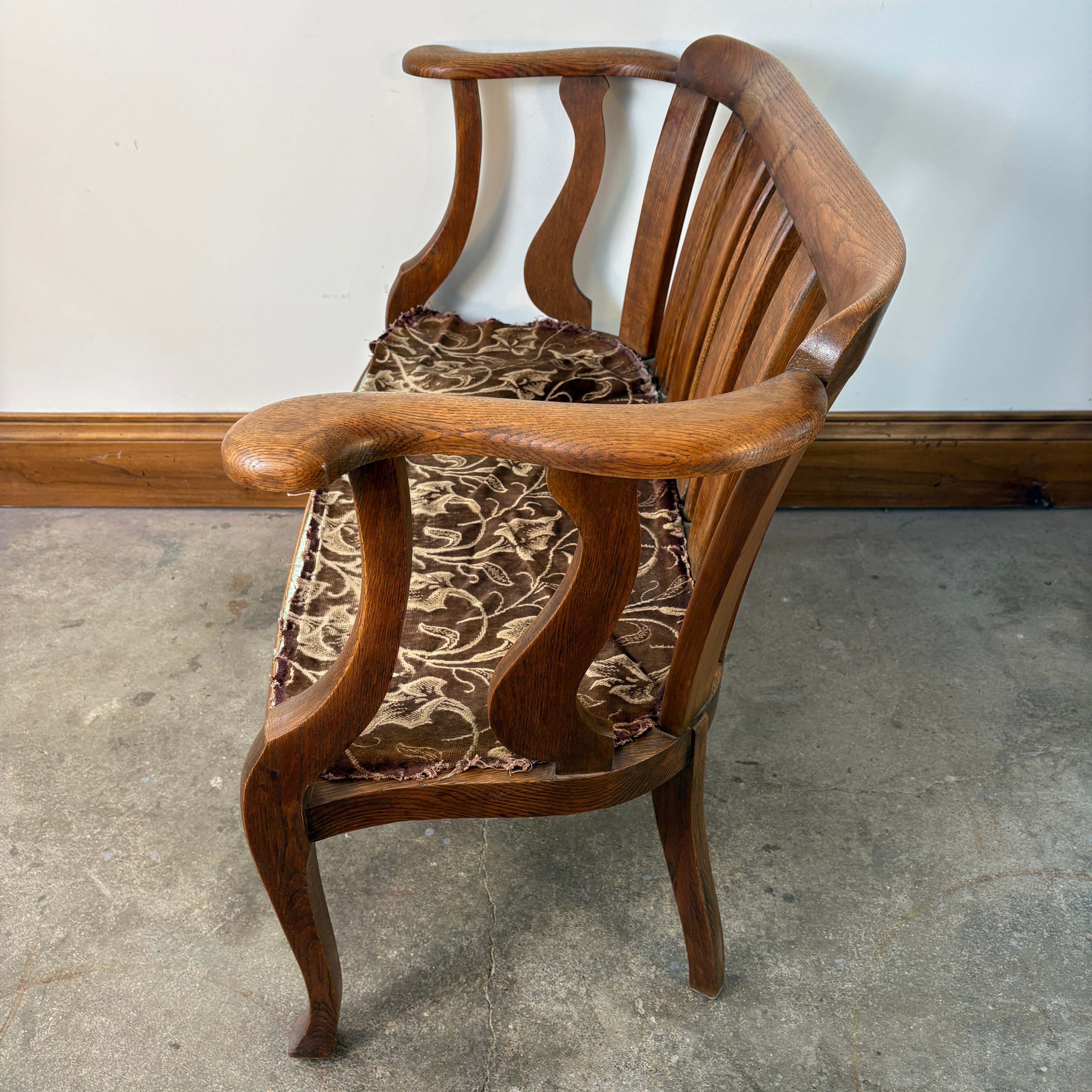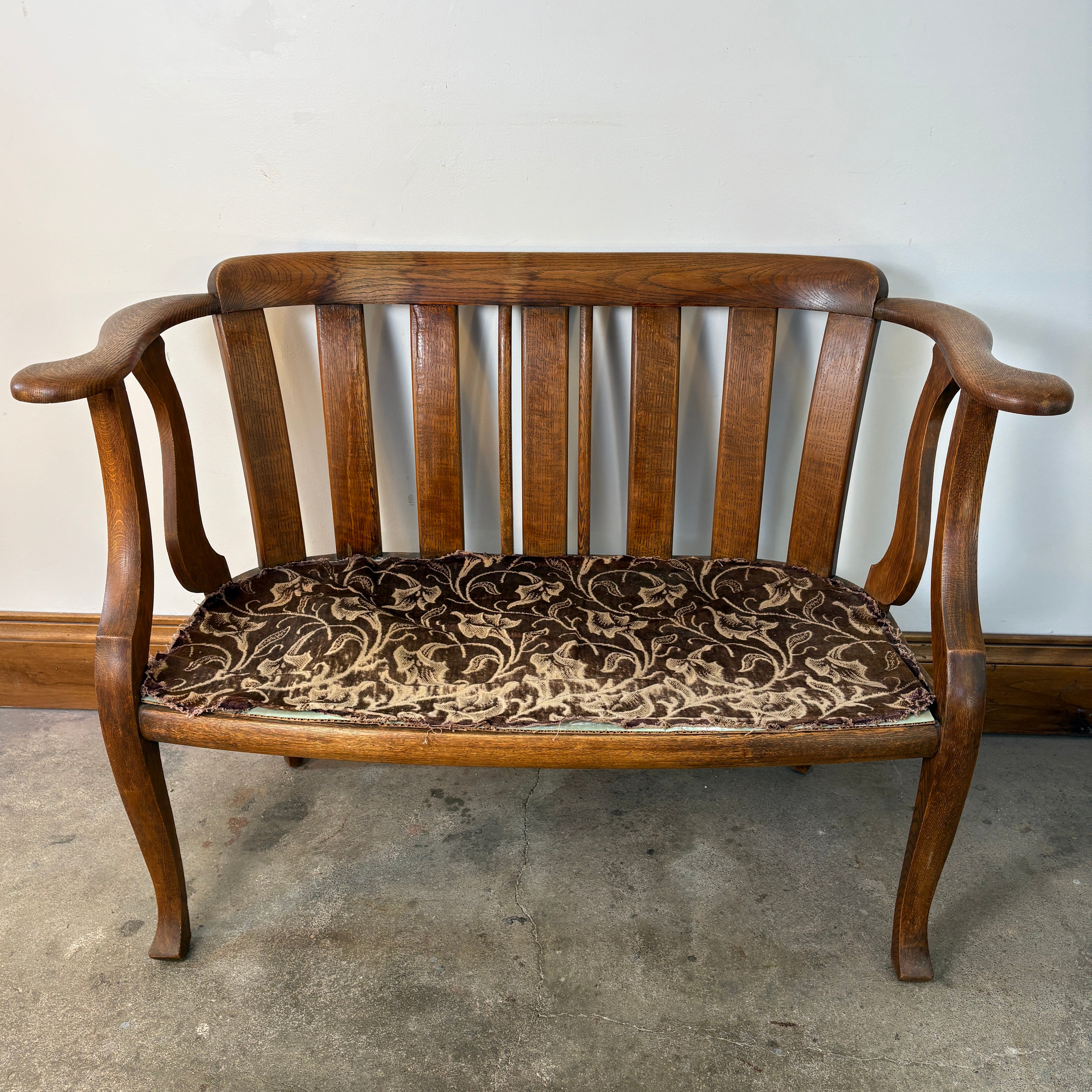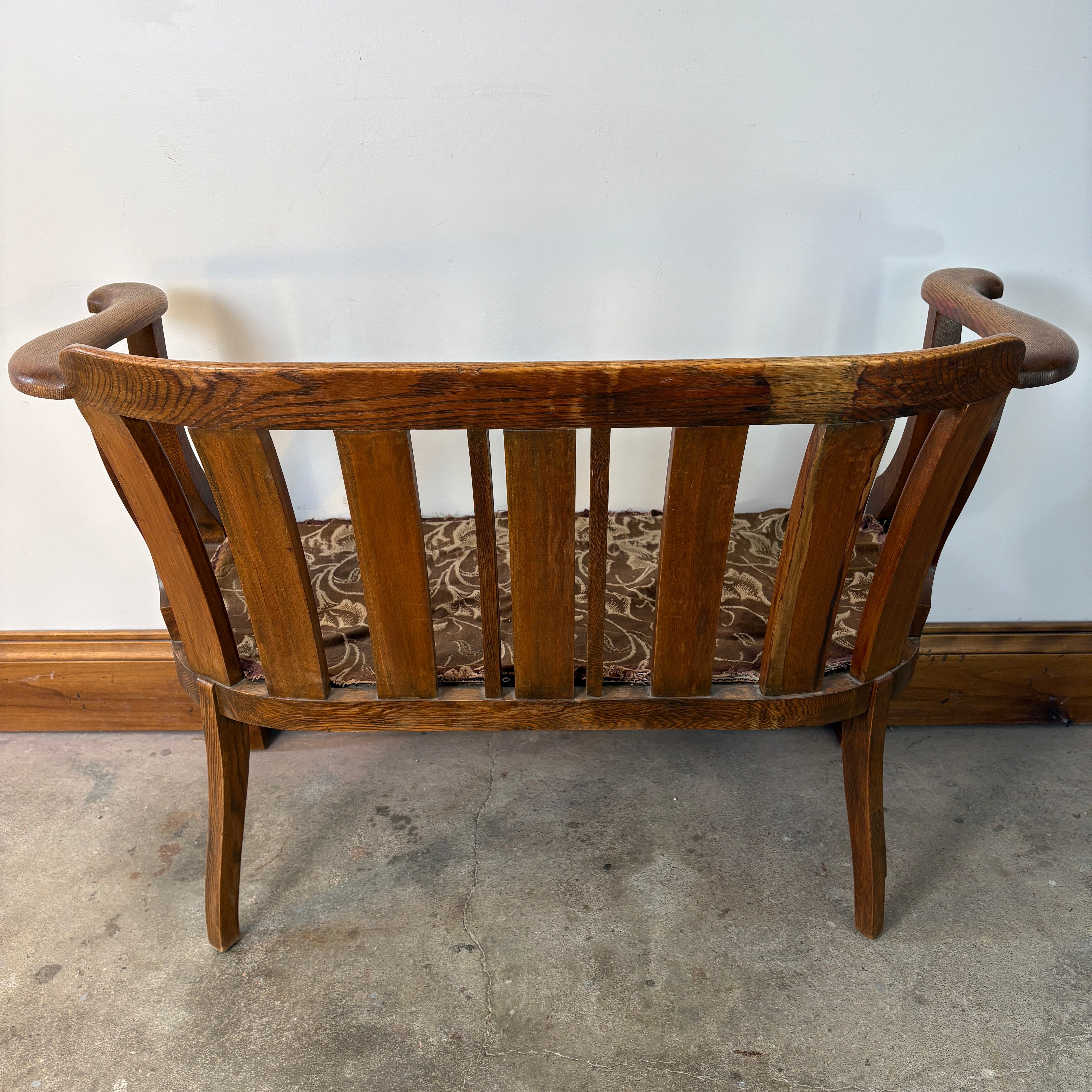 Antique Oak Settee with Seat Cushion in Need of New Support and Upholstery