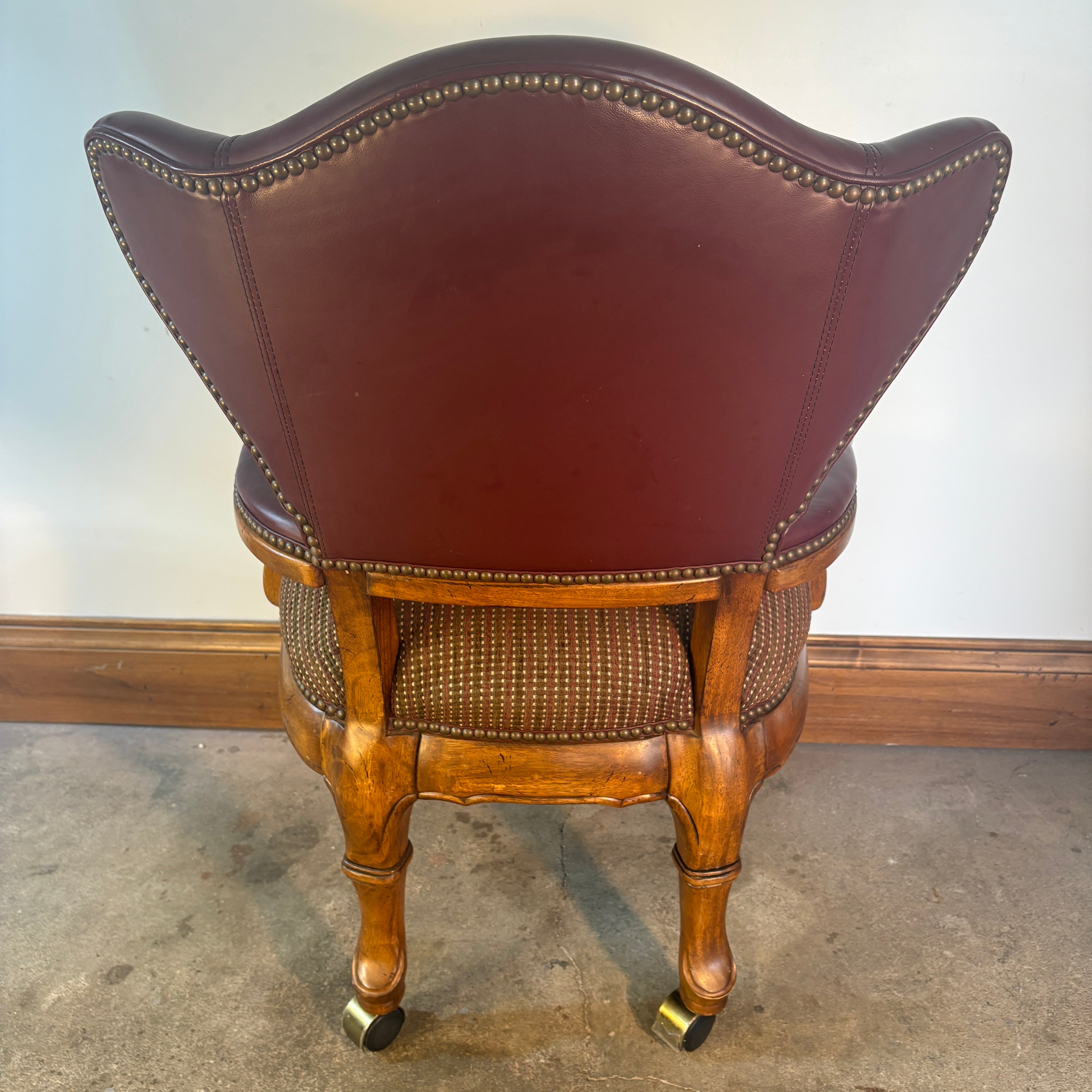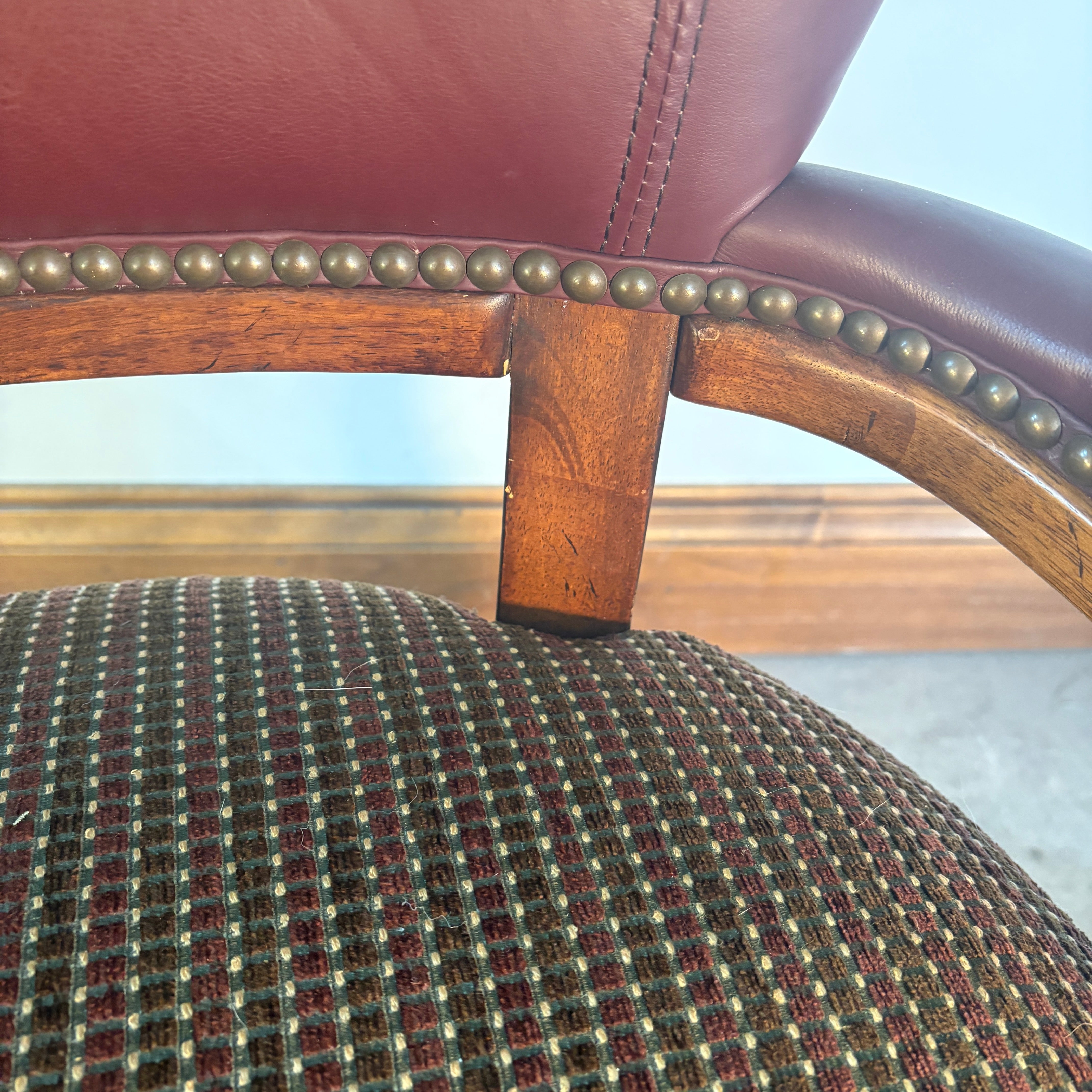 Set of 6 Thomasville Arm Chairs on Casters with Nail Head Detail, Combination of Leather and Fabric Upholstery