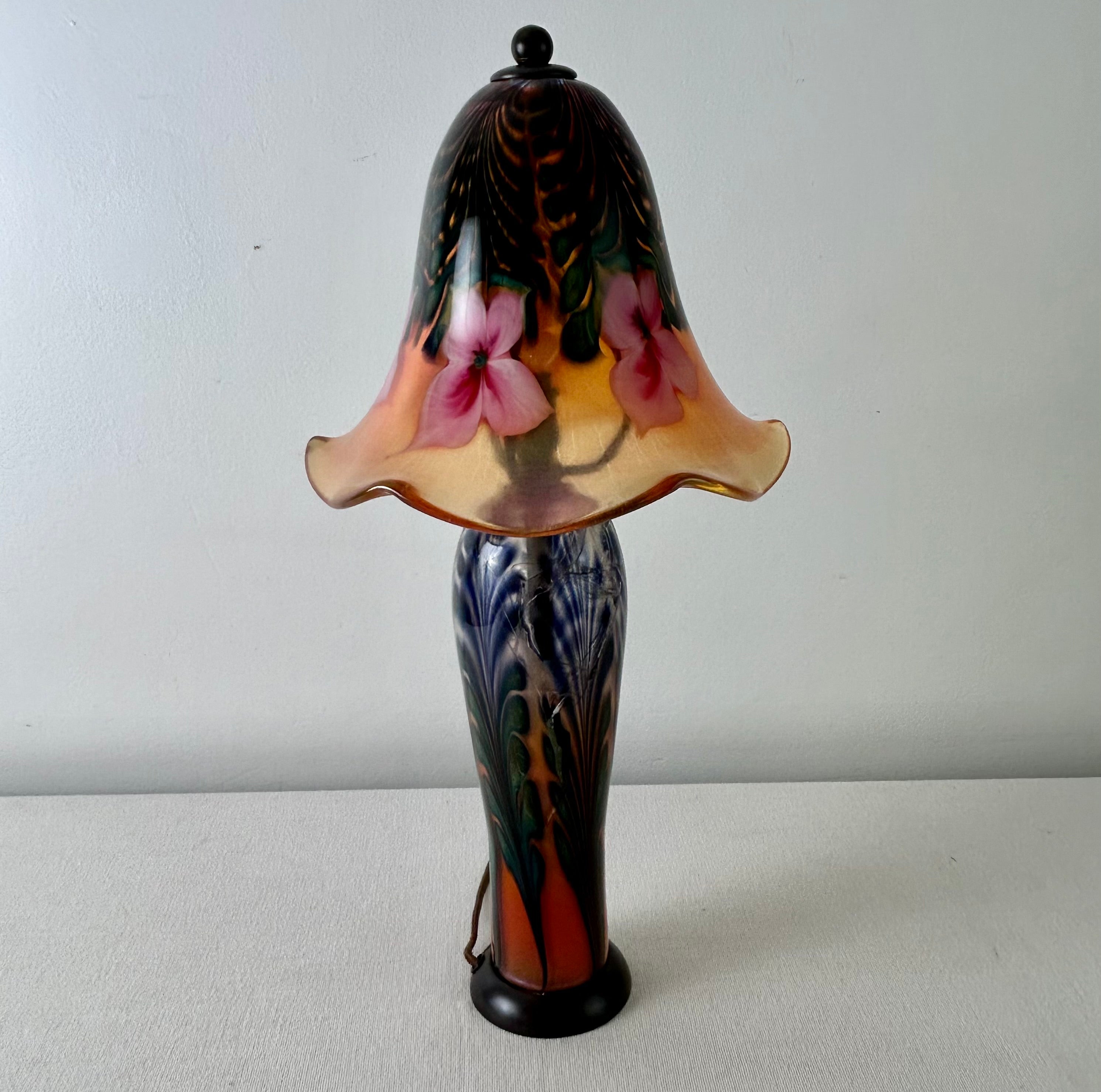 Art Glass Mini Lamp, multi-color. Note: has damage on base.