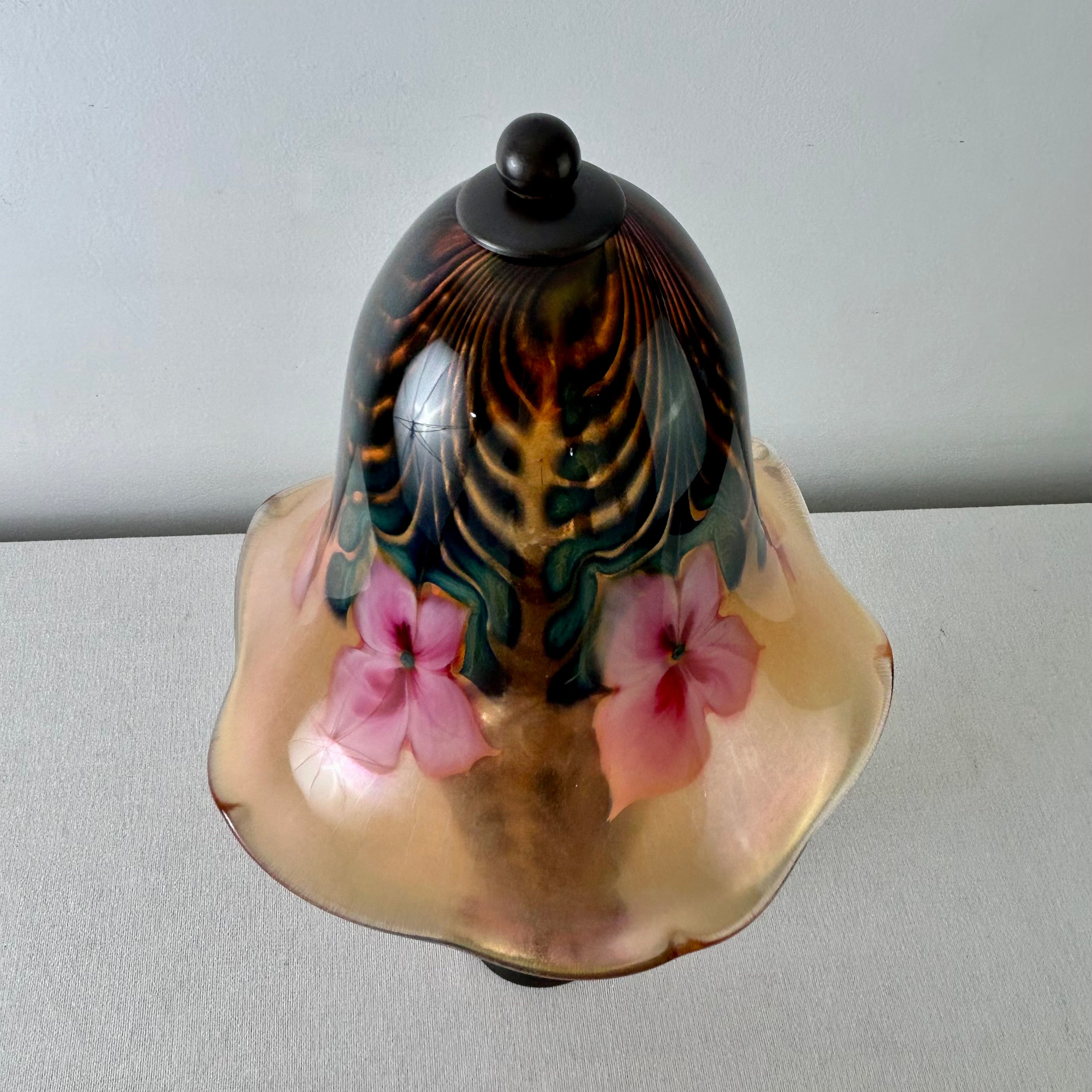 Condition: gently used, good. The shade is in excellent condition the base has an area with multiple cracks which can be seen in gallery images. Electrical functions as intended.
