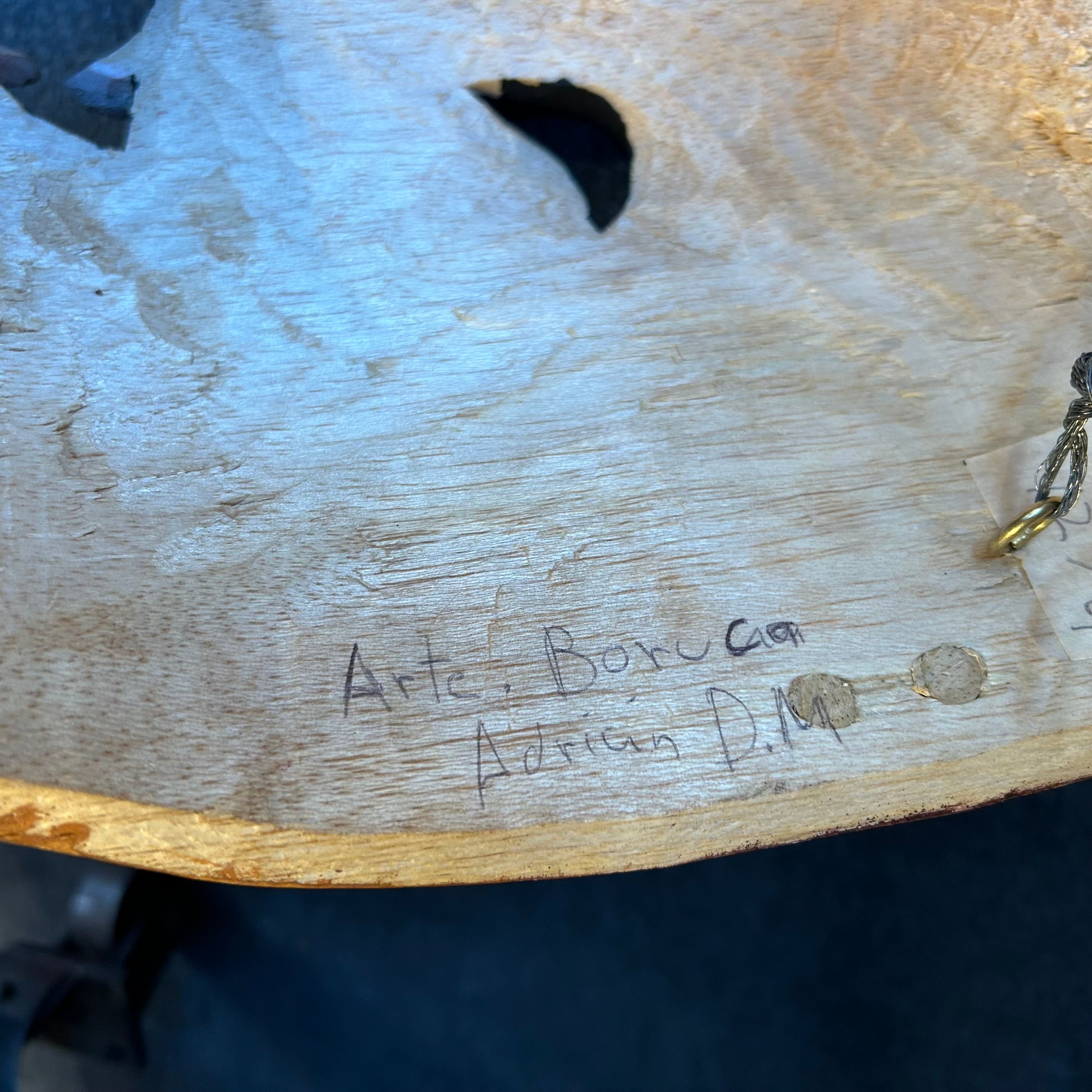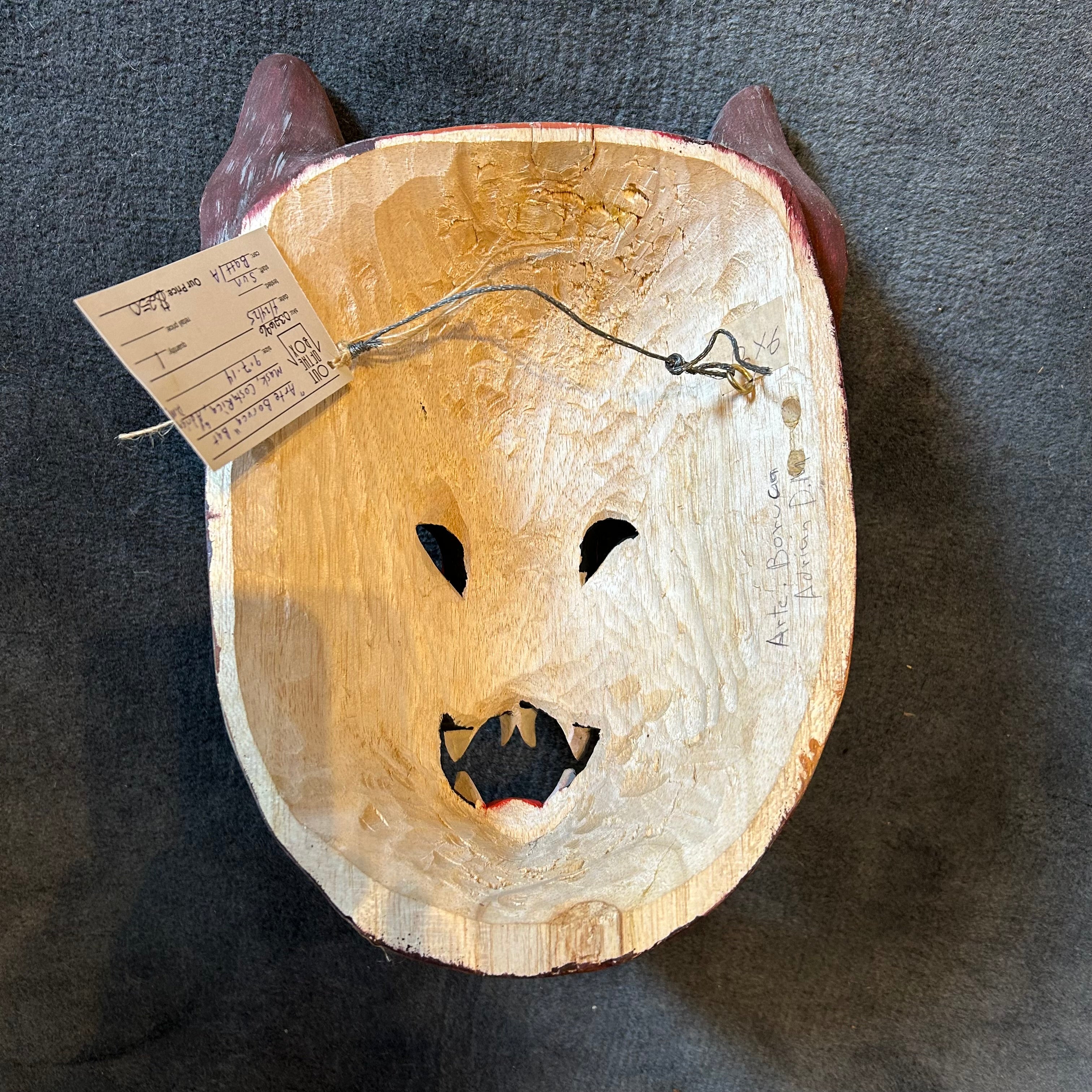 "Arte Baruca" Costa Rican hand carved bat mask, in wood, signed by Adrian D.M. From the estate of an art collector who lived in Costa Rica for some time.