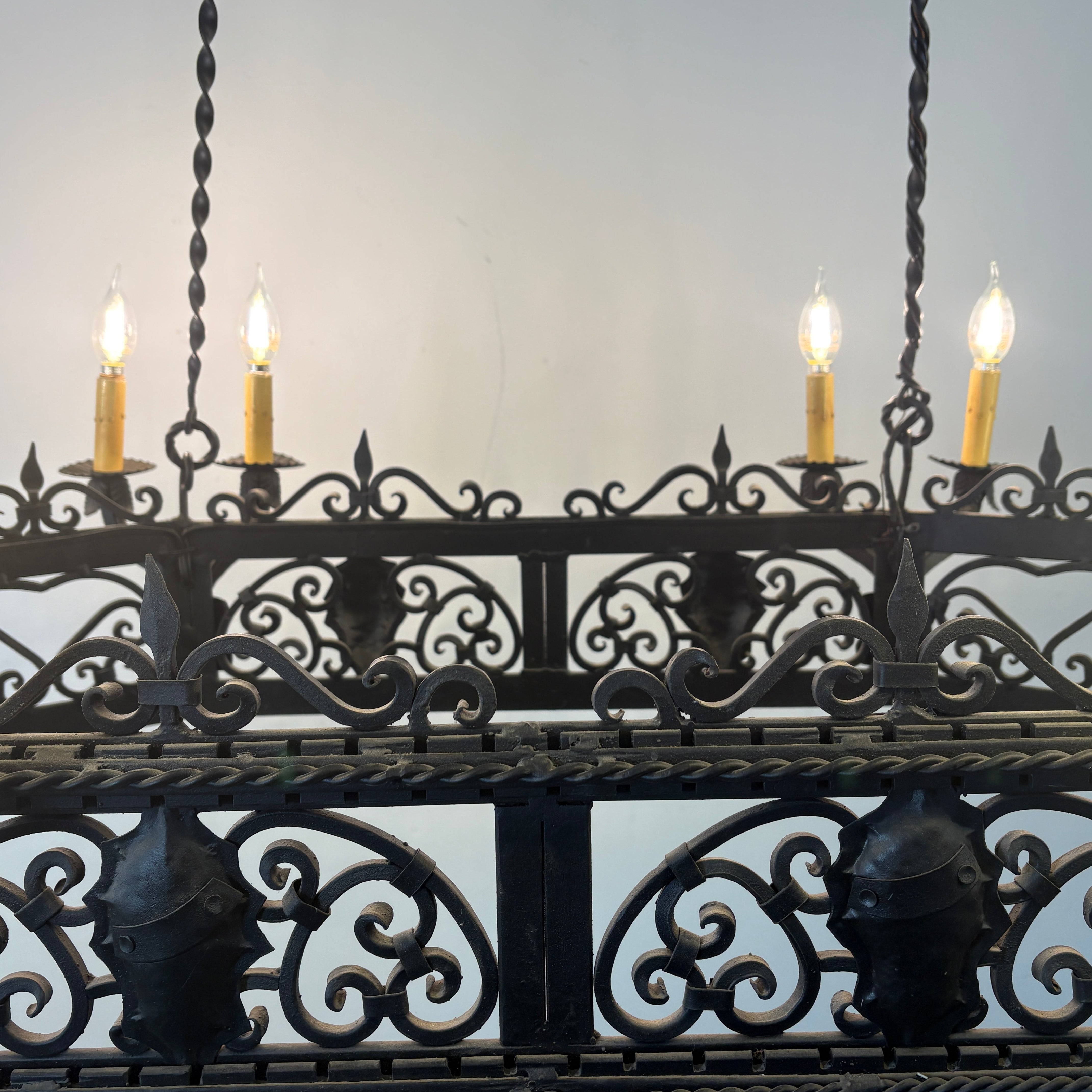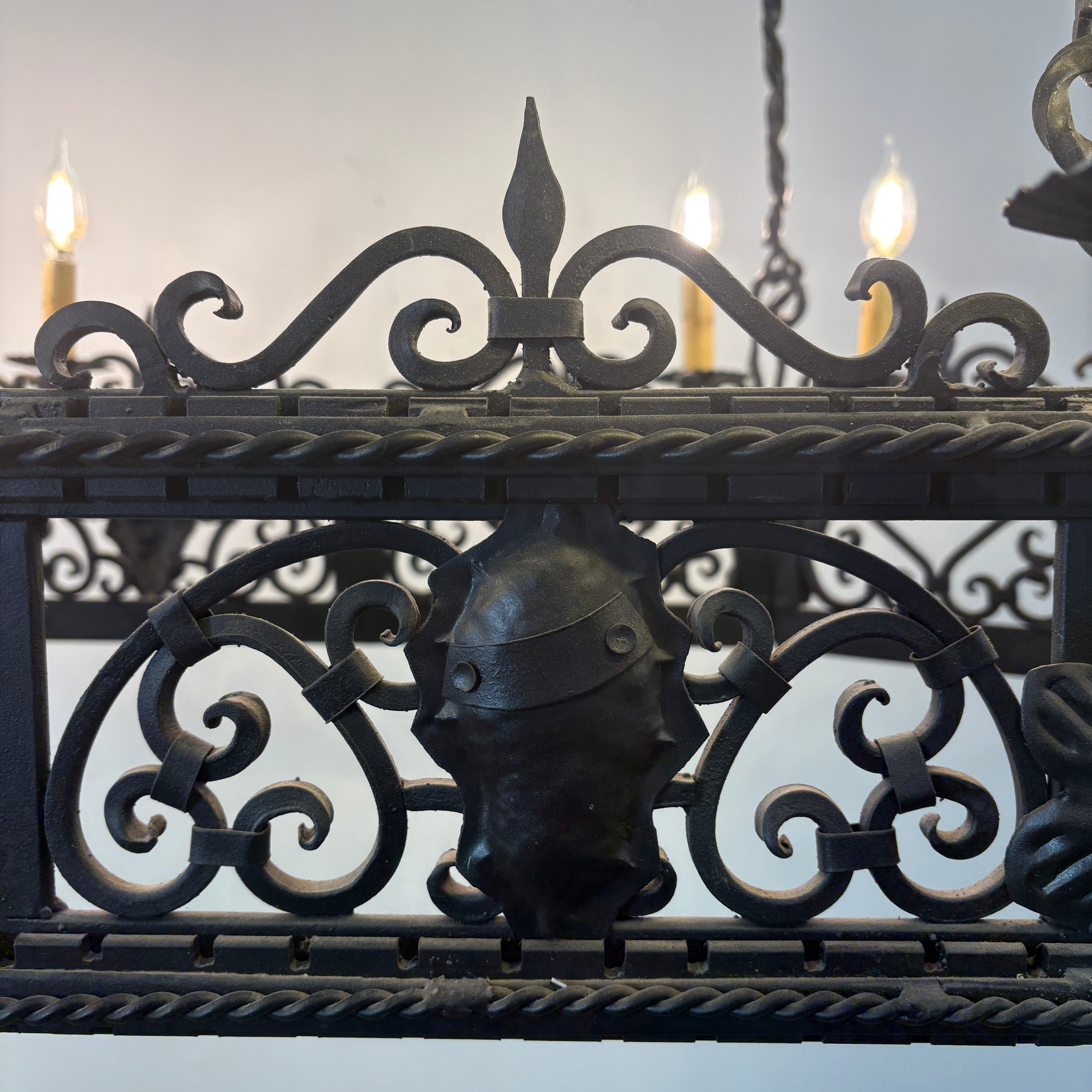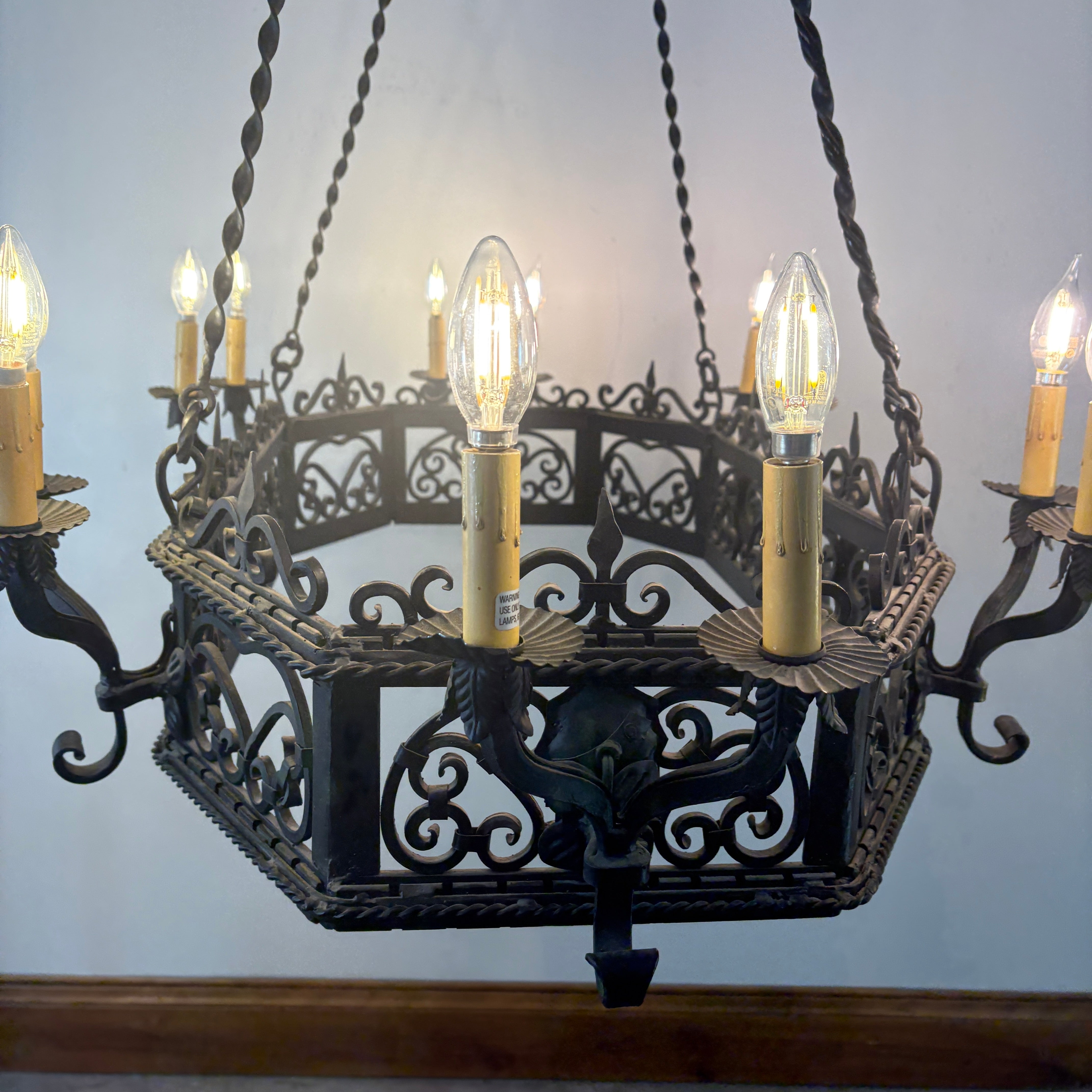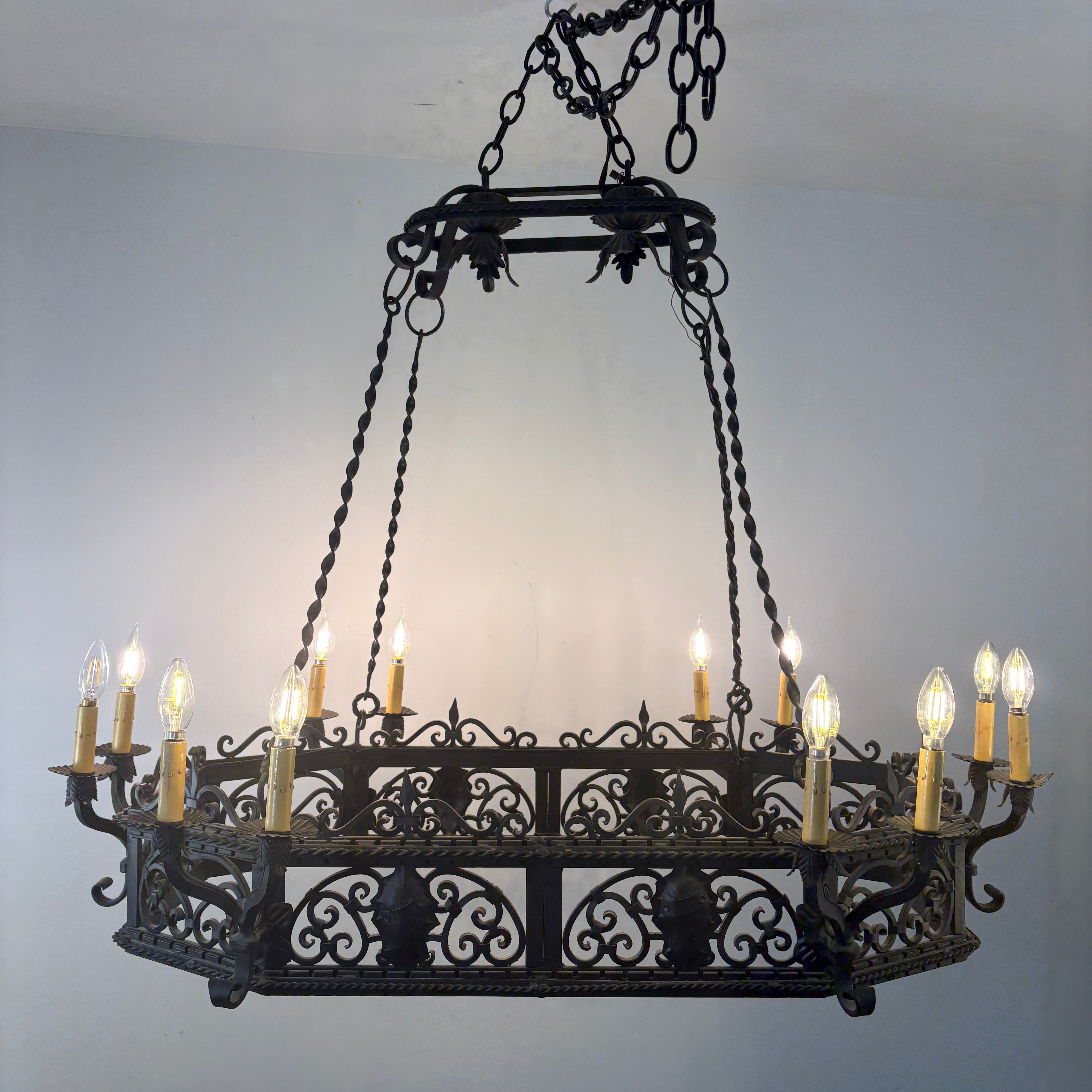 Arte De Mexico Wrought Iron Chandelier with Twelve Candle Stick Lights.