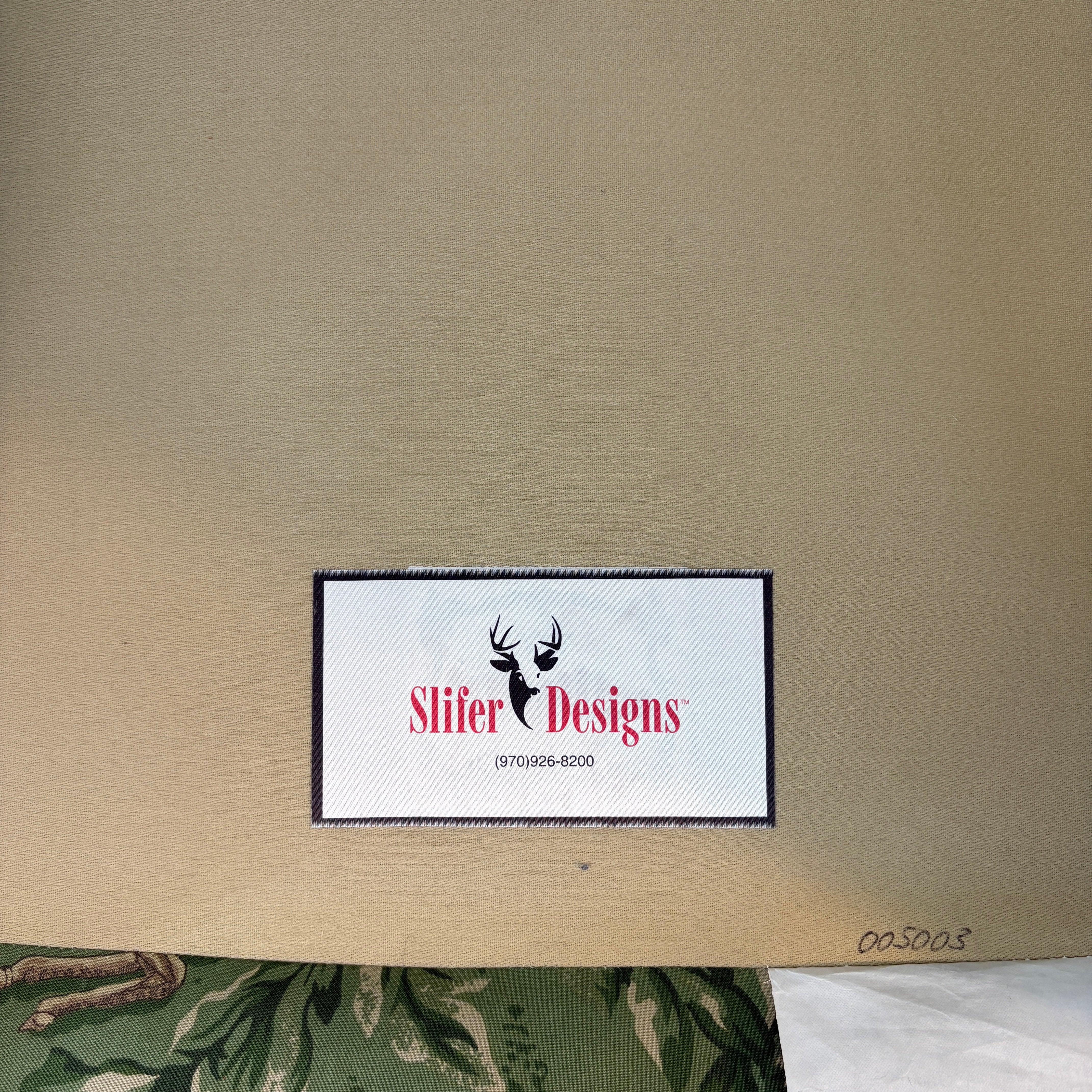 Baker / Slifer Designs Tufted Back Armchair Turned legs on Casters Green Deer Motif Fabric & Footstool