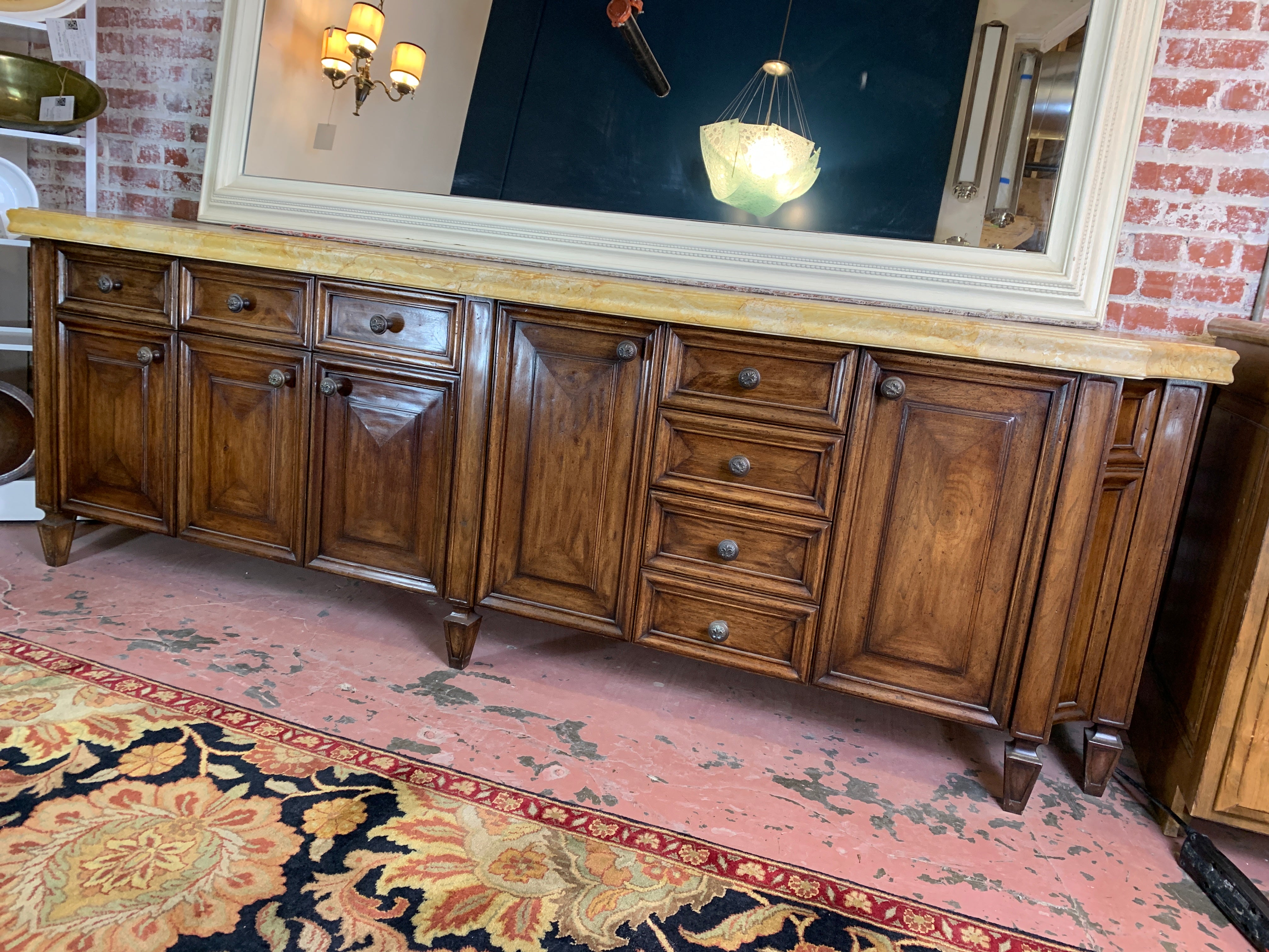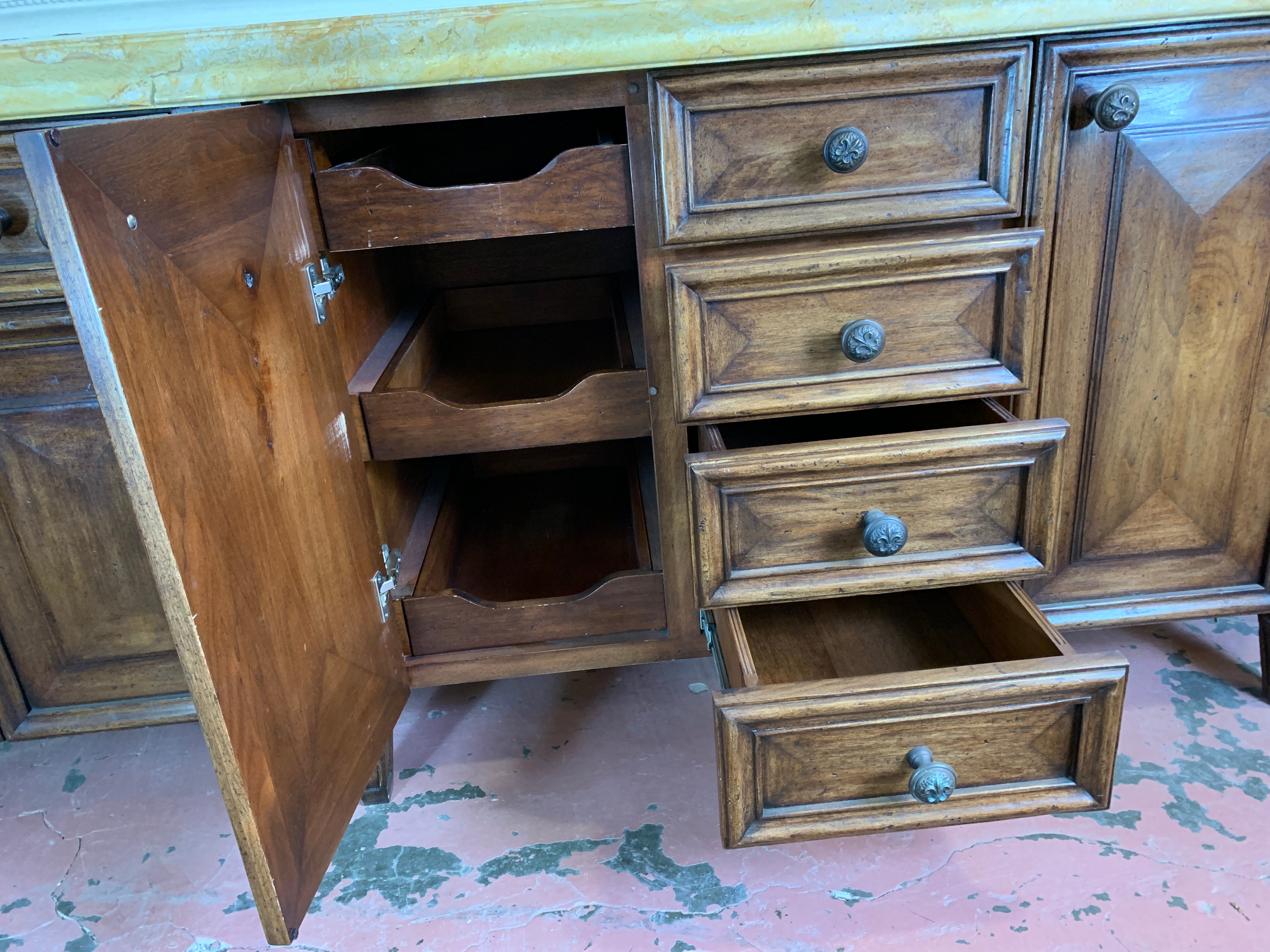 Bathroom Vanity, Solid Wood Construction, Stone Top, Single Under-mount Kohler Sink, Custom Made, Bronze Pulls, Multiple Drawers for Lots of Storage. Lots of Counter Space.