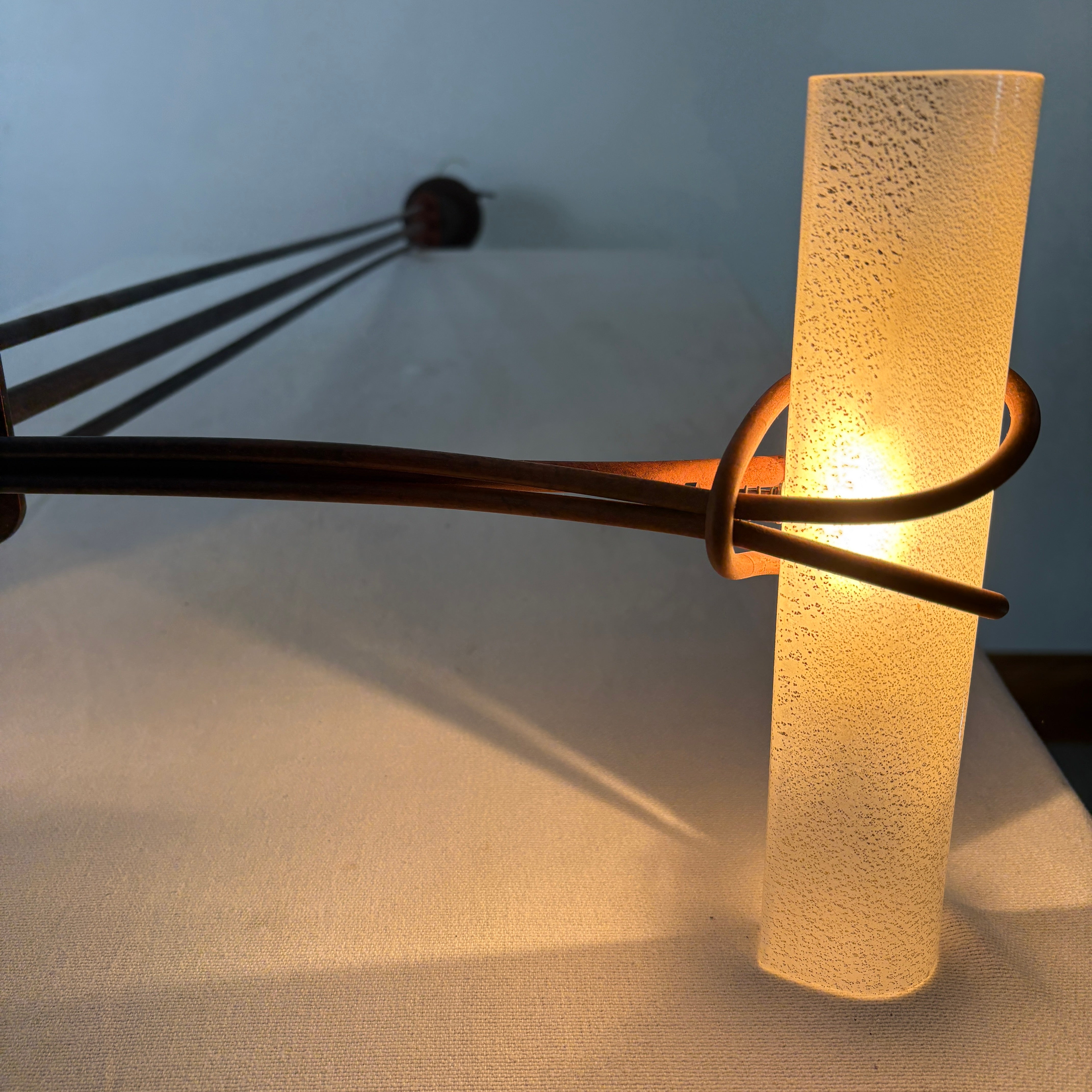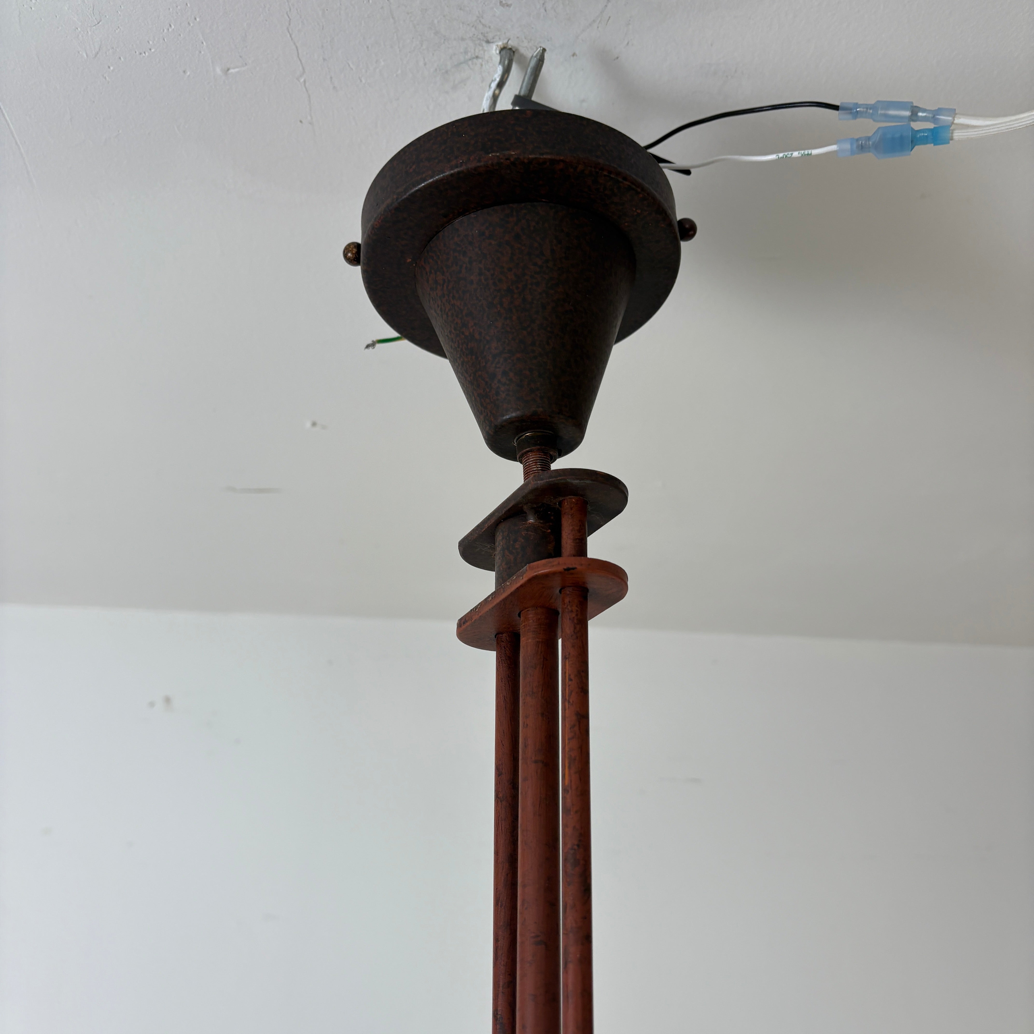 Bronze Double Sided Pendant with Frosted Glass Cylinder Shades. Made in Italy.