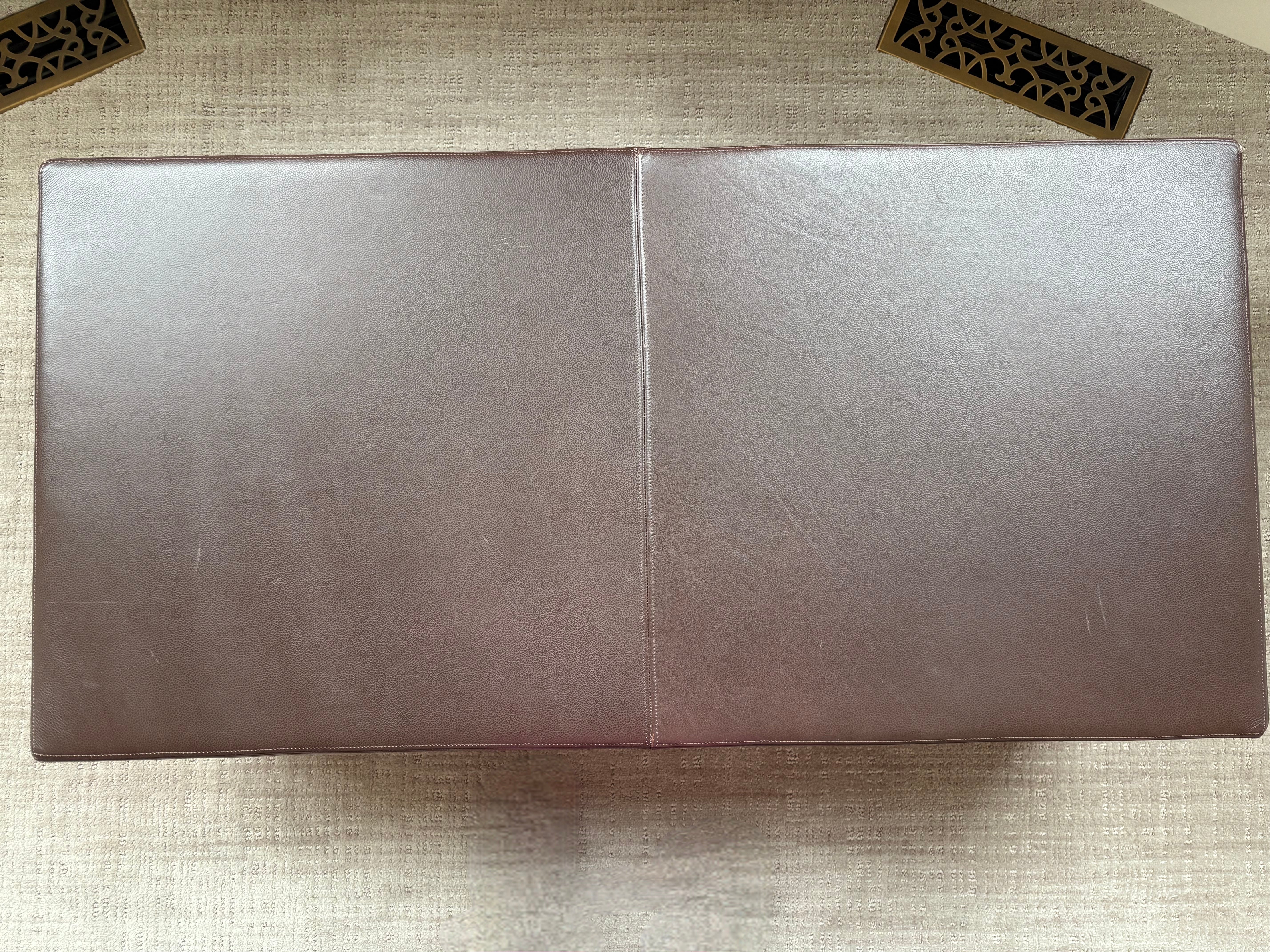 Brown Leather Bench/Ottoman with top stitching. This is broad and deep.