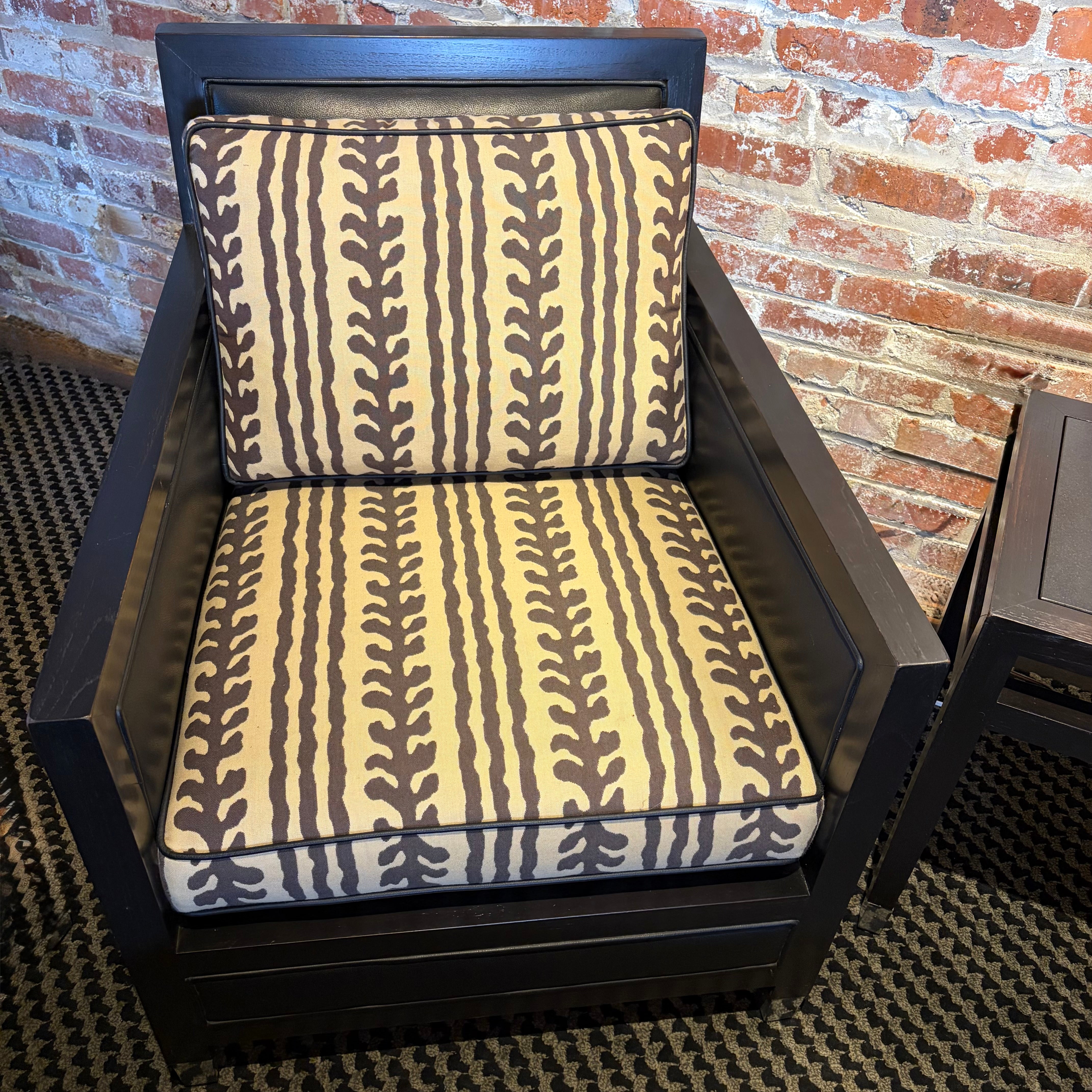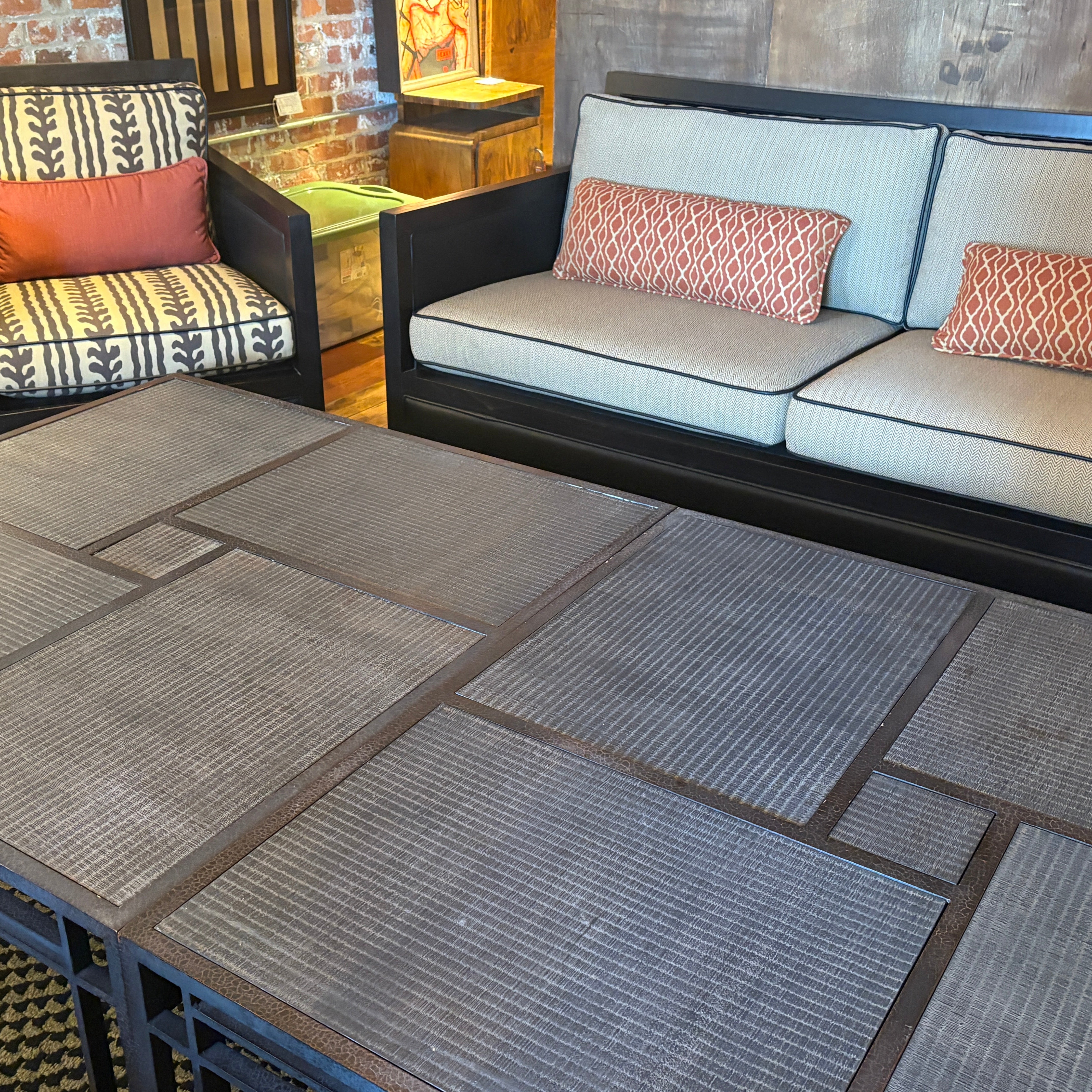 Century 5-piece Patio Set, comes with a Metropolitan side table, Kyoto Cocktail table, 2 Metropolitan lounge chairs with accent pillows, and a Metropolitan loveseat with accent pillows. Table lamps sold separately.
