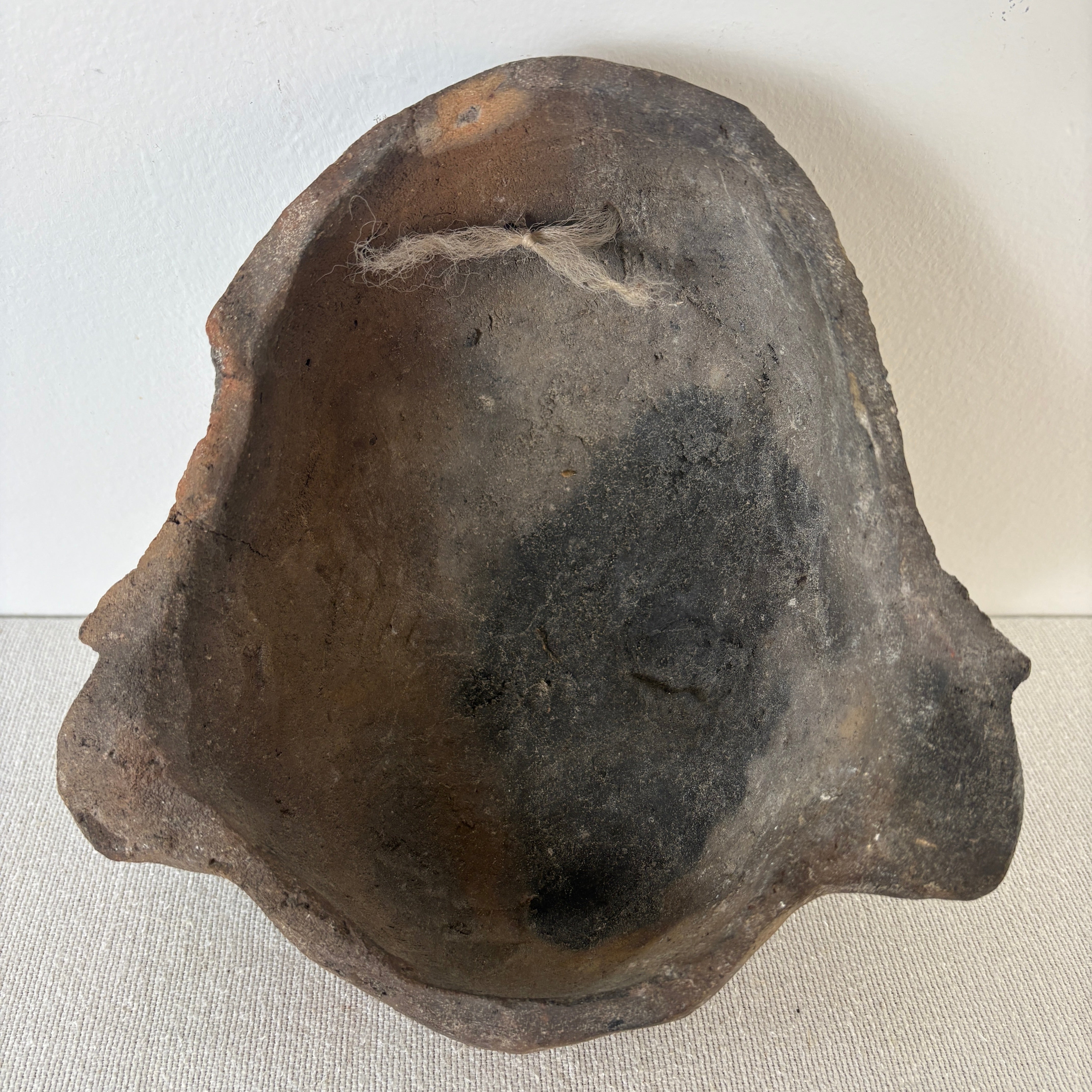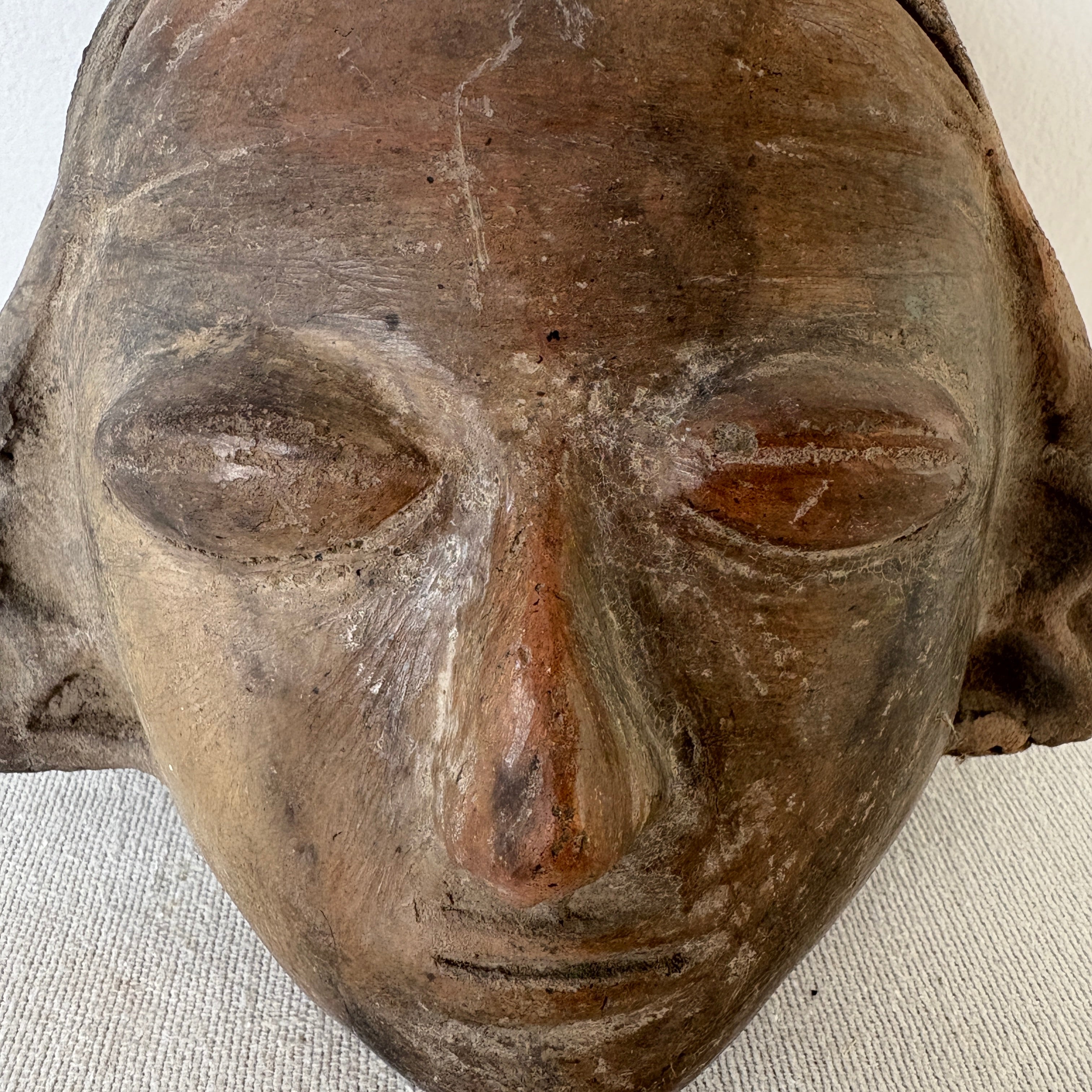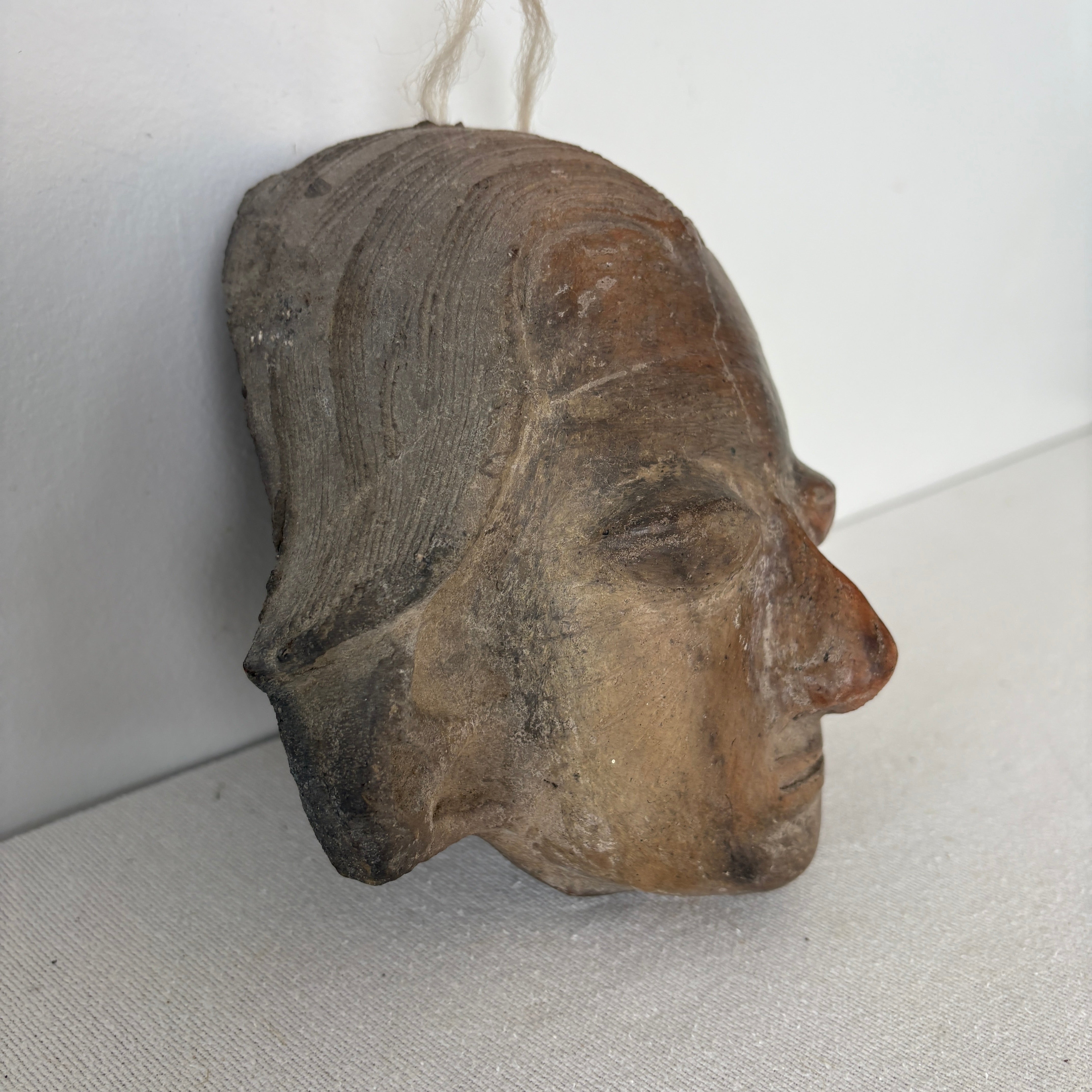 Ceramic Tribal Mask, Female II. It has twine and holes for mounting on wall.