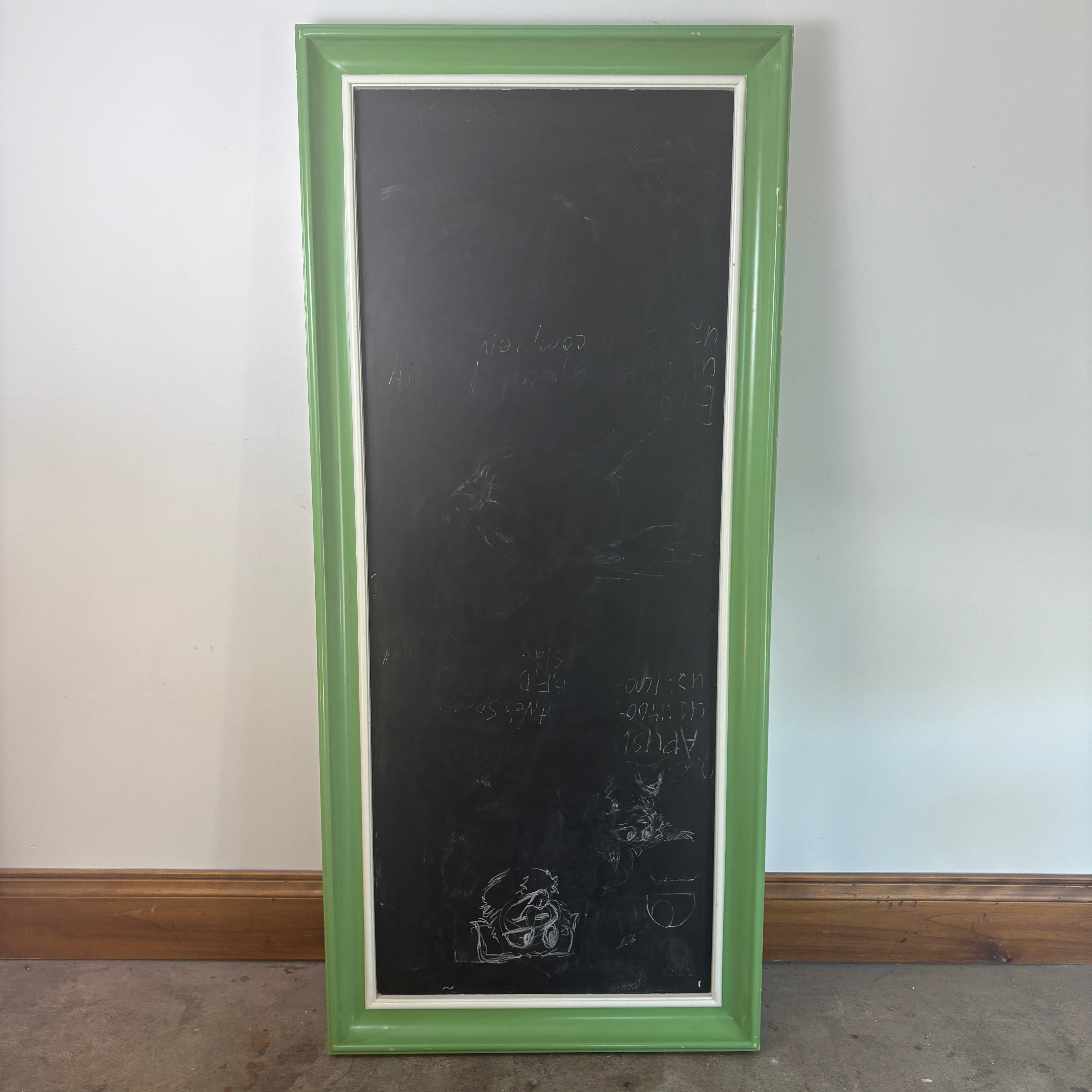 Chalk Board Framed in Green Painted Particle Board. Note: this coordinates with a mirror and cork board on our site.