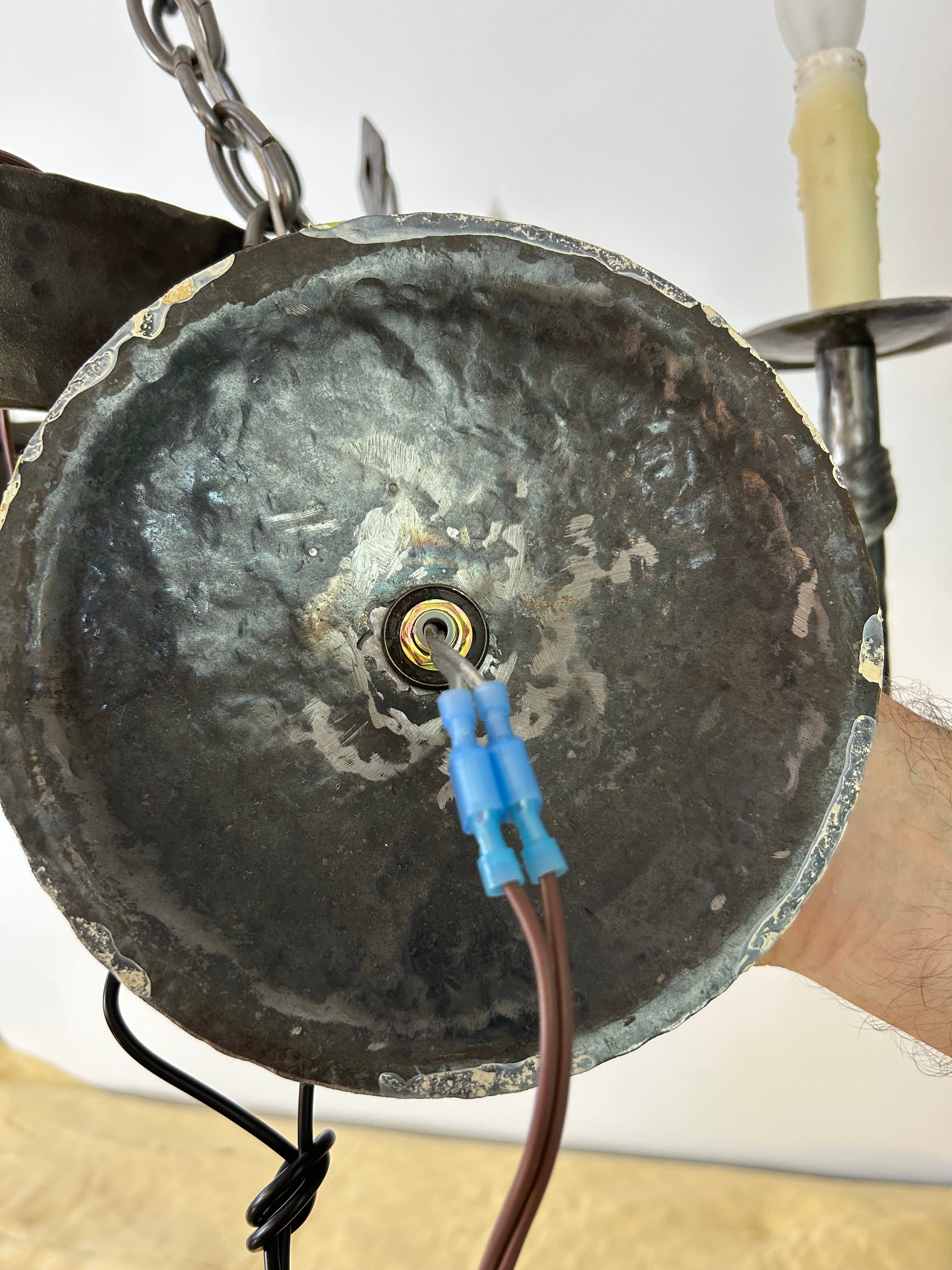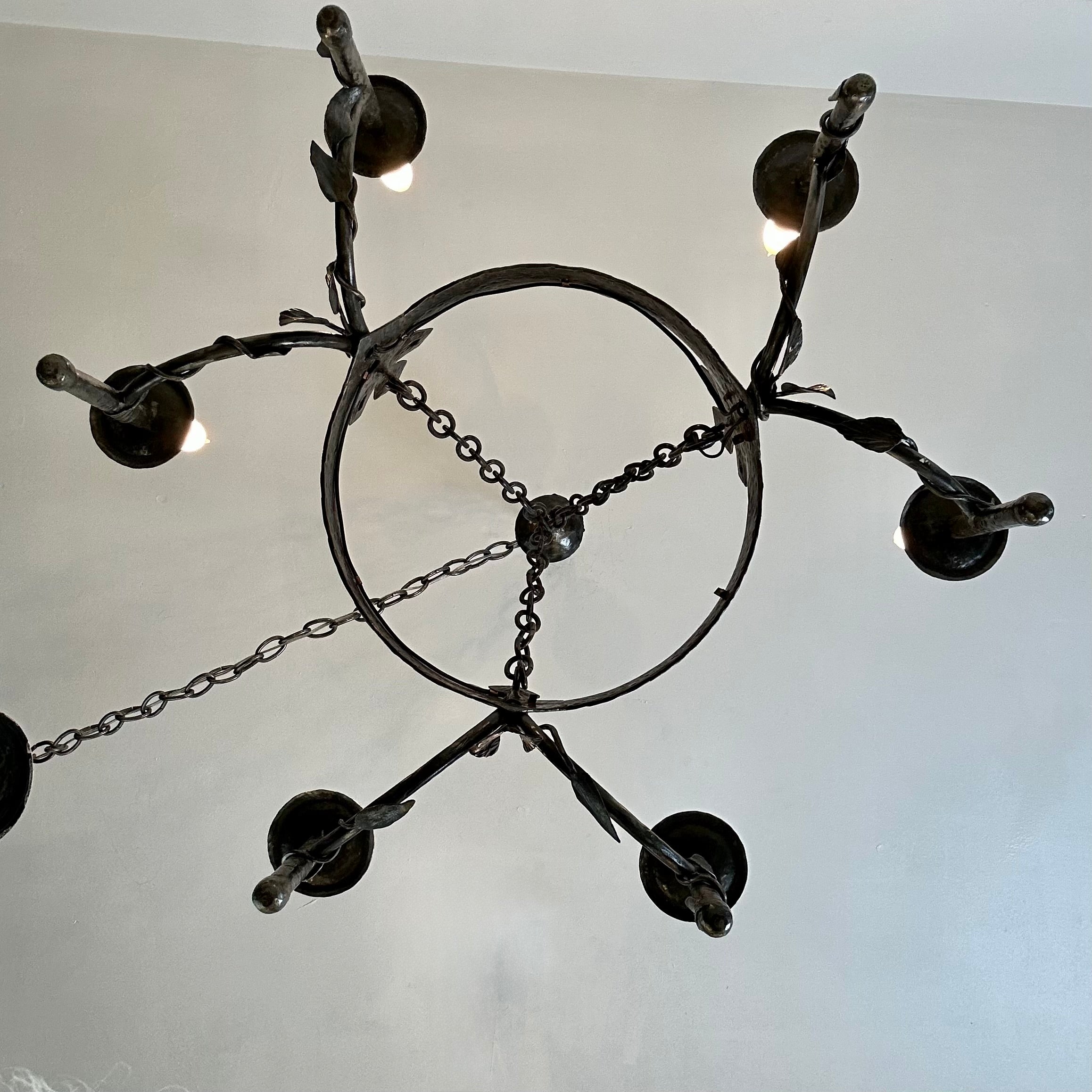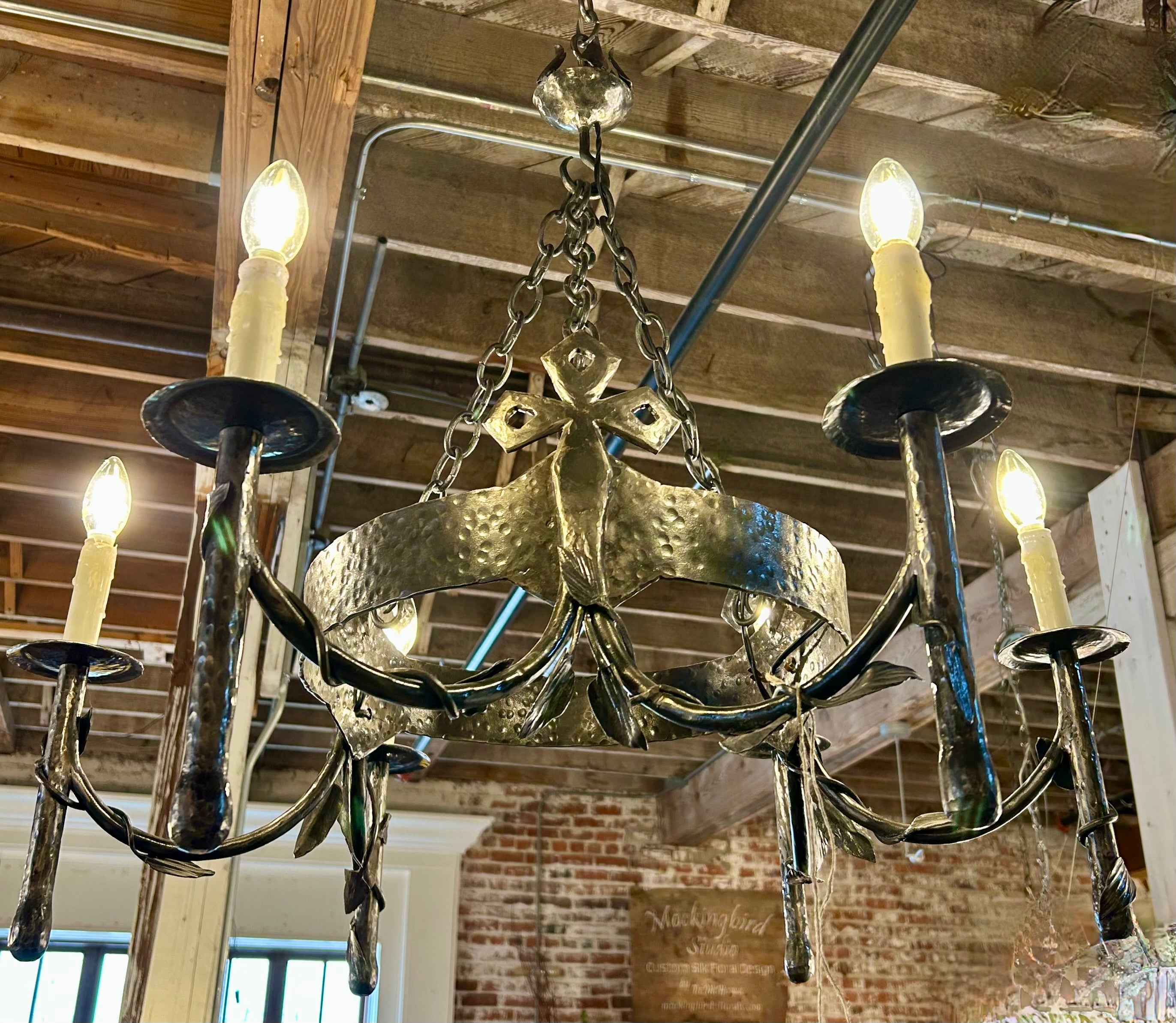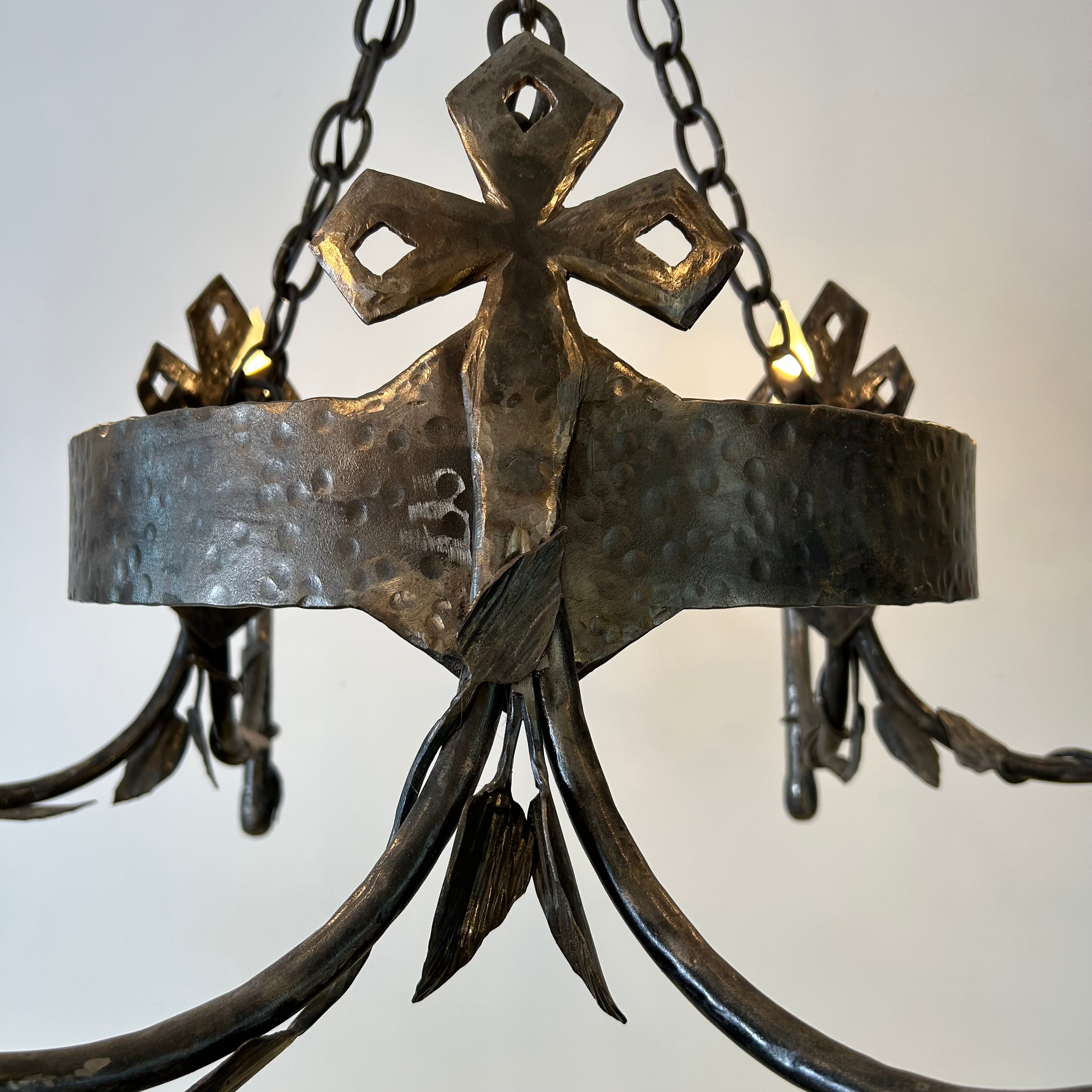 Chandelier in gothic style with a pewter finish, six candlesticks.
