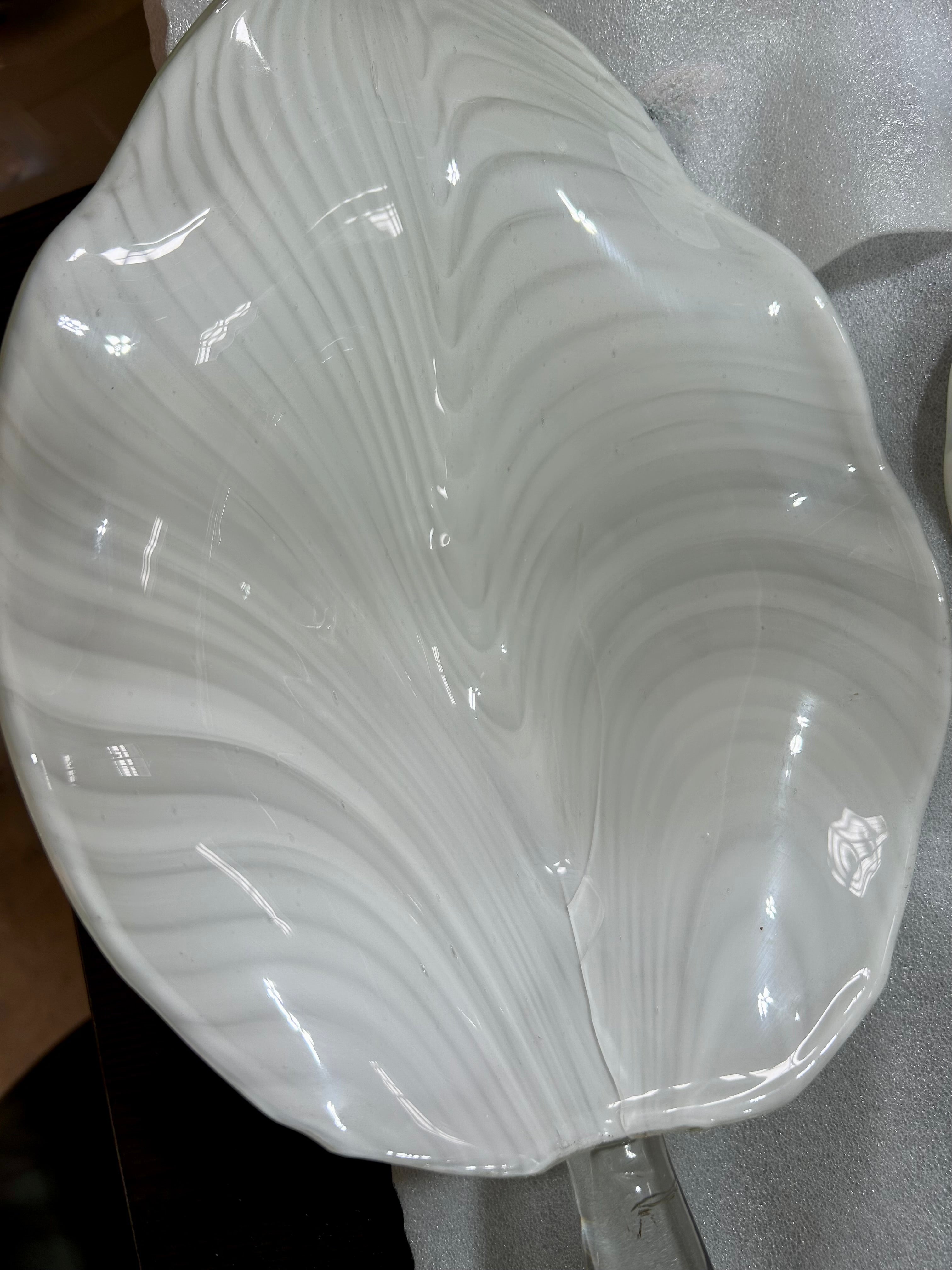 Condition: gently used, very good. One of the glass leaves has a fracture near the base, as can be seen in one of the gallery images. Electrical component functions as intended.