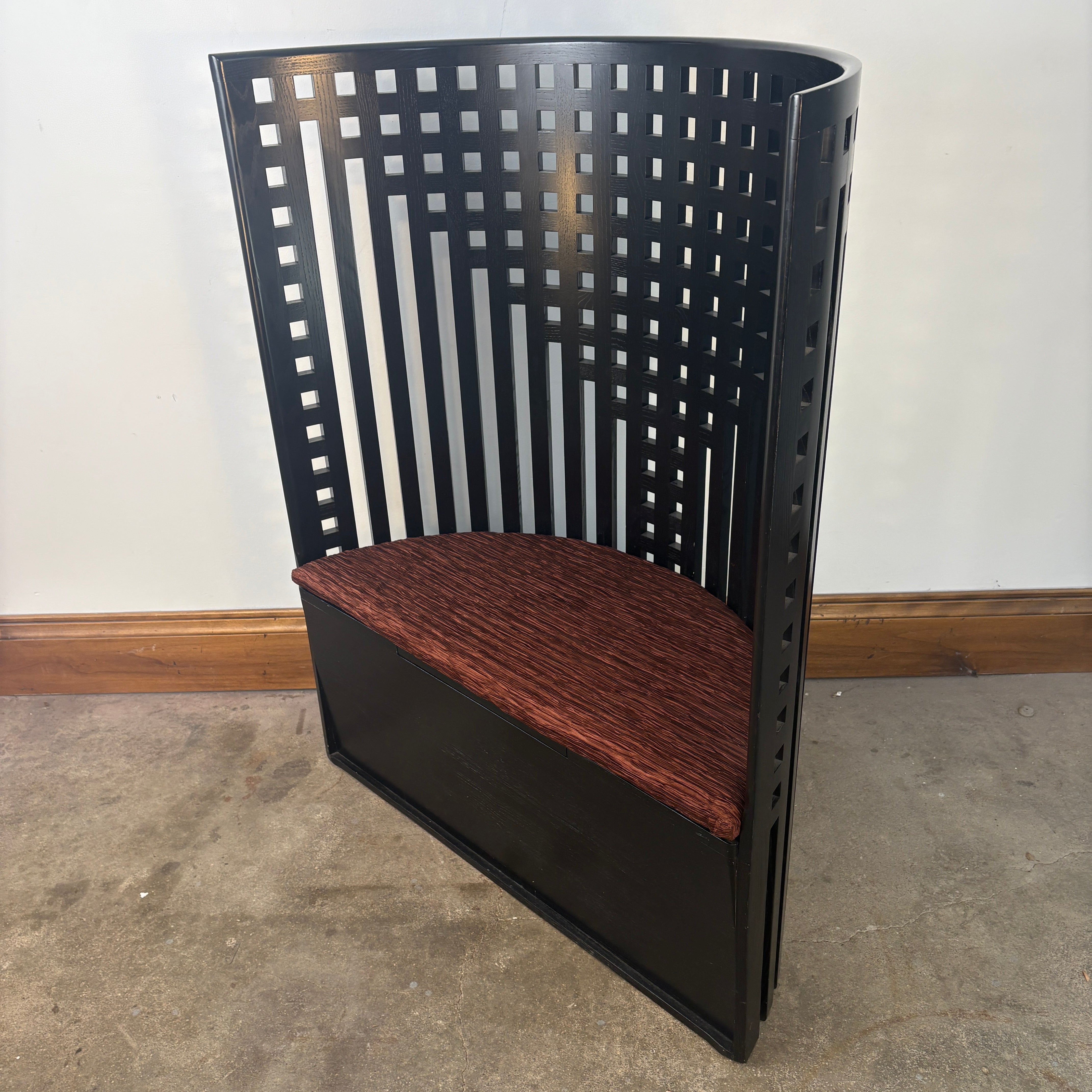 Charles Rennie Mackintosh Black Ashwood Willow High Back Demi Lune Chair.