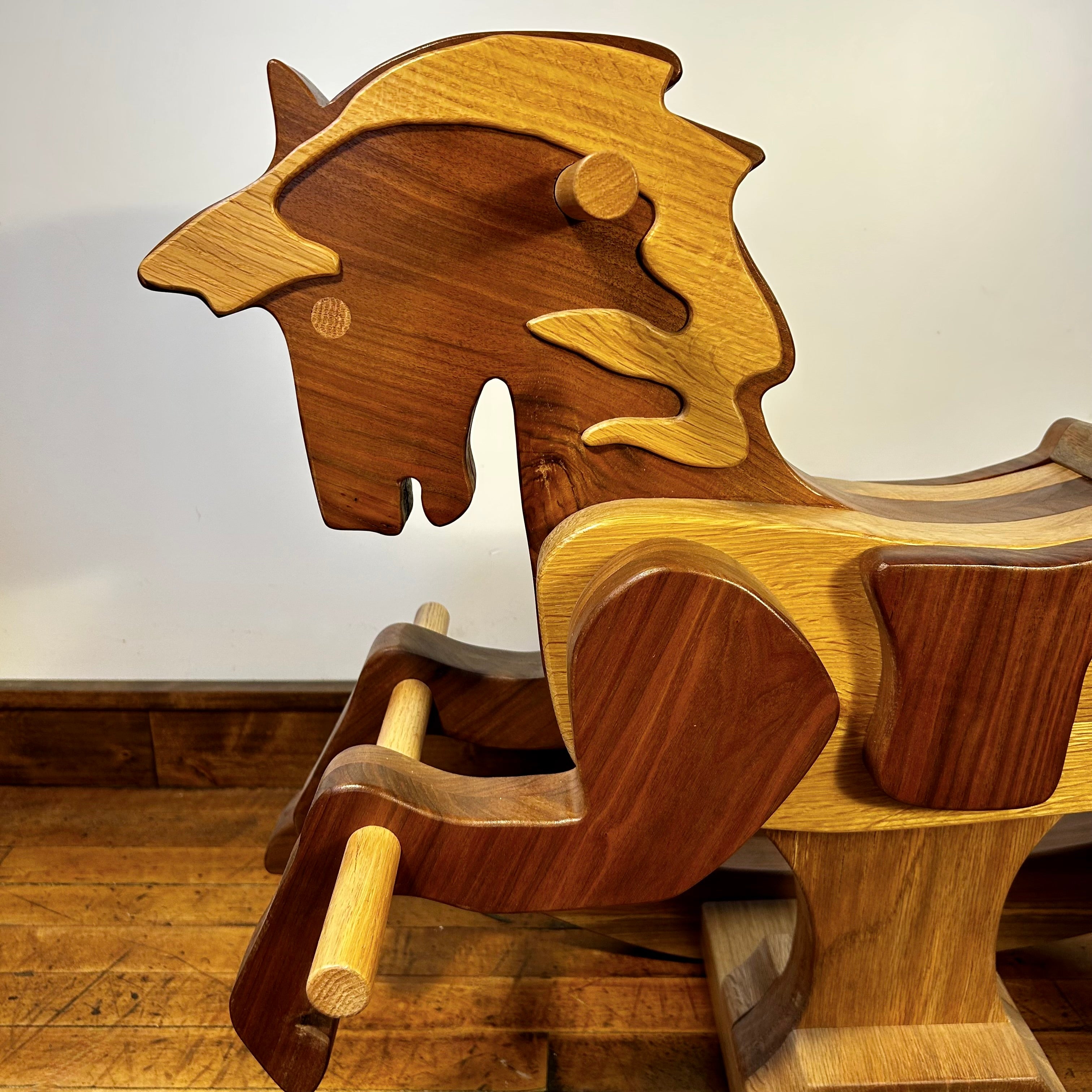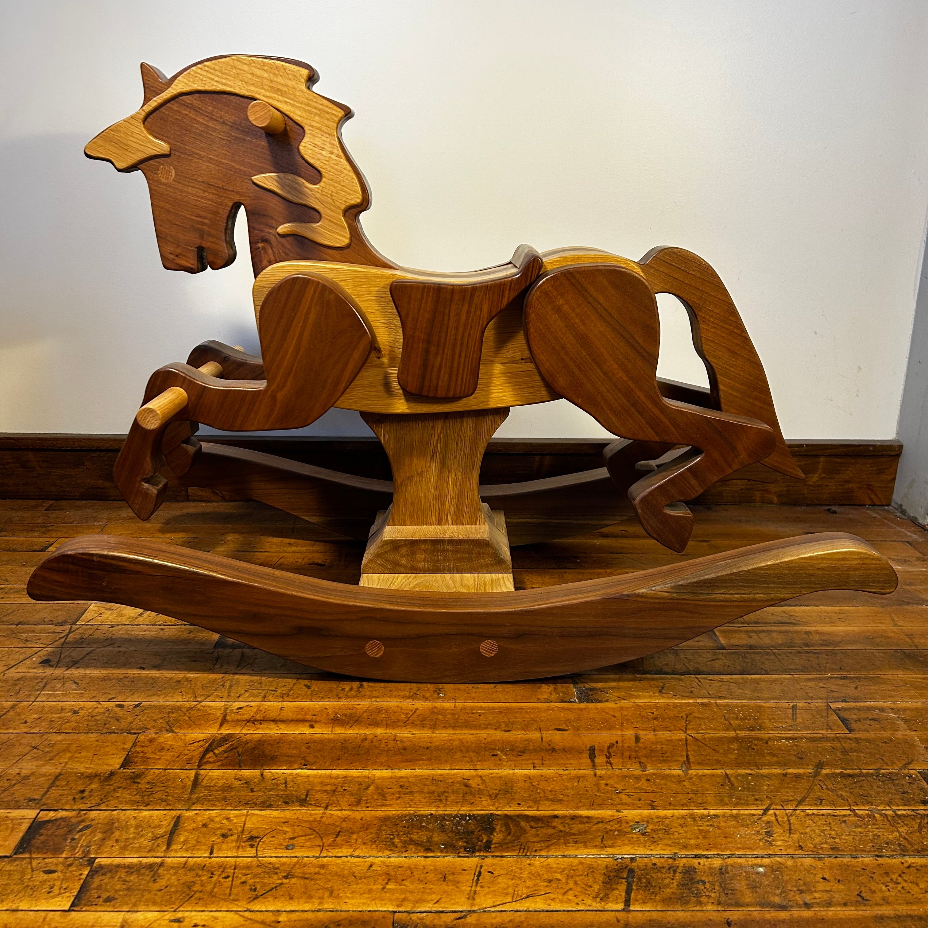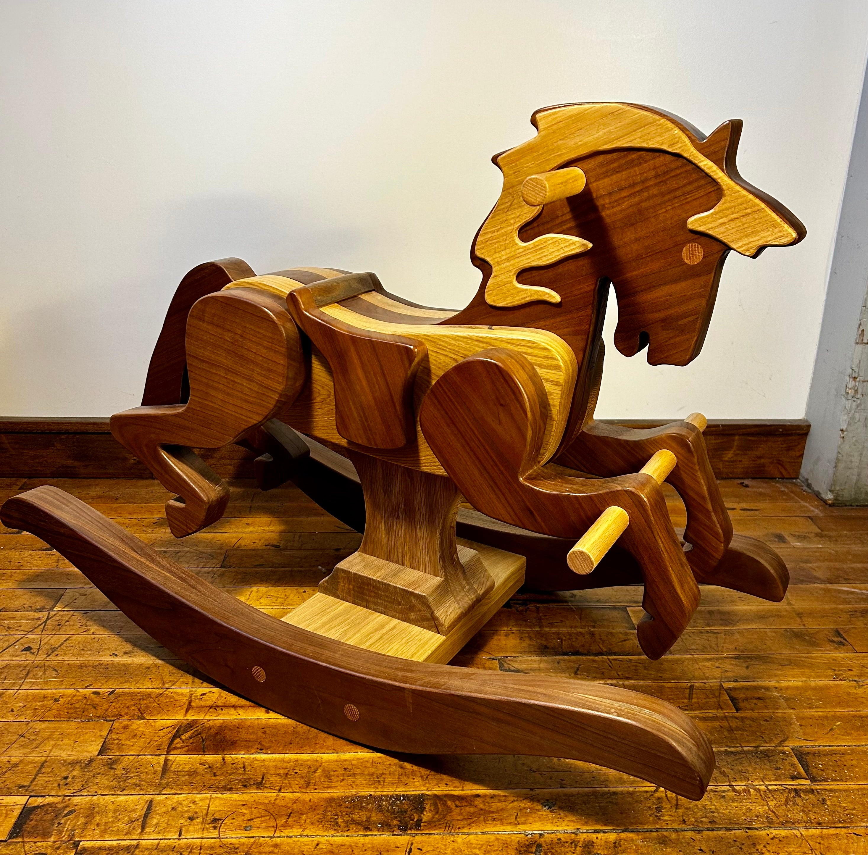 New! child's rocker or rocking horse, solid mixed wood including black walnut and oak. Handcrafted by Nebraska woodworker, Don Archer