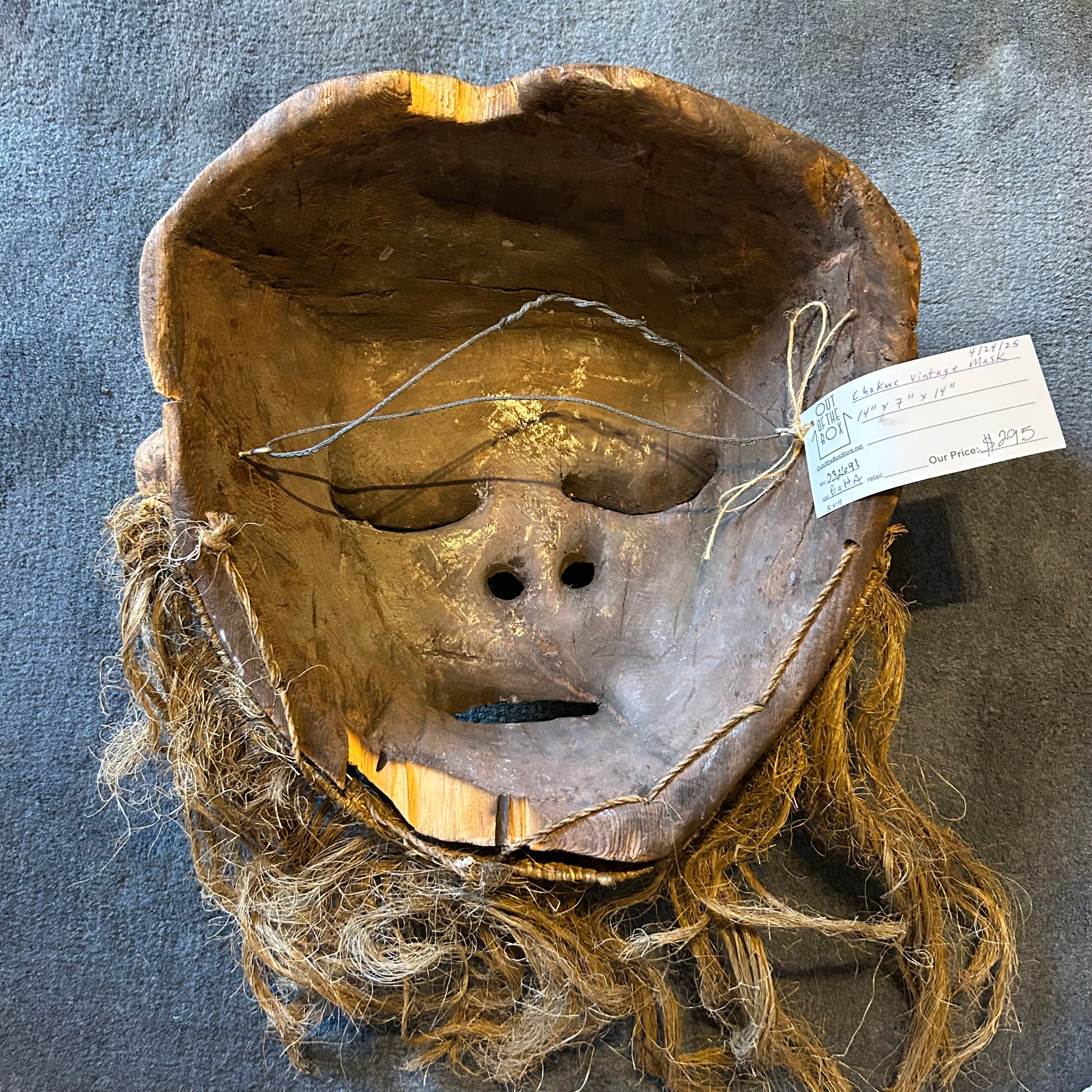 Chokwe vintage mask, hand carved in wood with "beard." Note: this came from the estate of a big art collector who had dozens of tribal masks from around the world.