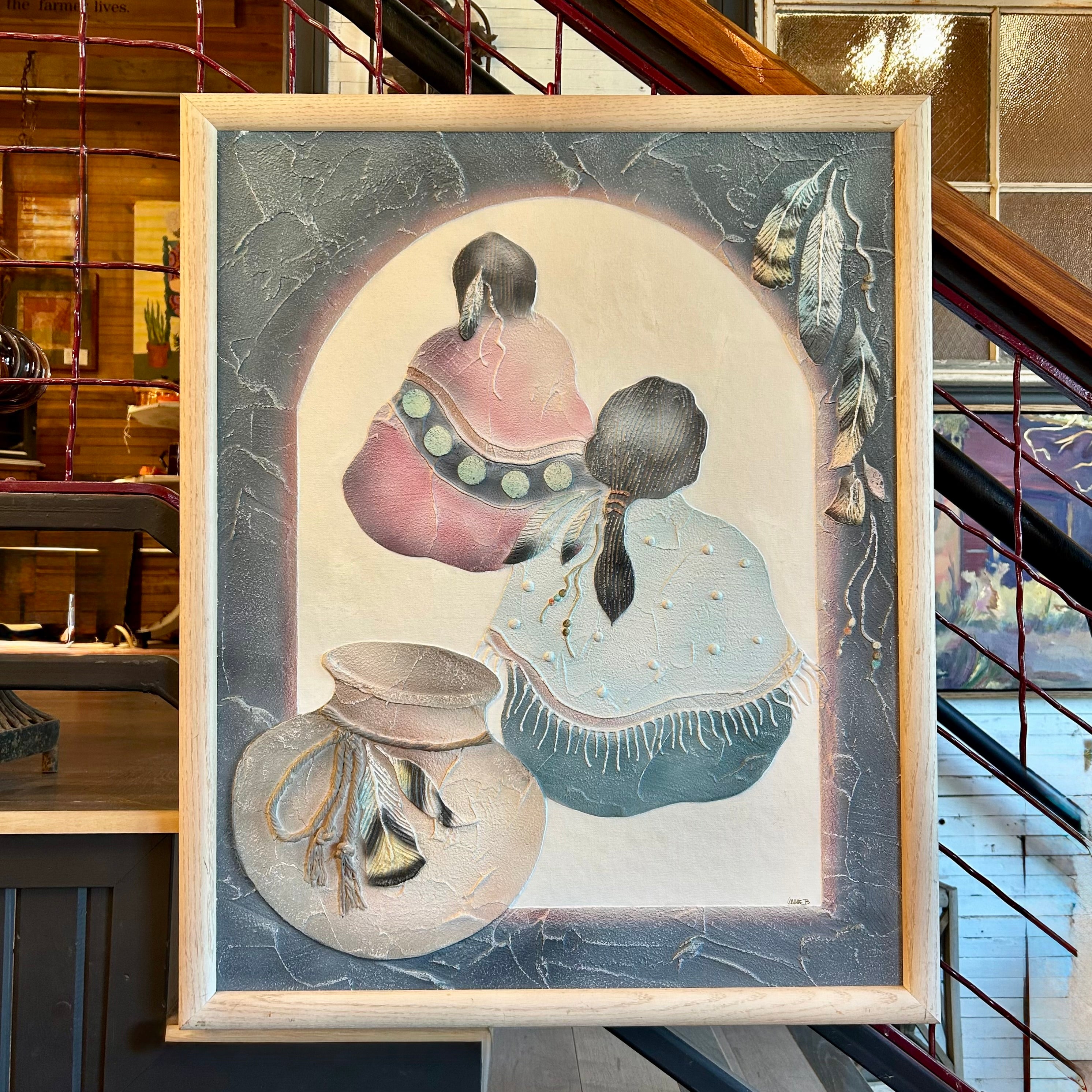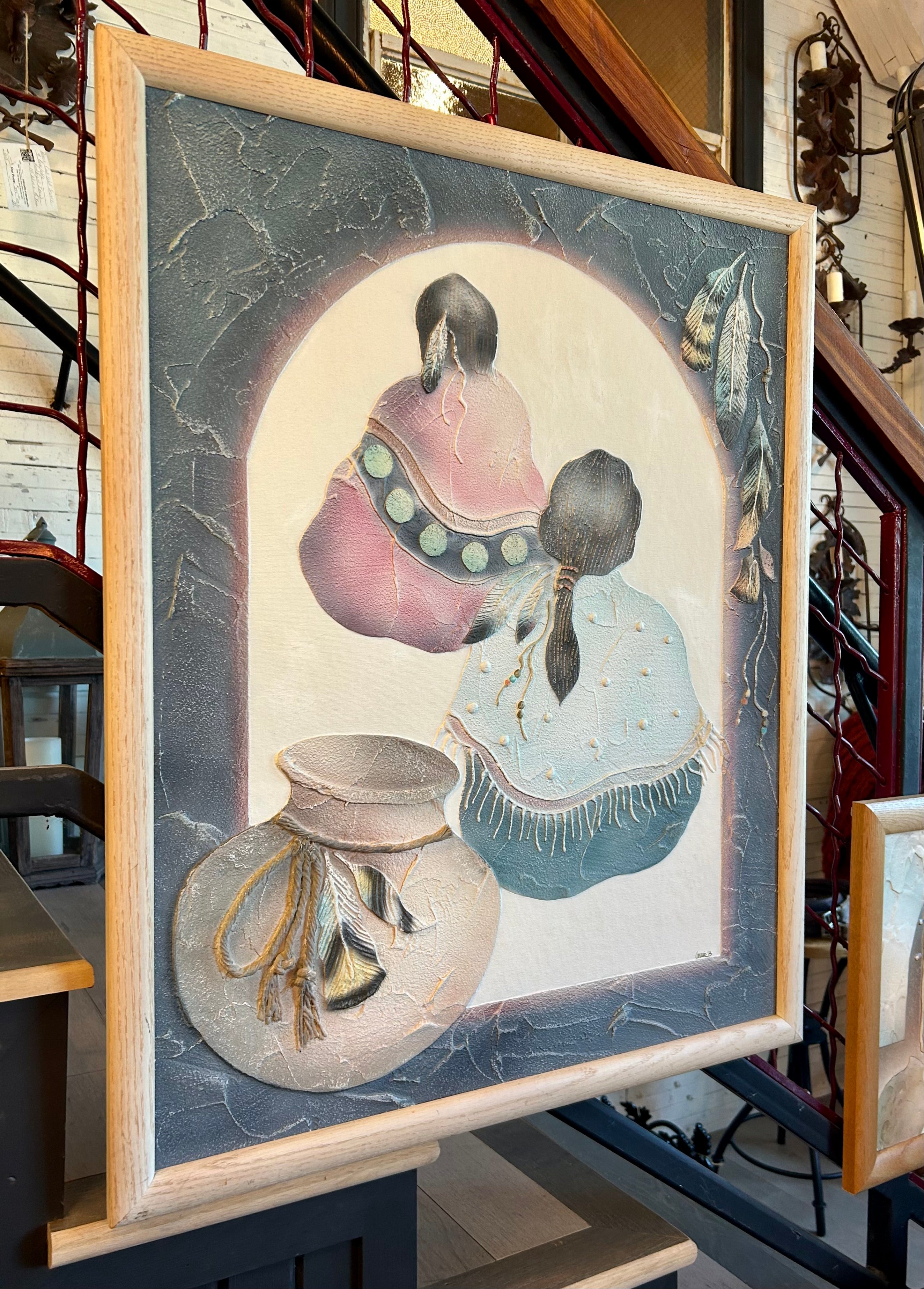 Connie Baker Wall Art with 2 Native American Women with Pottery, Stucco on Canvas. Signed by Artist.