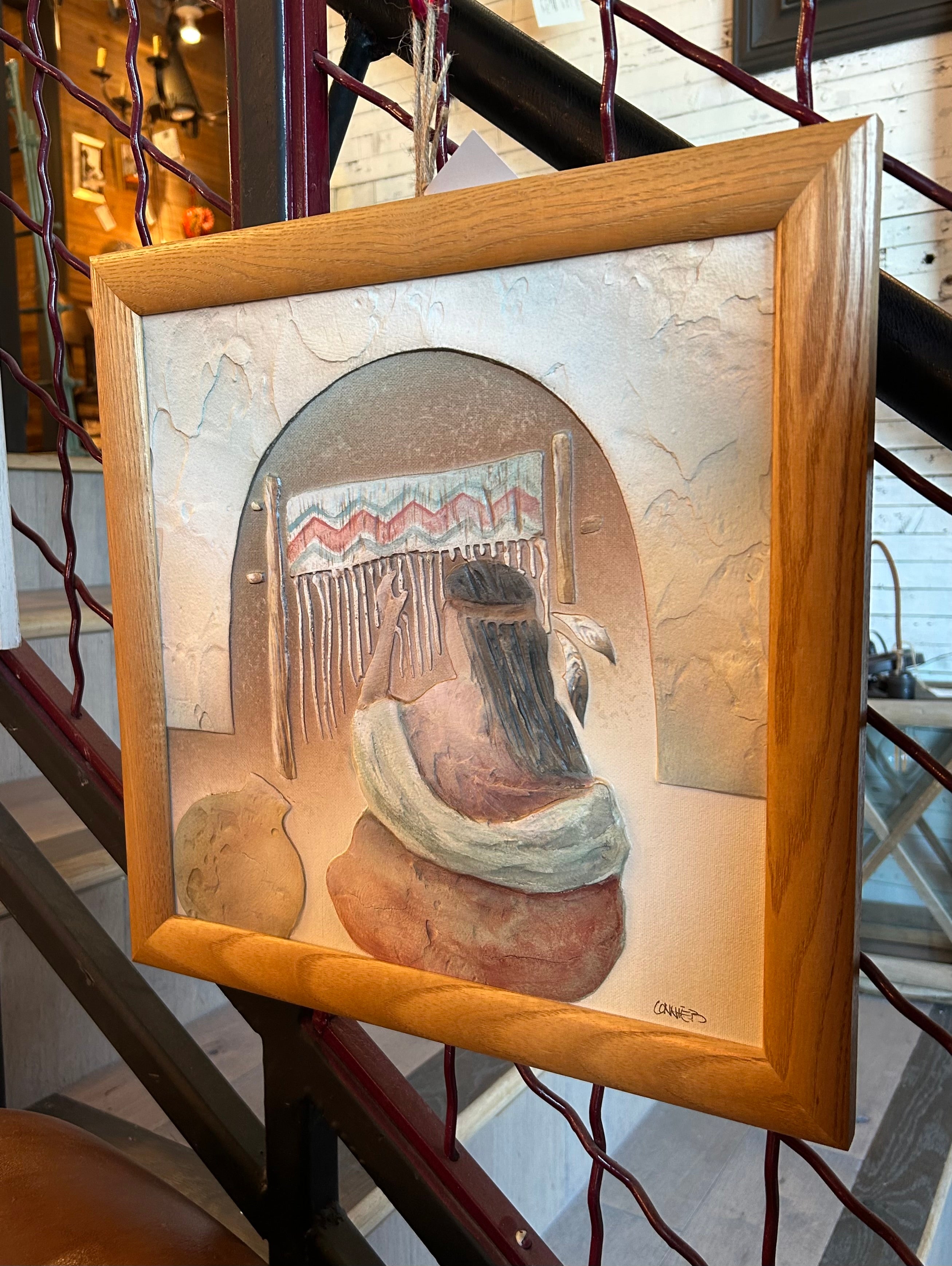 Connie Baker, Native American Weaving, Stucco on Canvas, Signed by Artist.