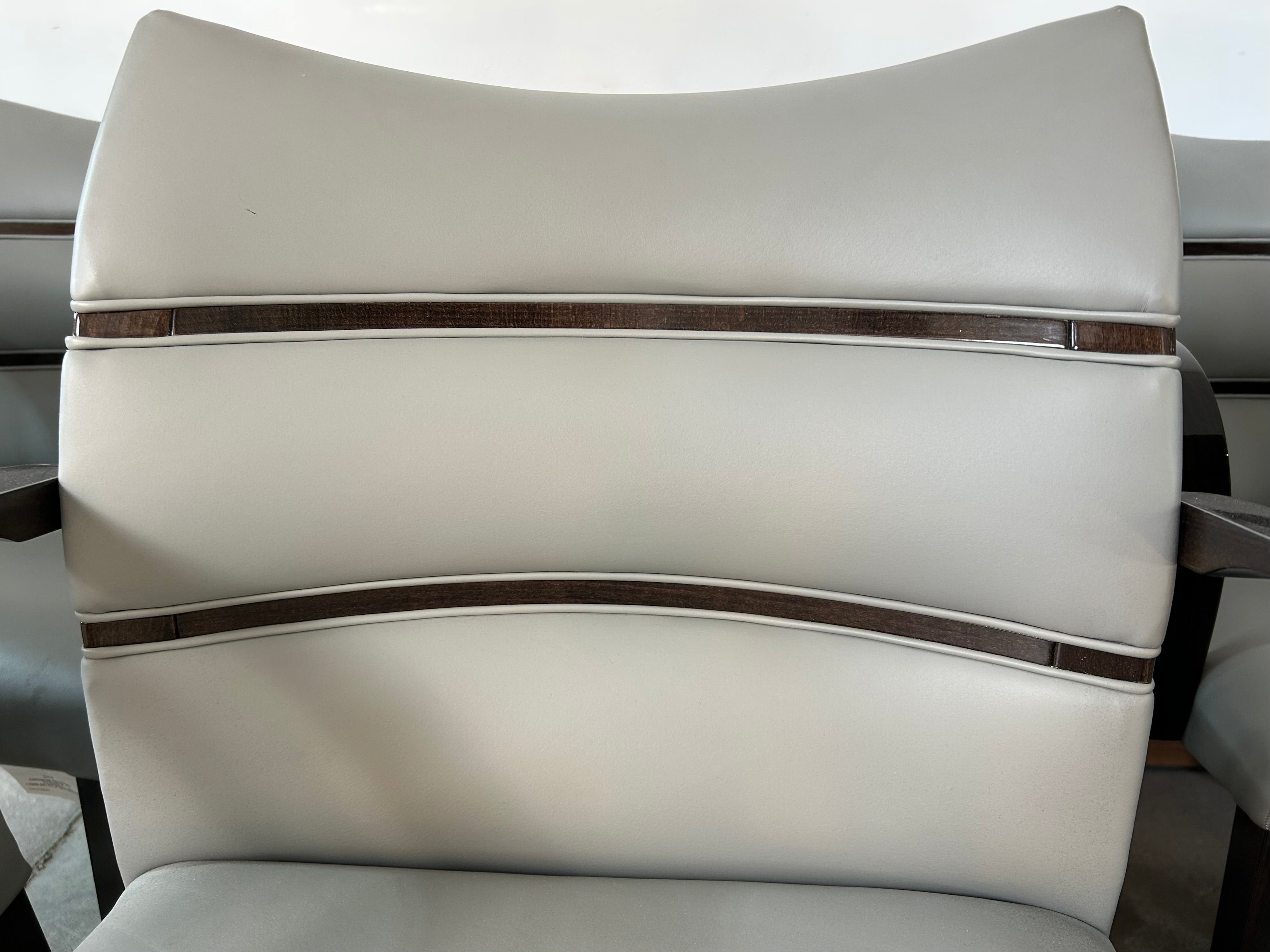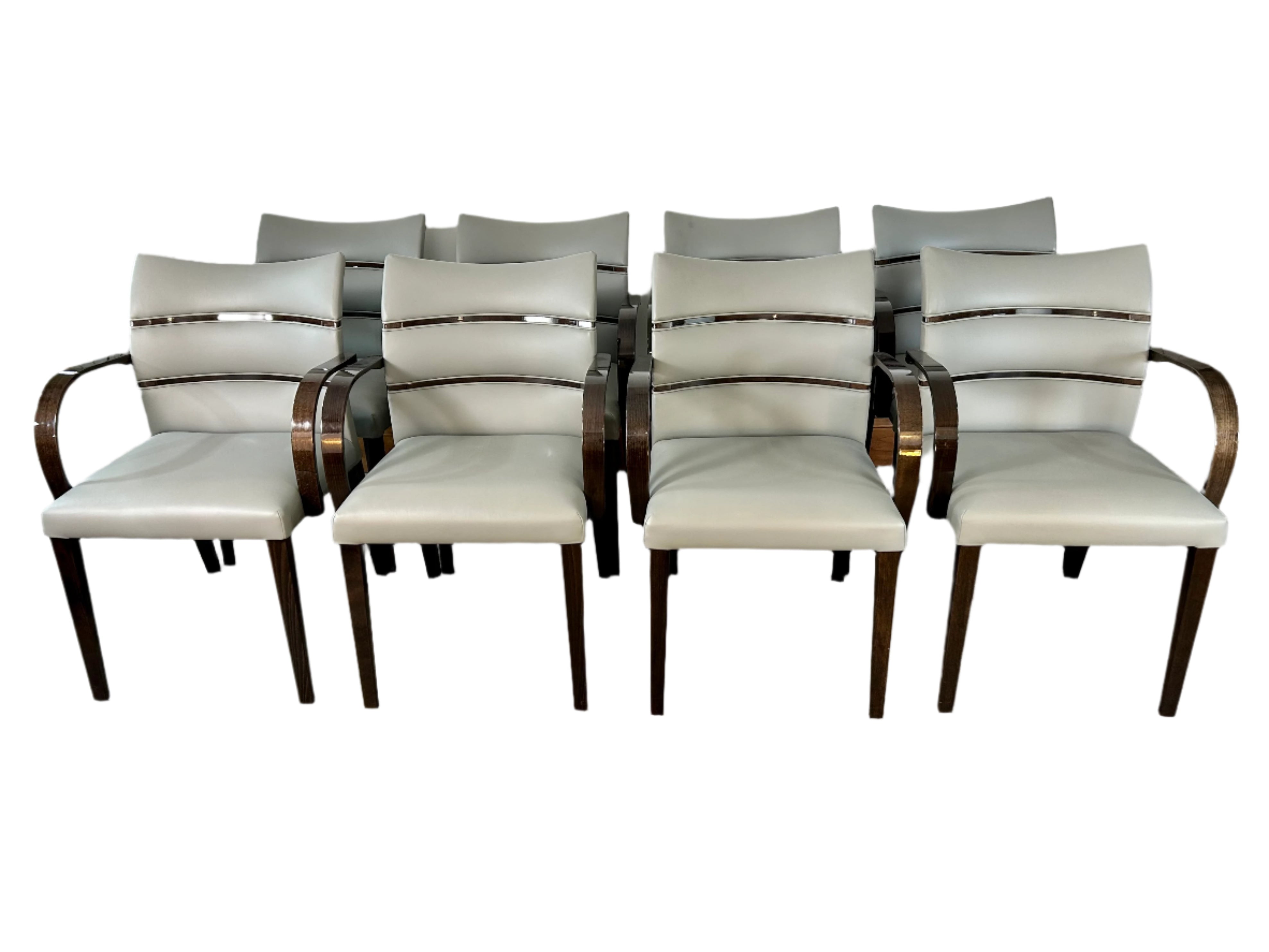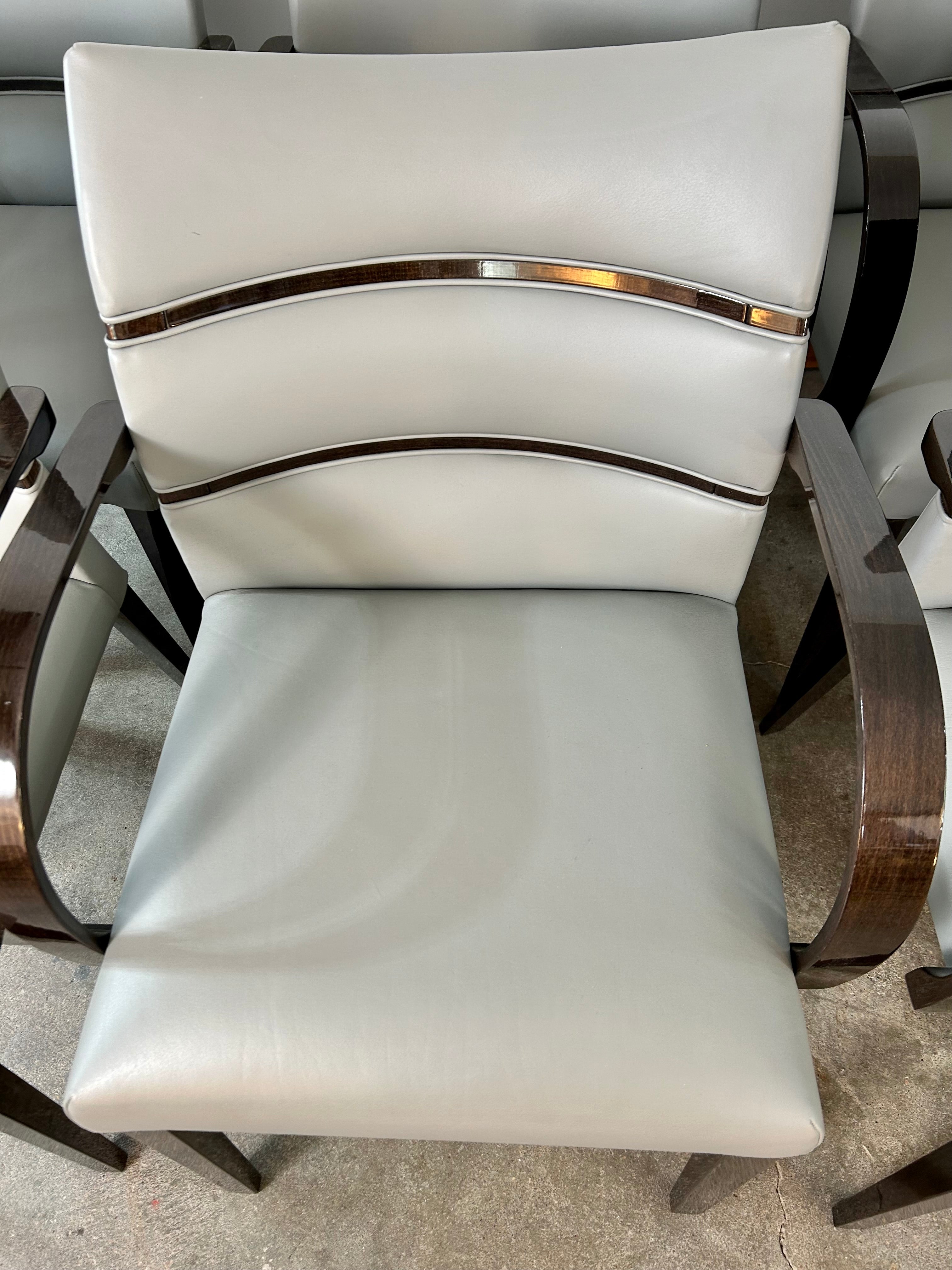 Constantini Pietro Italian grey leather with high lacquer finish detail dining chairs. Set of eight, sold as a set.
