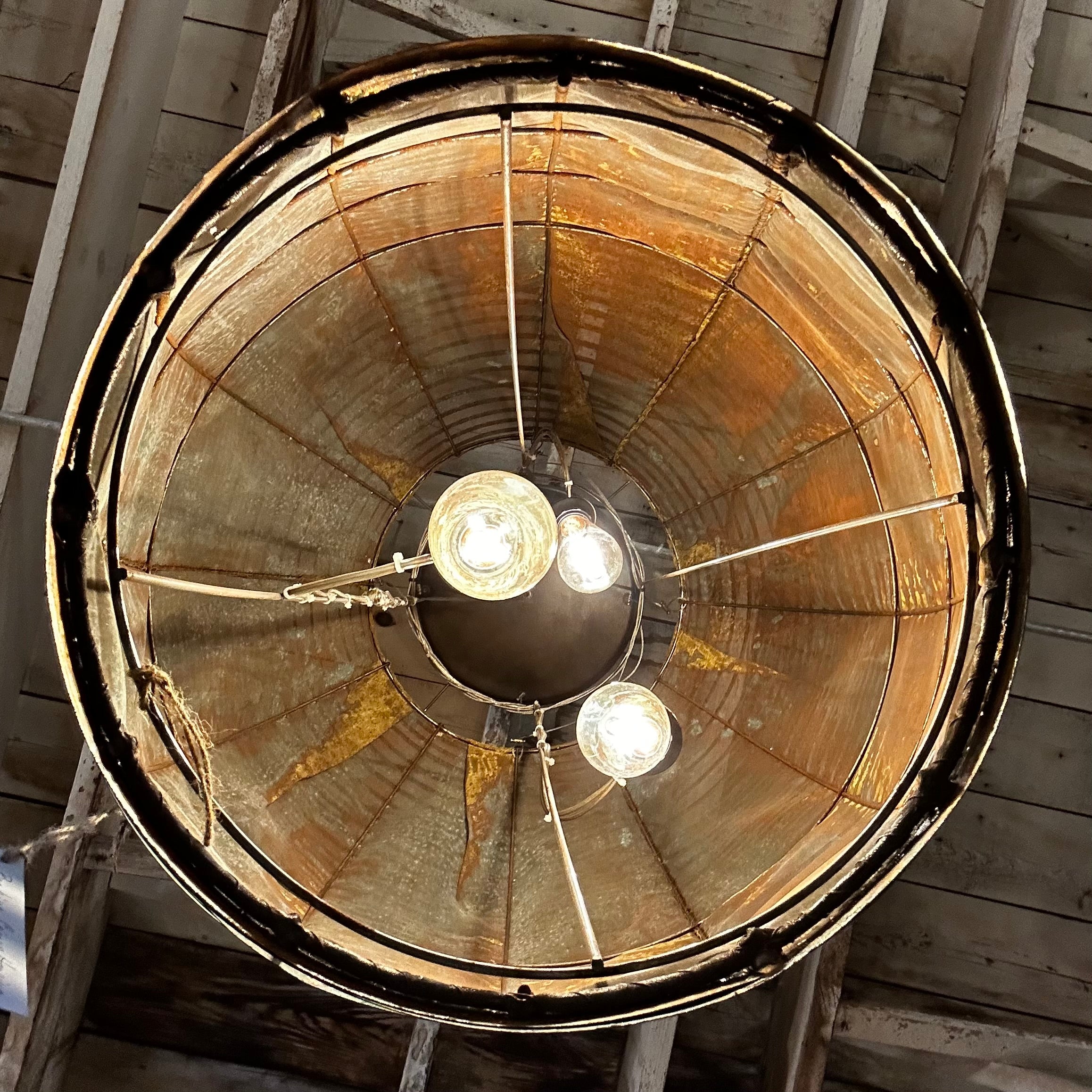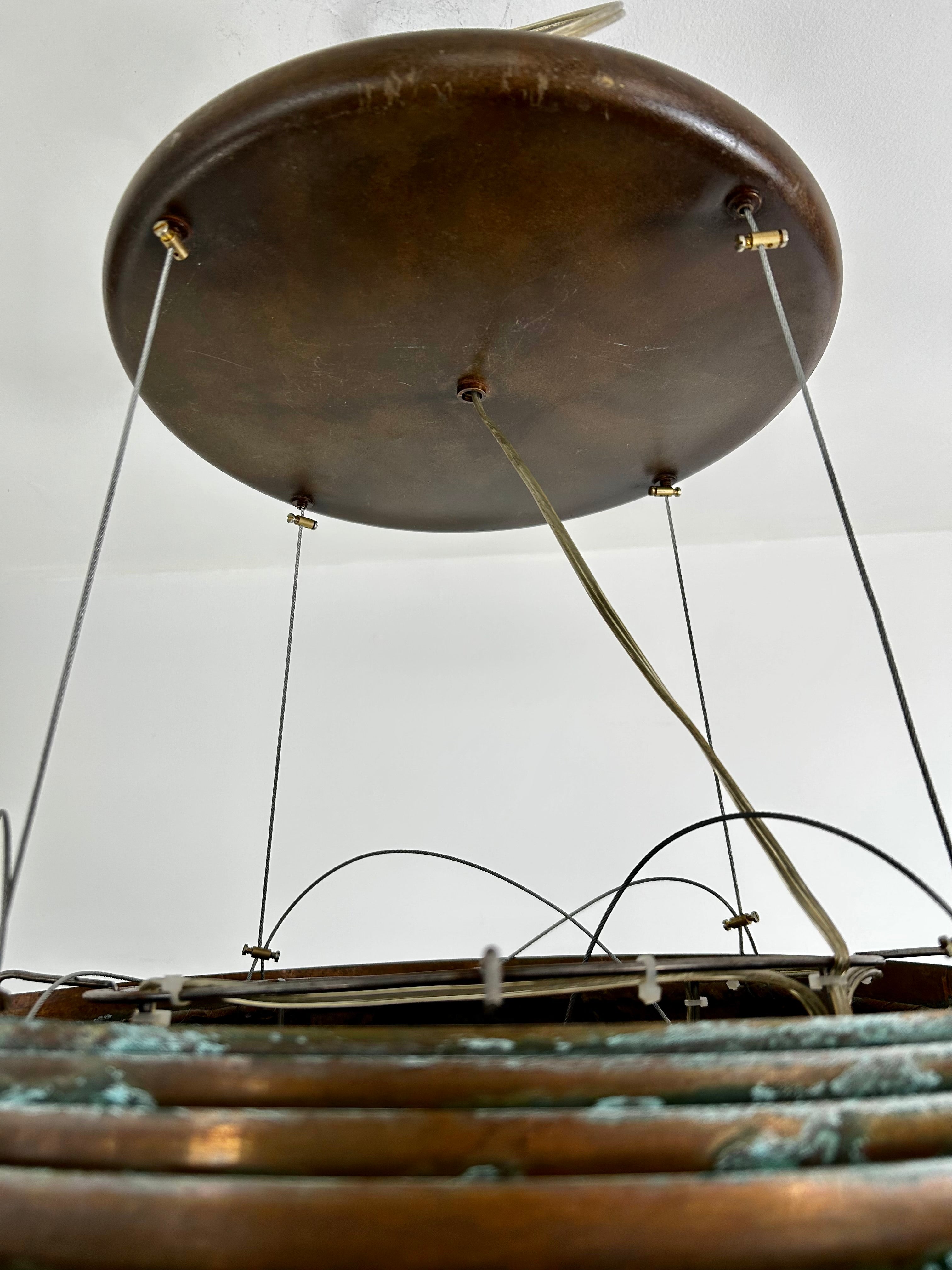 Beehive Copper hanging light, extra large, contemporary in size, sculptural shape, takes 3 standard light sockets, adjustable height.