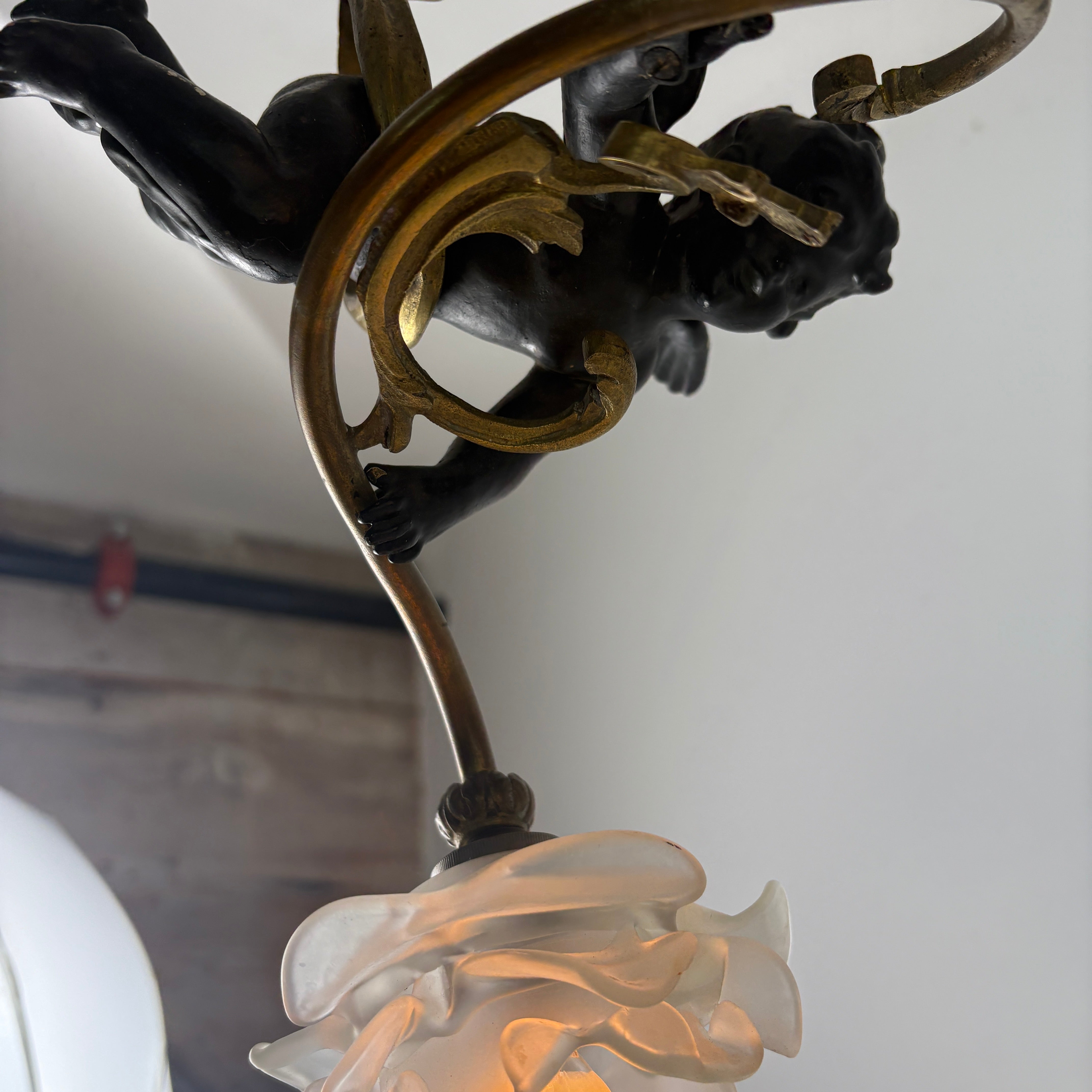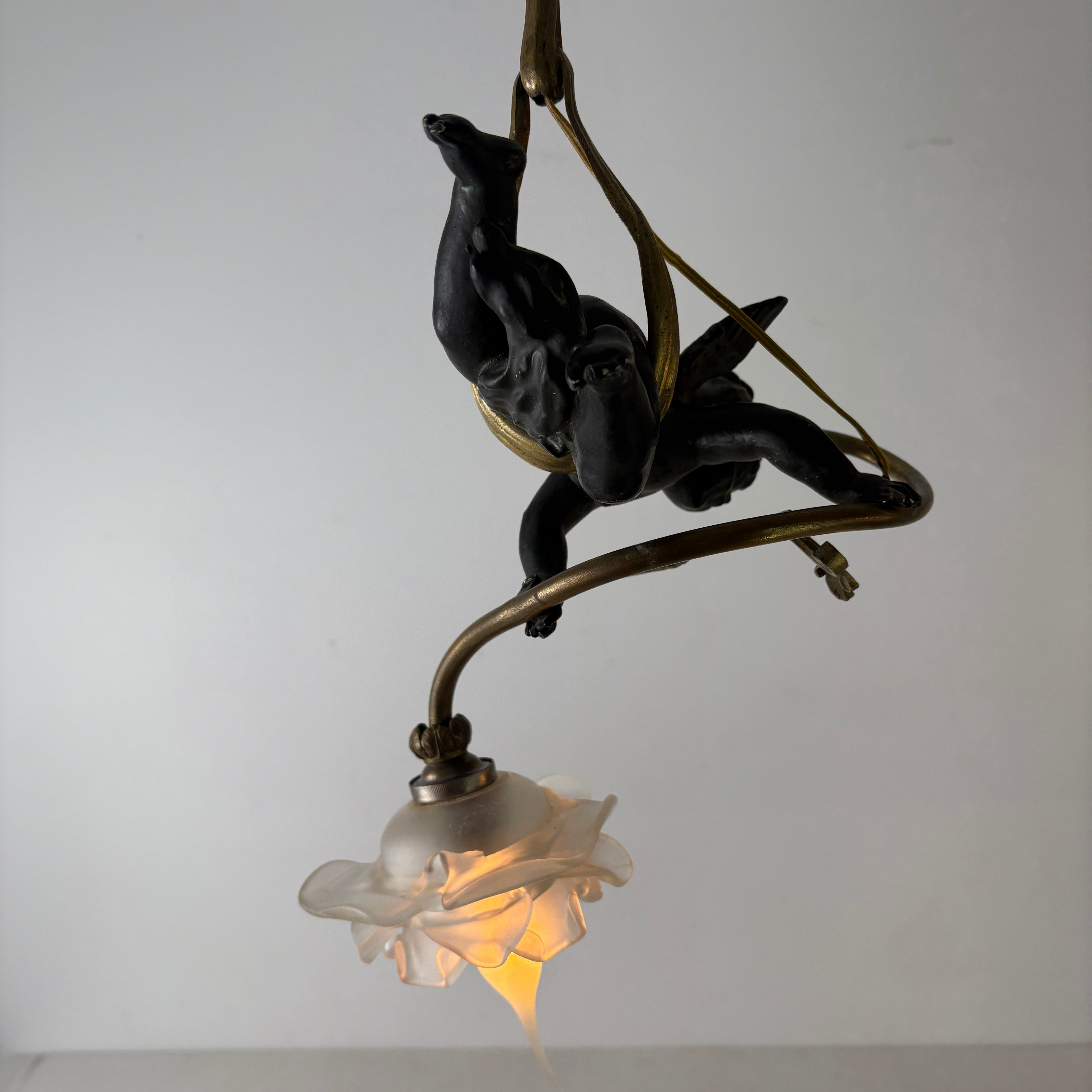 Cupid and Rosette Pendant Light Antique Gold and Bronze Like Finish.