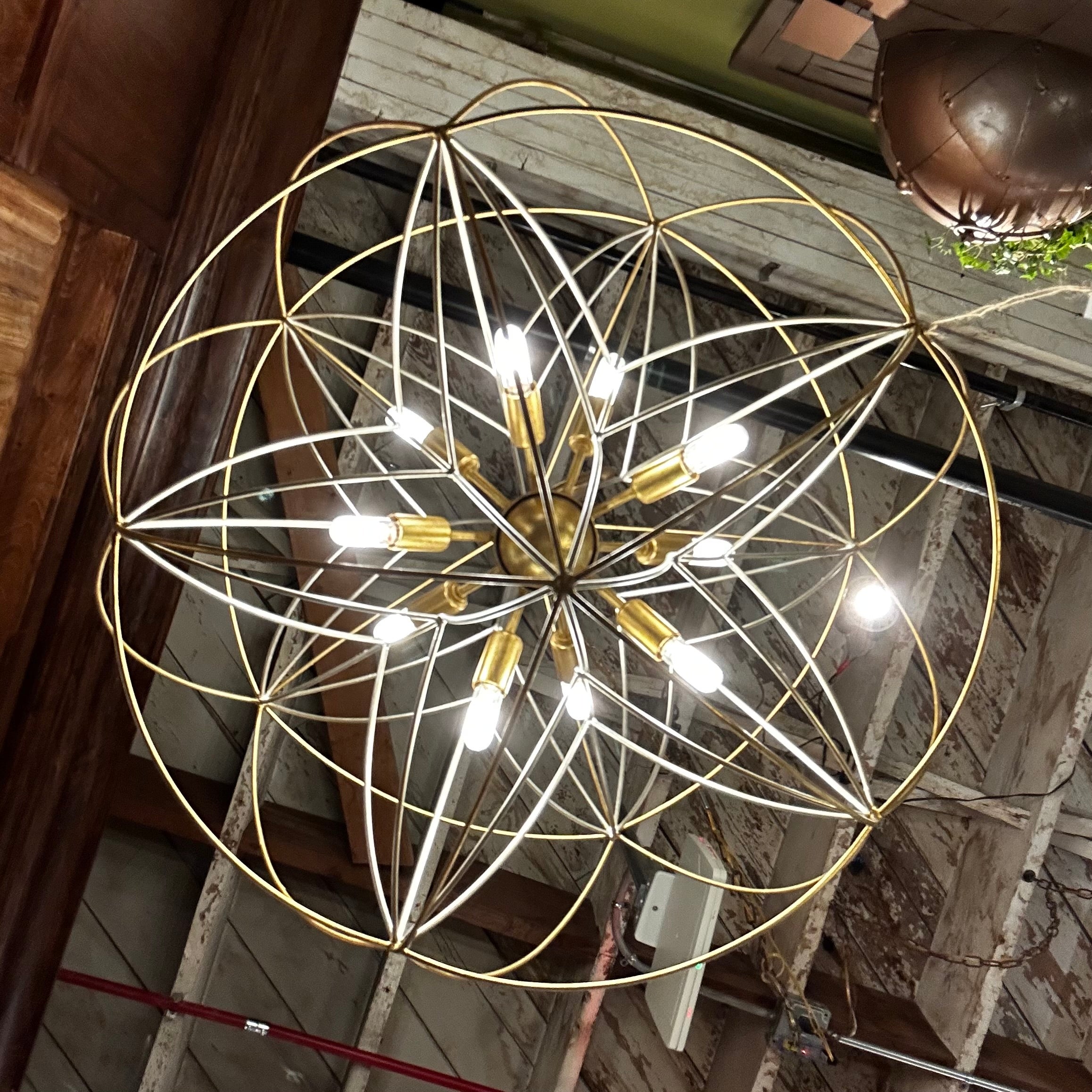 Experience the elegance of the Currey & Company Zenda 10 Light Chandelier, featuring a stunning combination of gold and silver elements. This exquisite contemporary piece is sure to add a touch of luxury to any space.