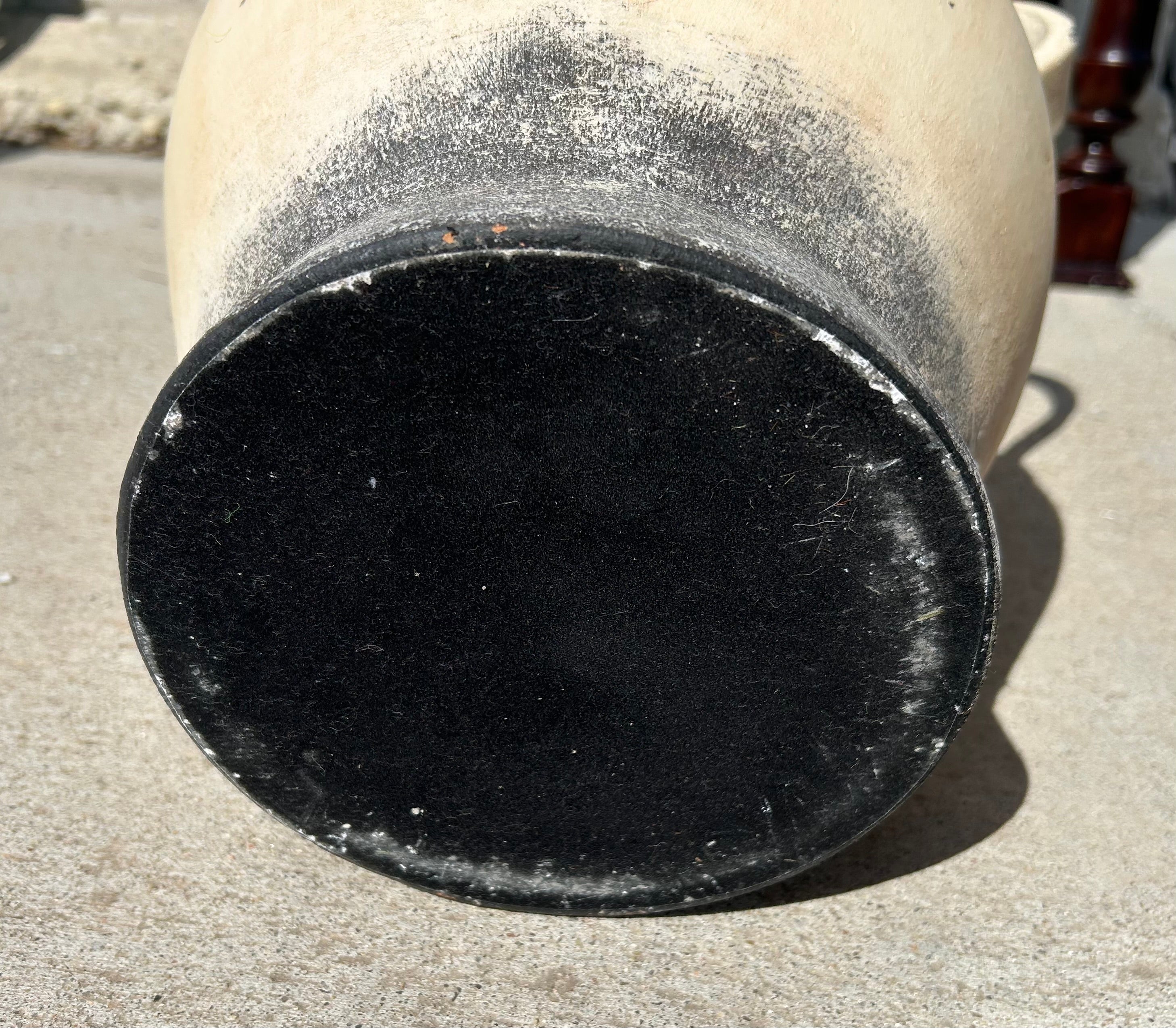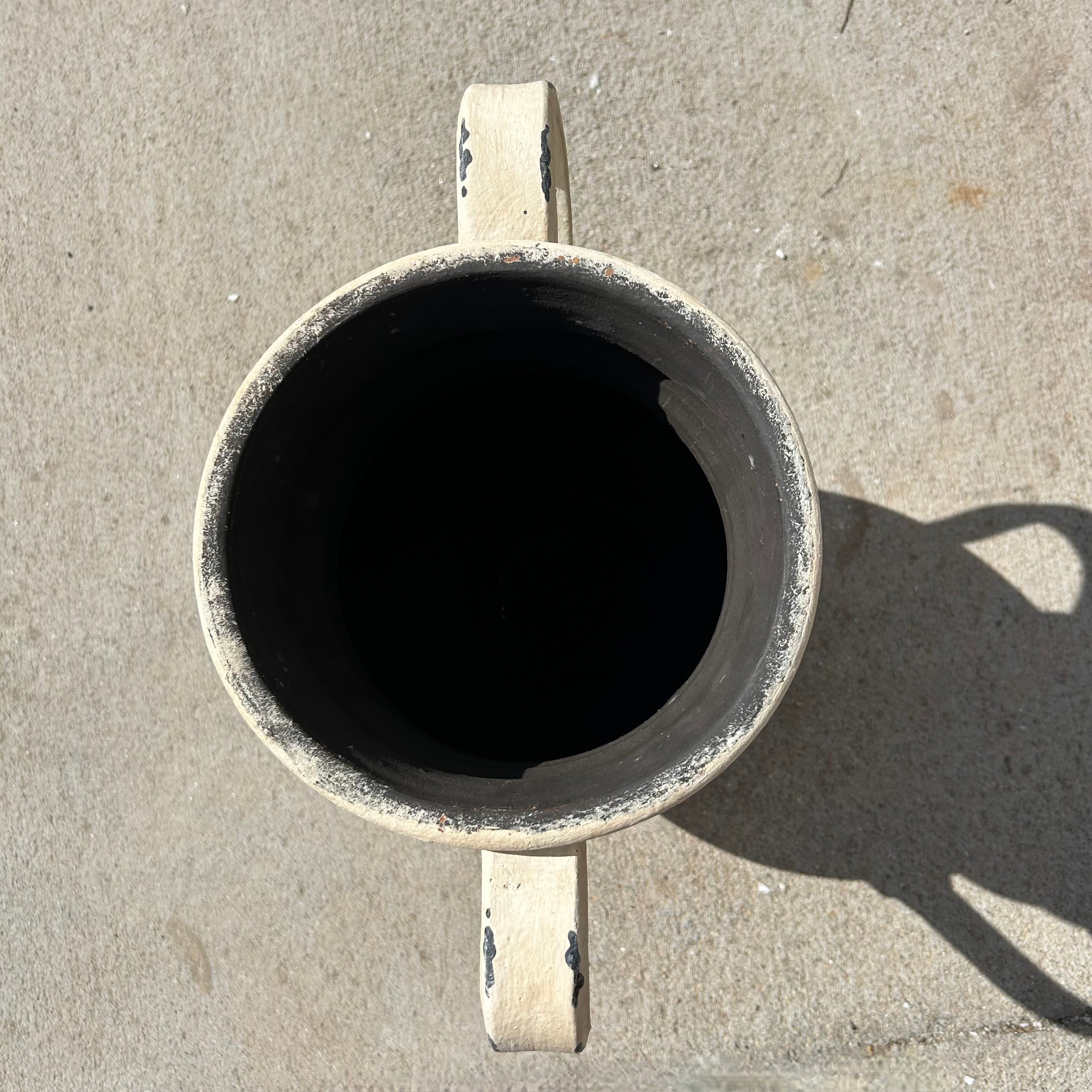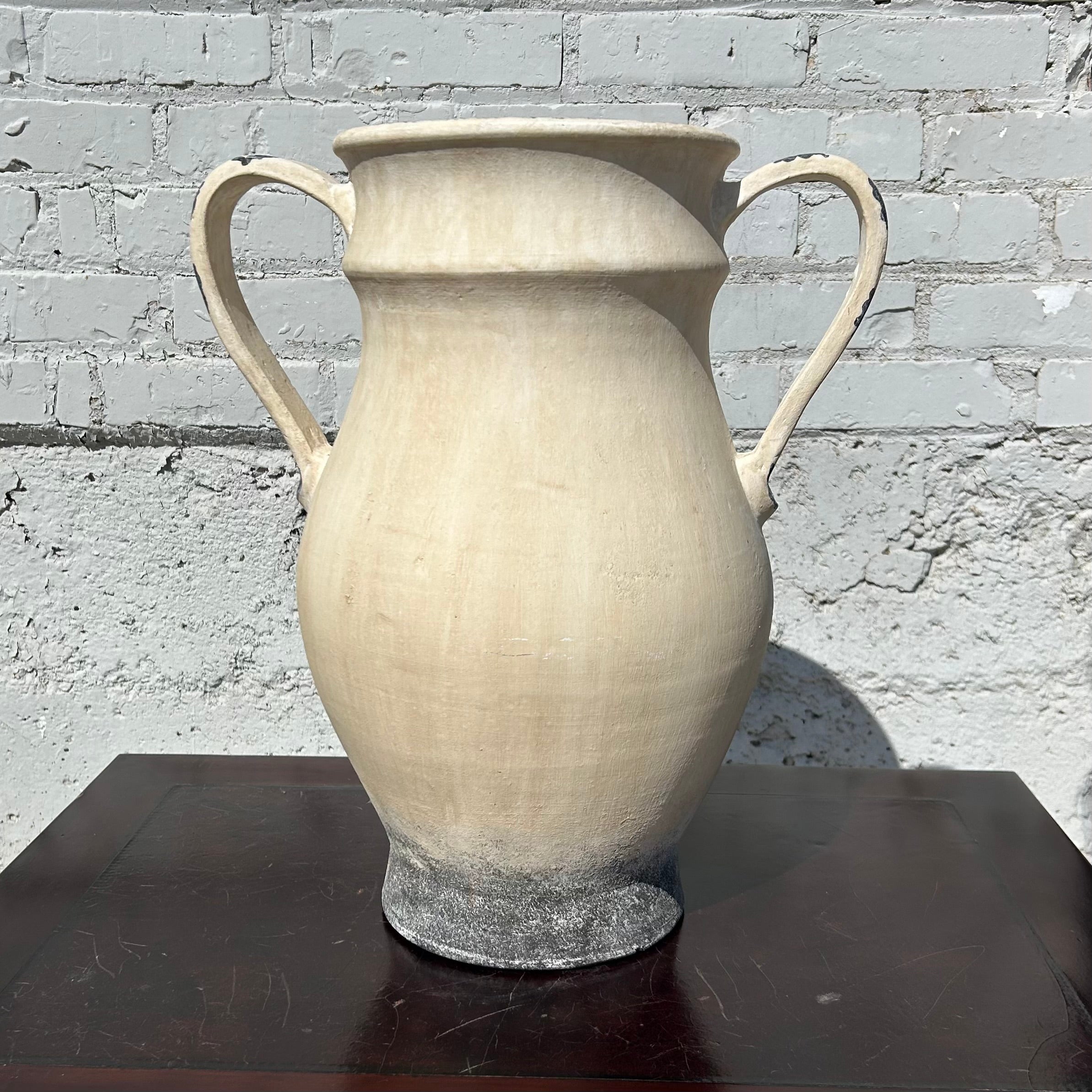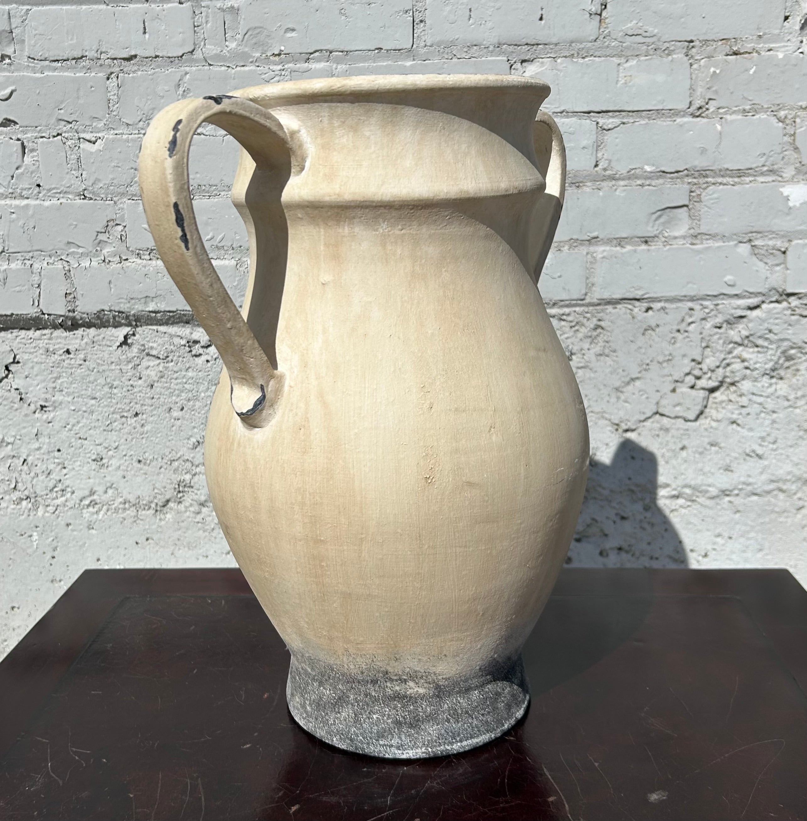 Decorative jug, with "Bourgogne", written on it, large with two handles, cream and gray color.