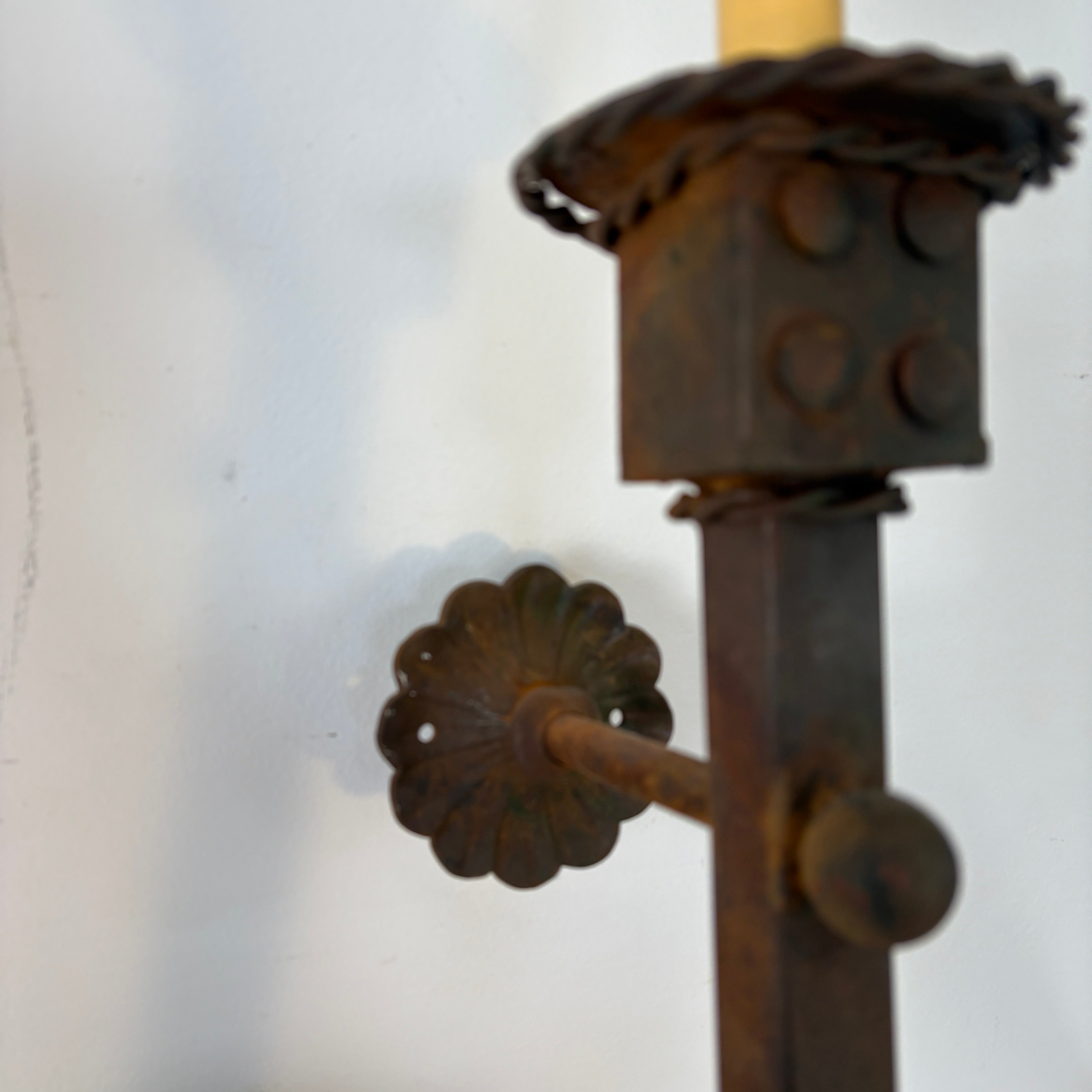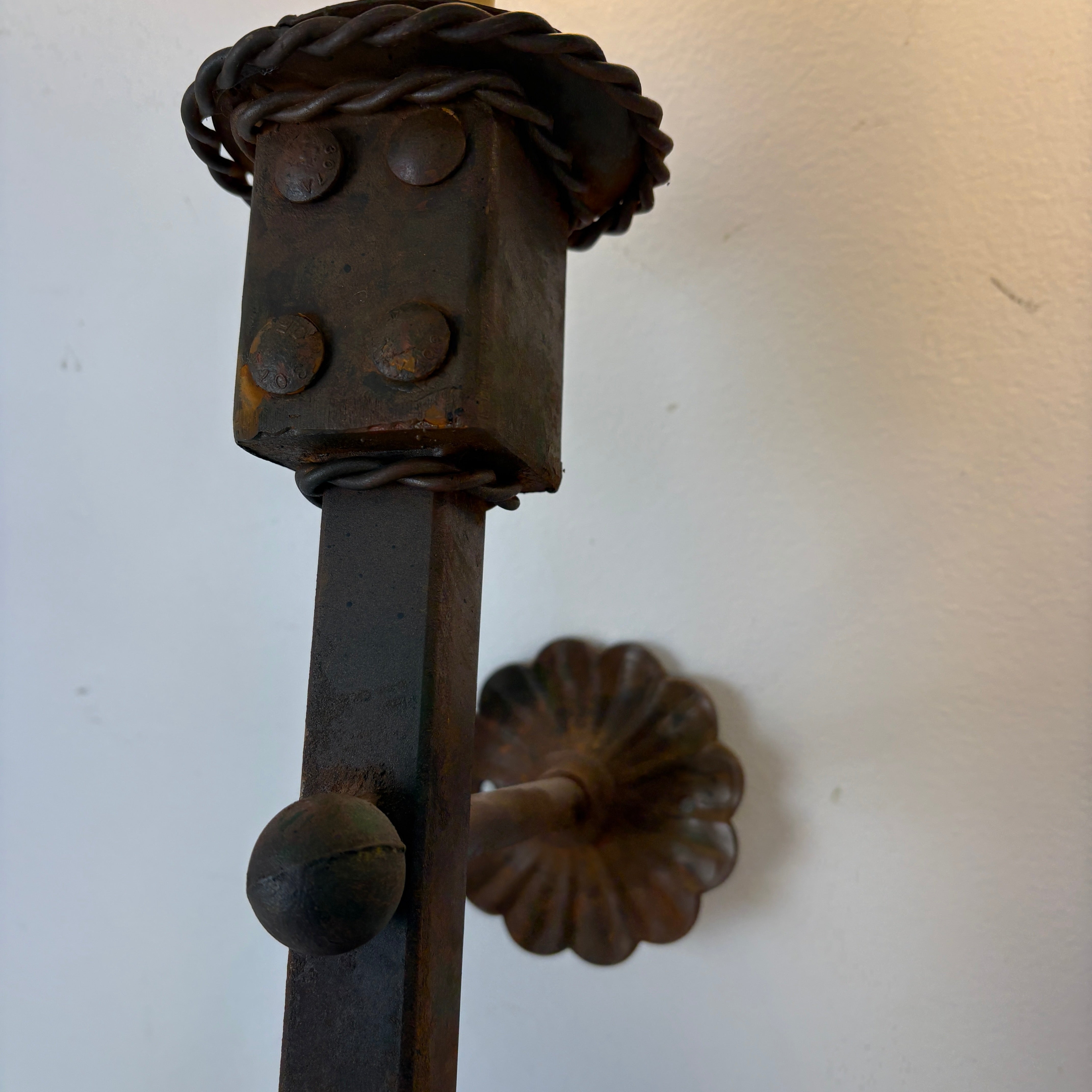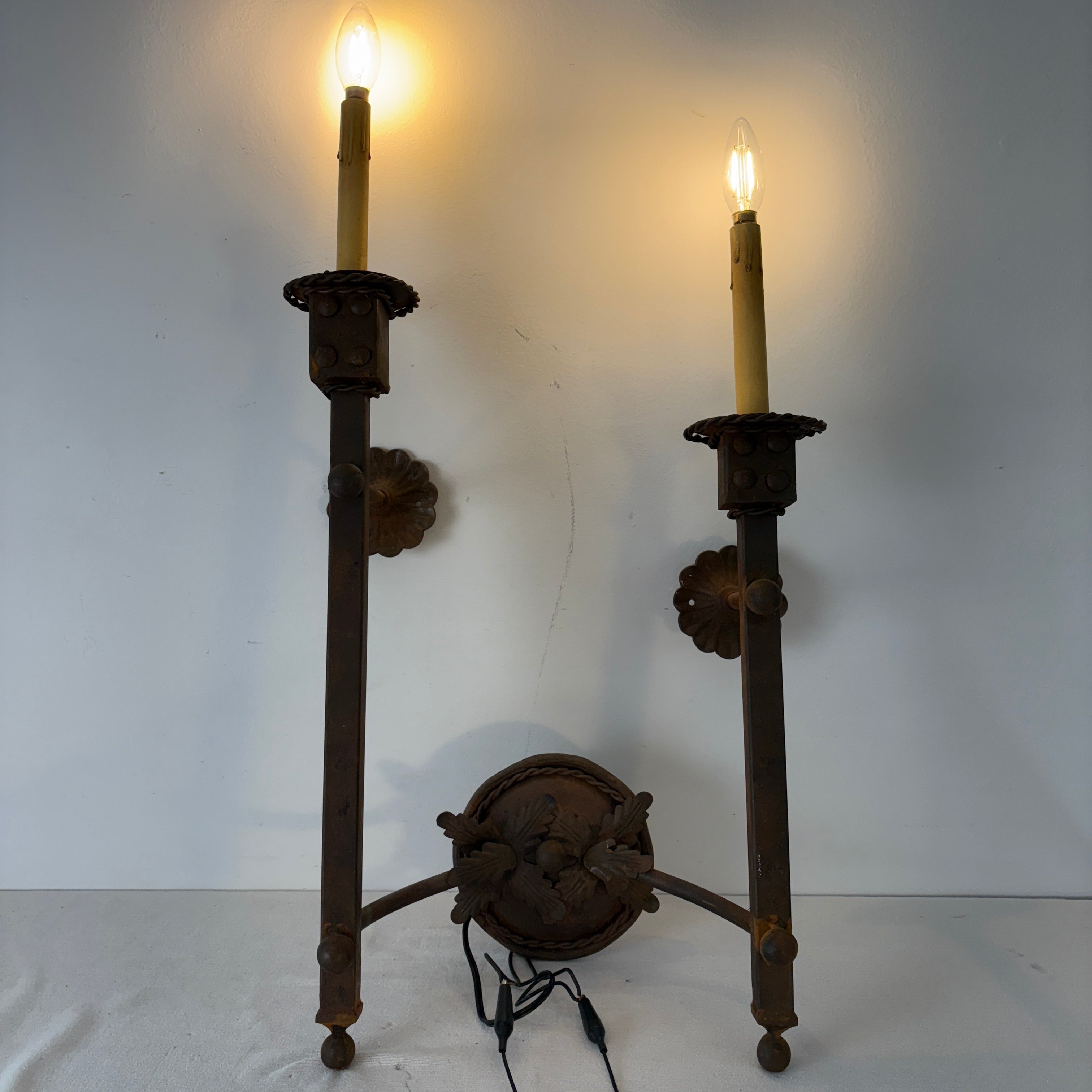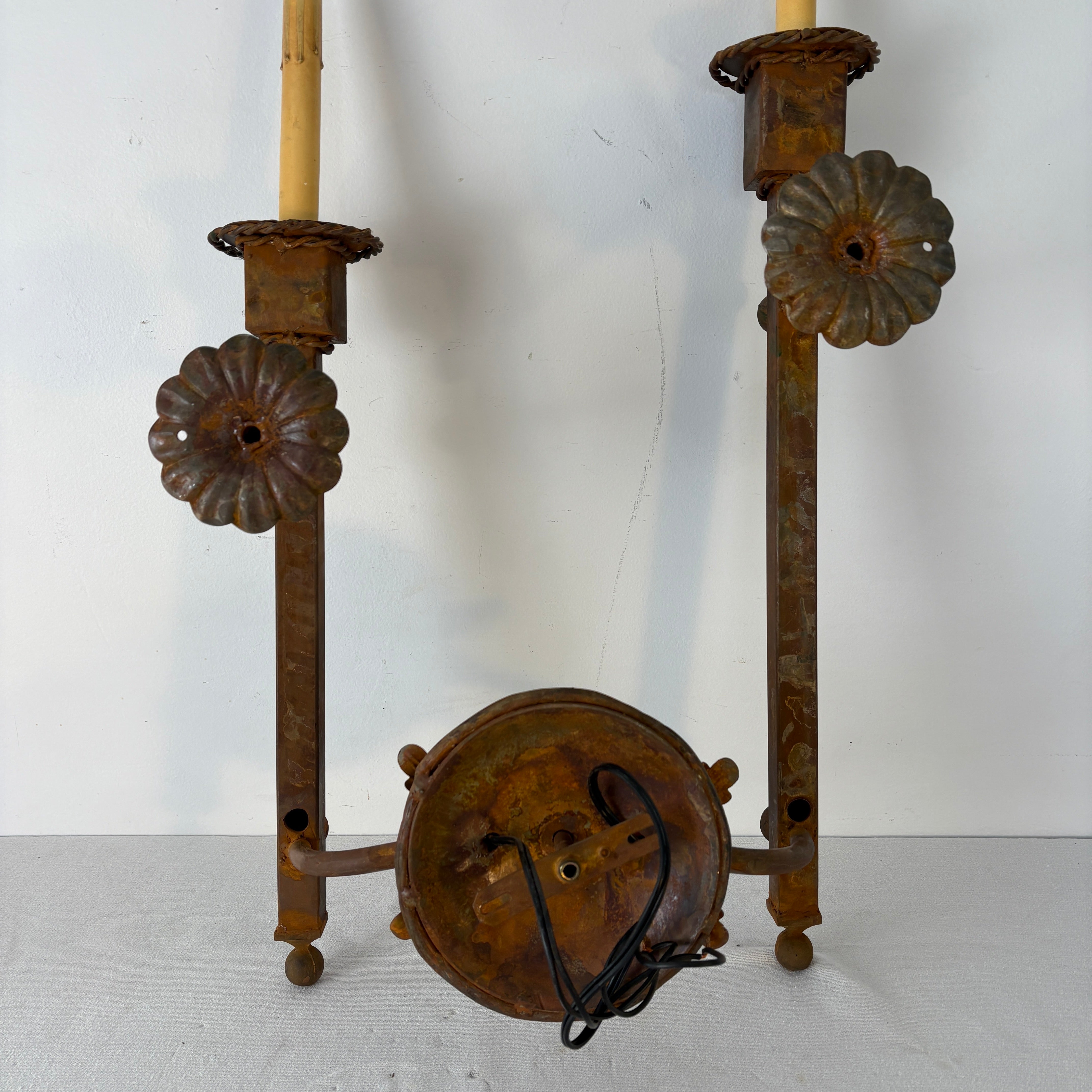 Double Arm Wall Sconce, Acanthas Leaf Motif, Intended Rust Patina, Material: Steel