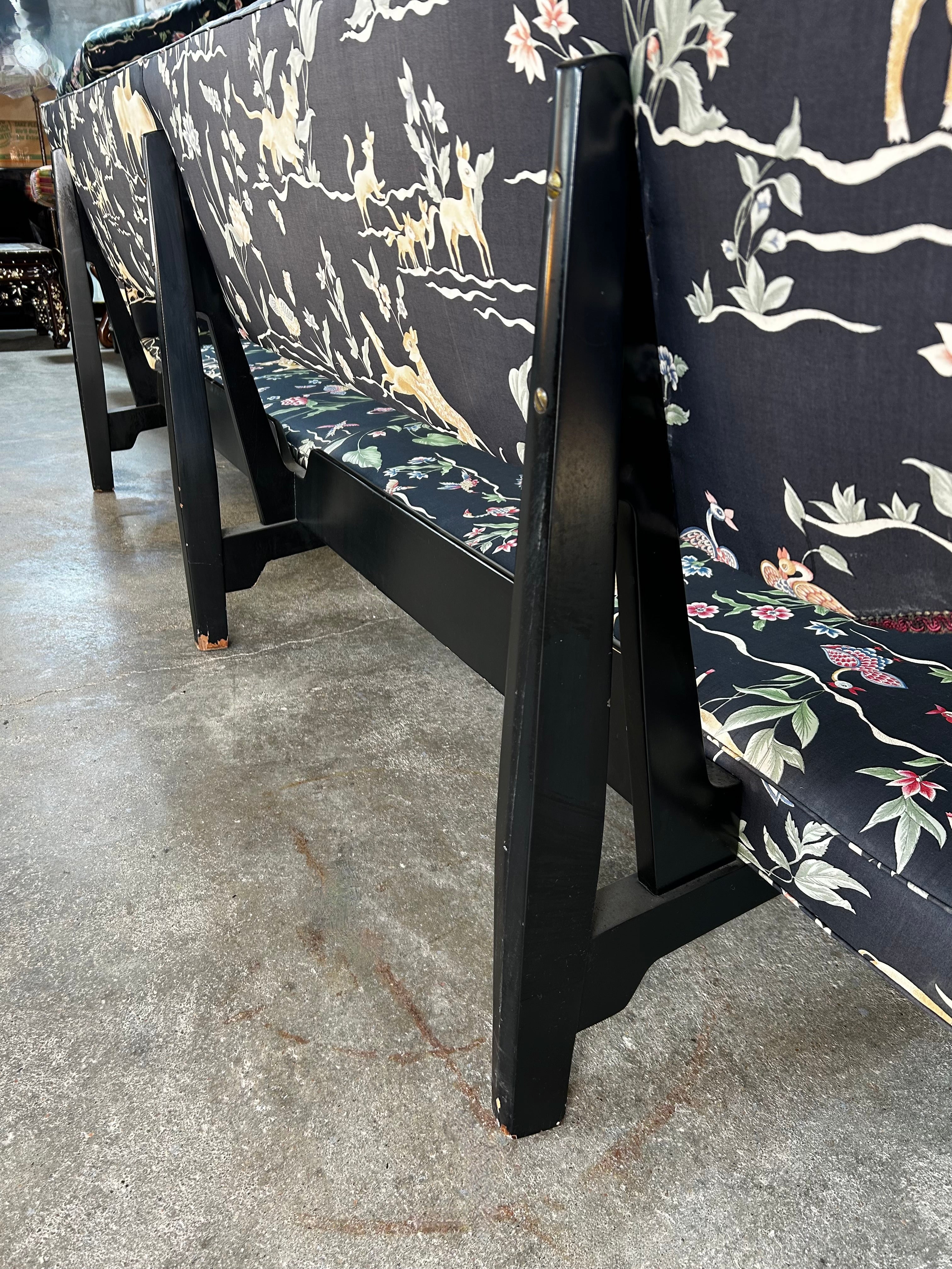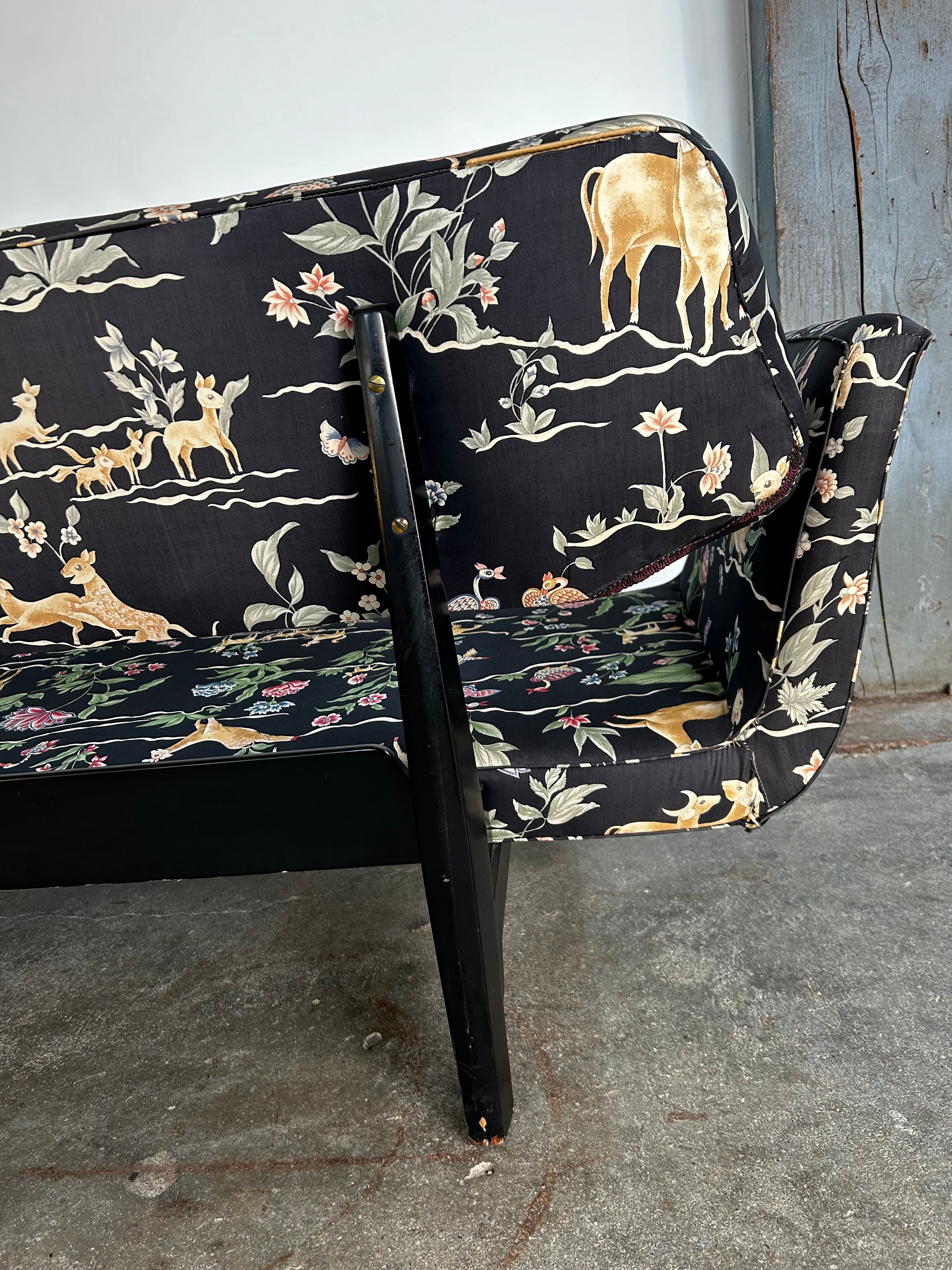 Condition is gently used and excellent. The fabric is clean, free from holes, tears, or noticeable stains. While the frame remains tight and robust, there are minor signs of wear, including a slightly loose left arm and small paint chips on the lower back parts of the legs.