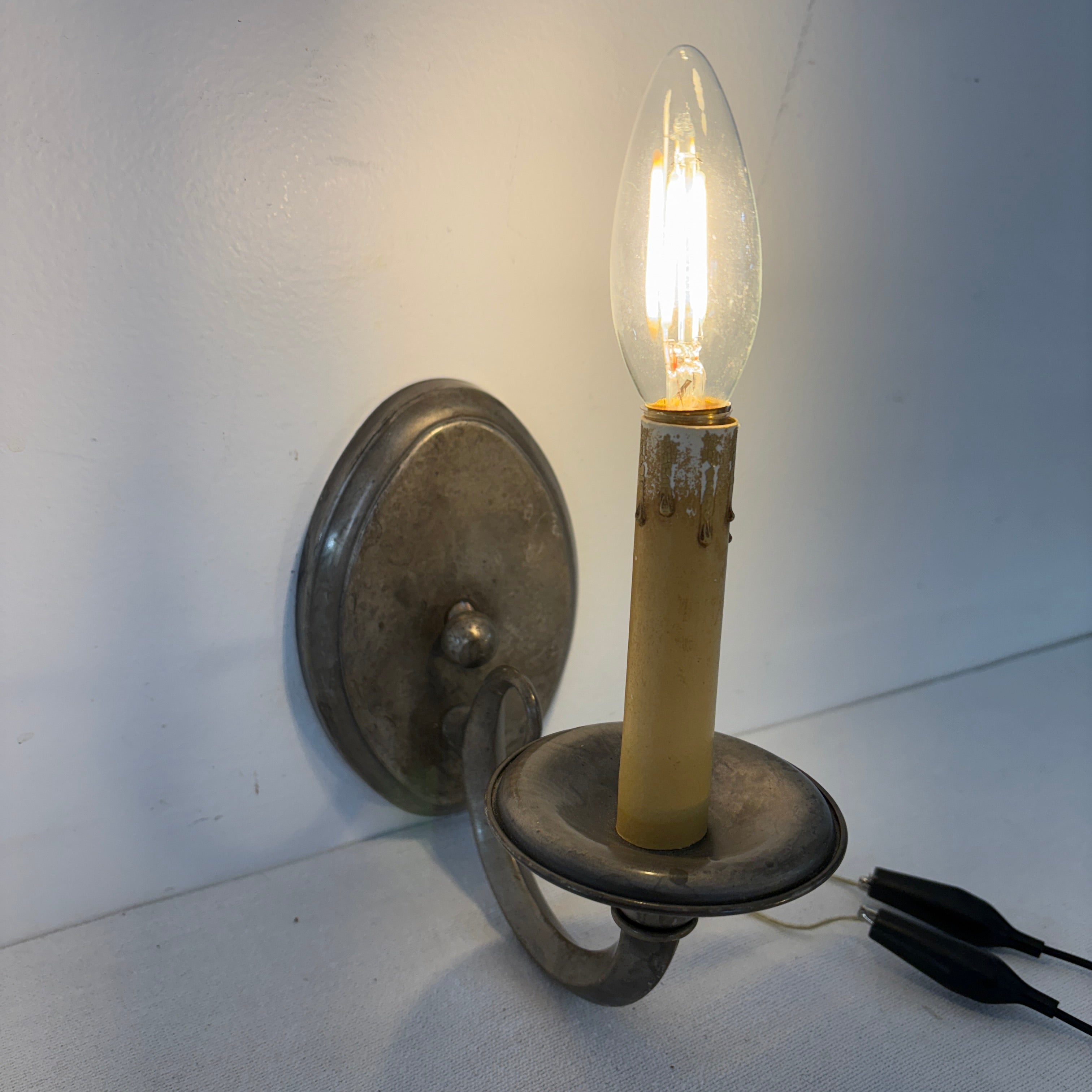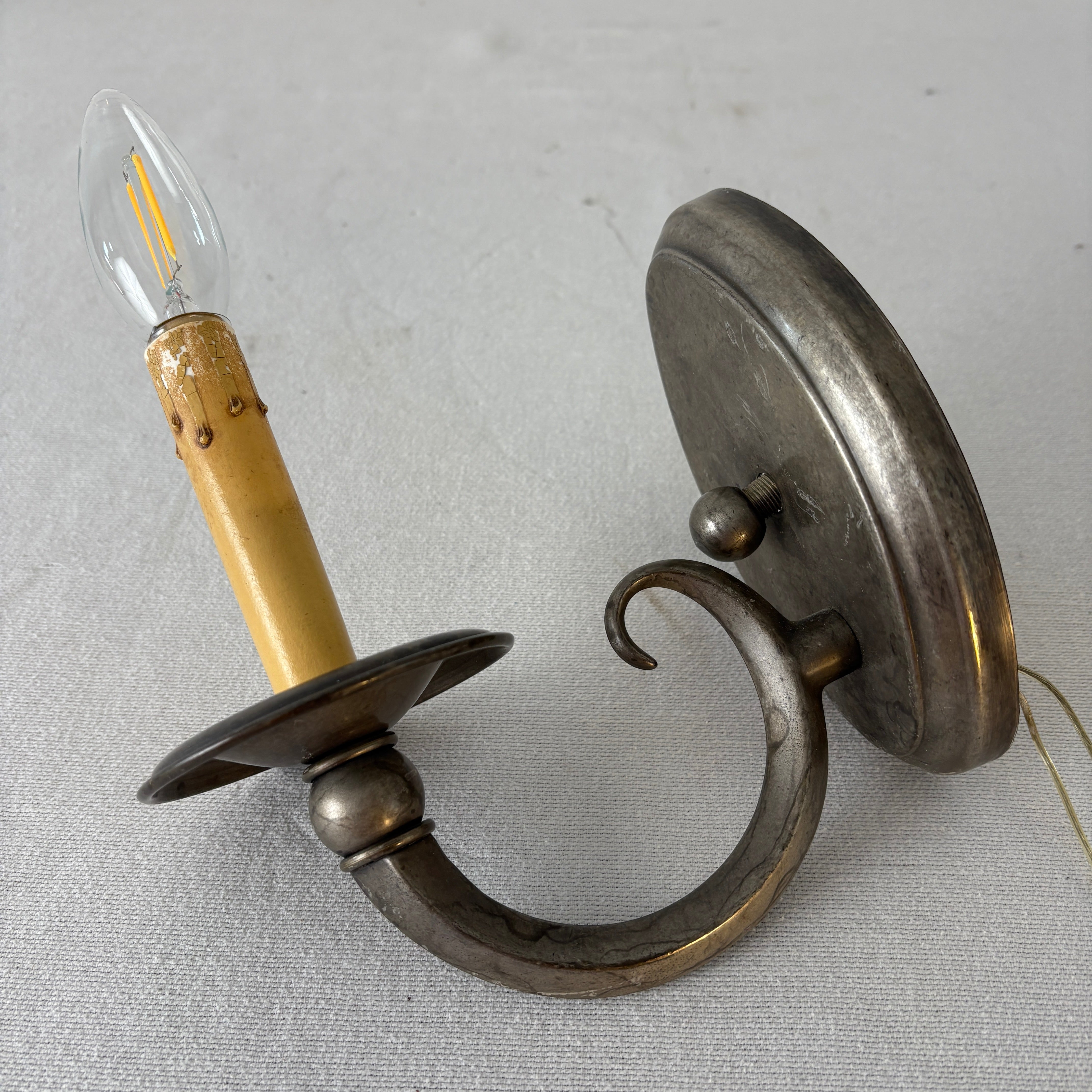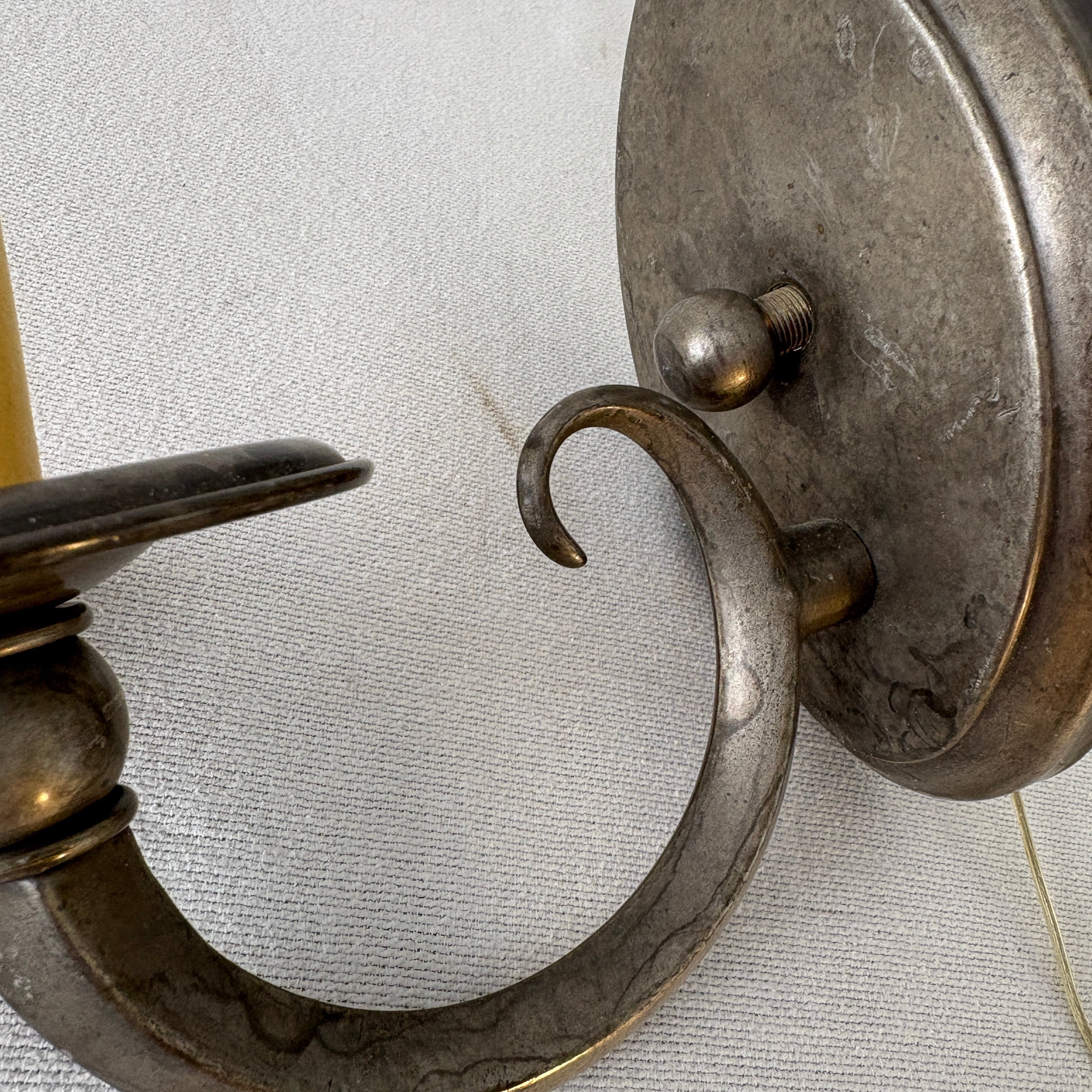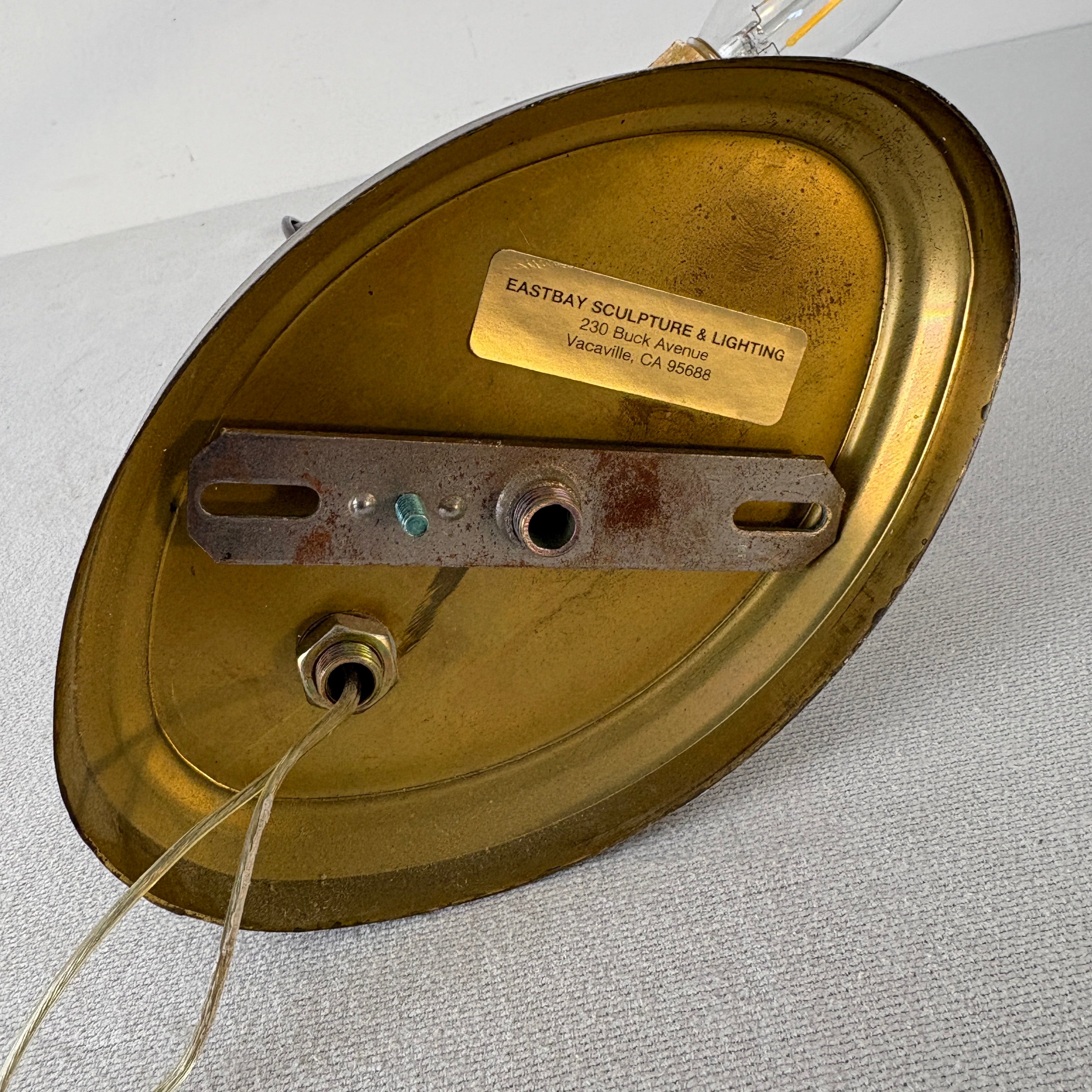 East Bay Sculpture and Lighting Company, Single Arm Wall Sconce with Oval Backplate, Silver Tone