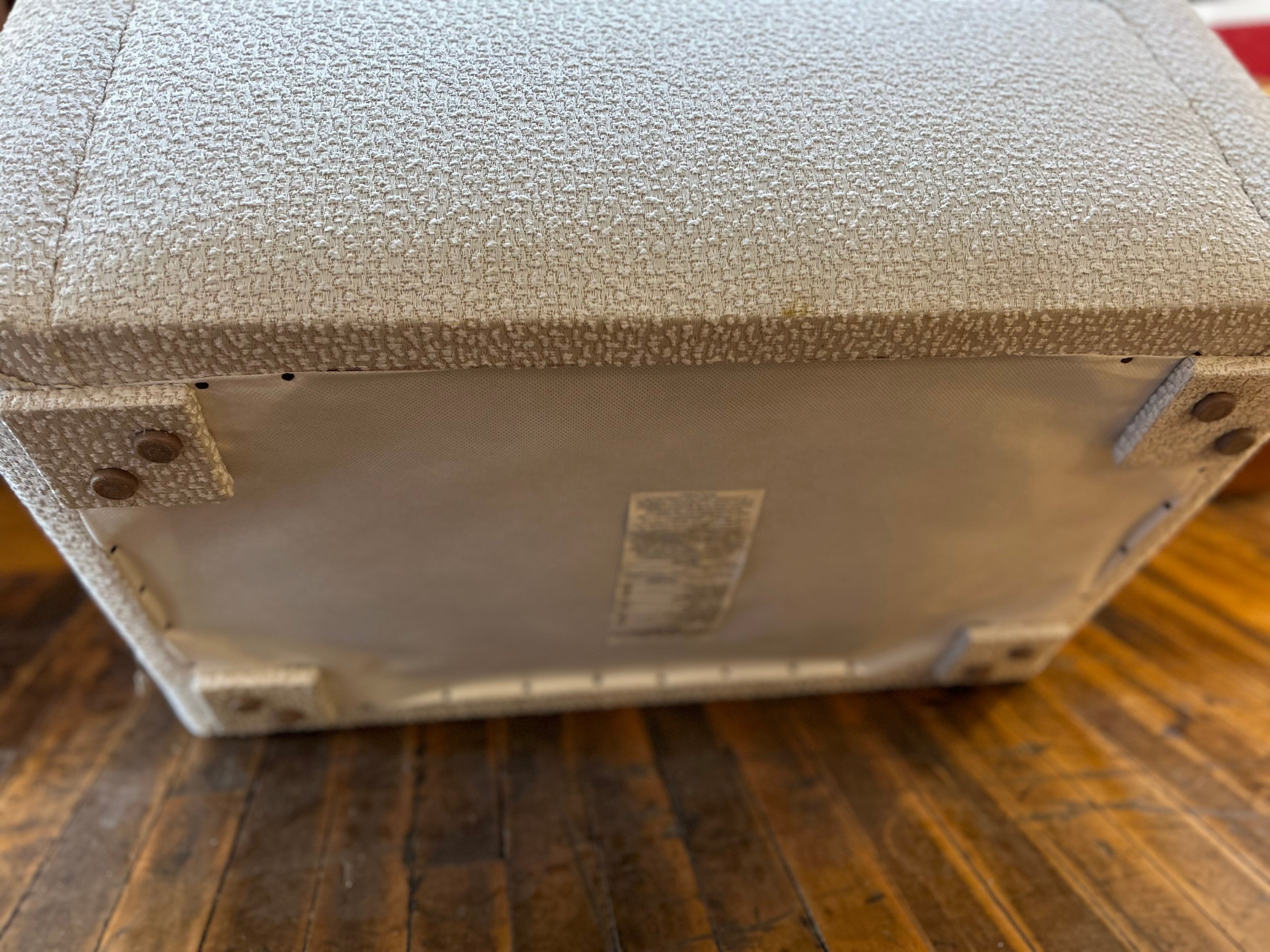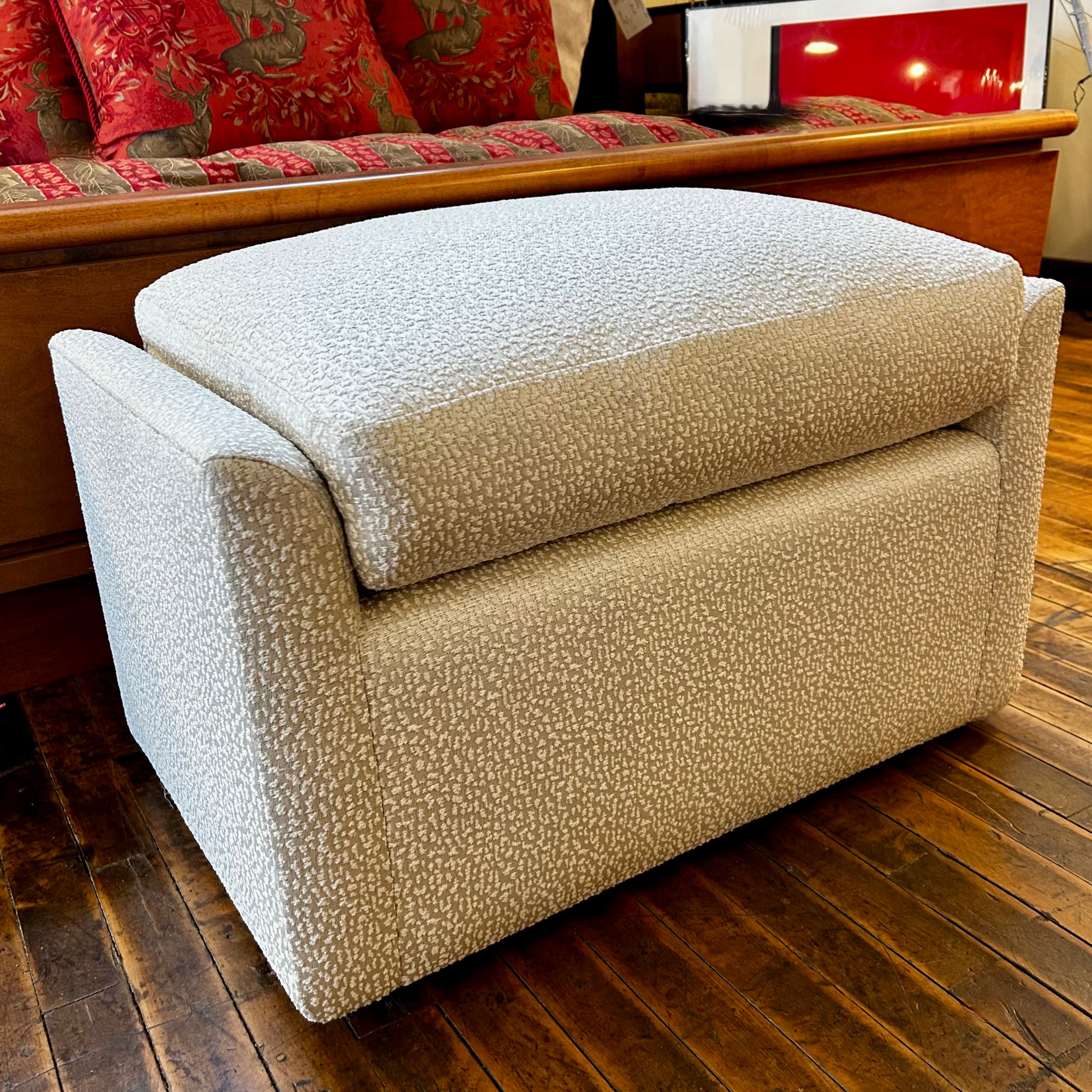 Elisa Carlucci Quintus Camille ottoman, cream white upholstery with custom removable cushion.