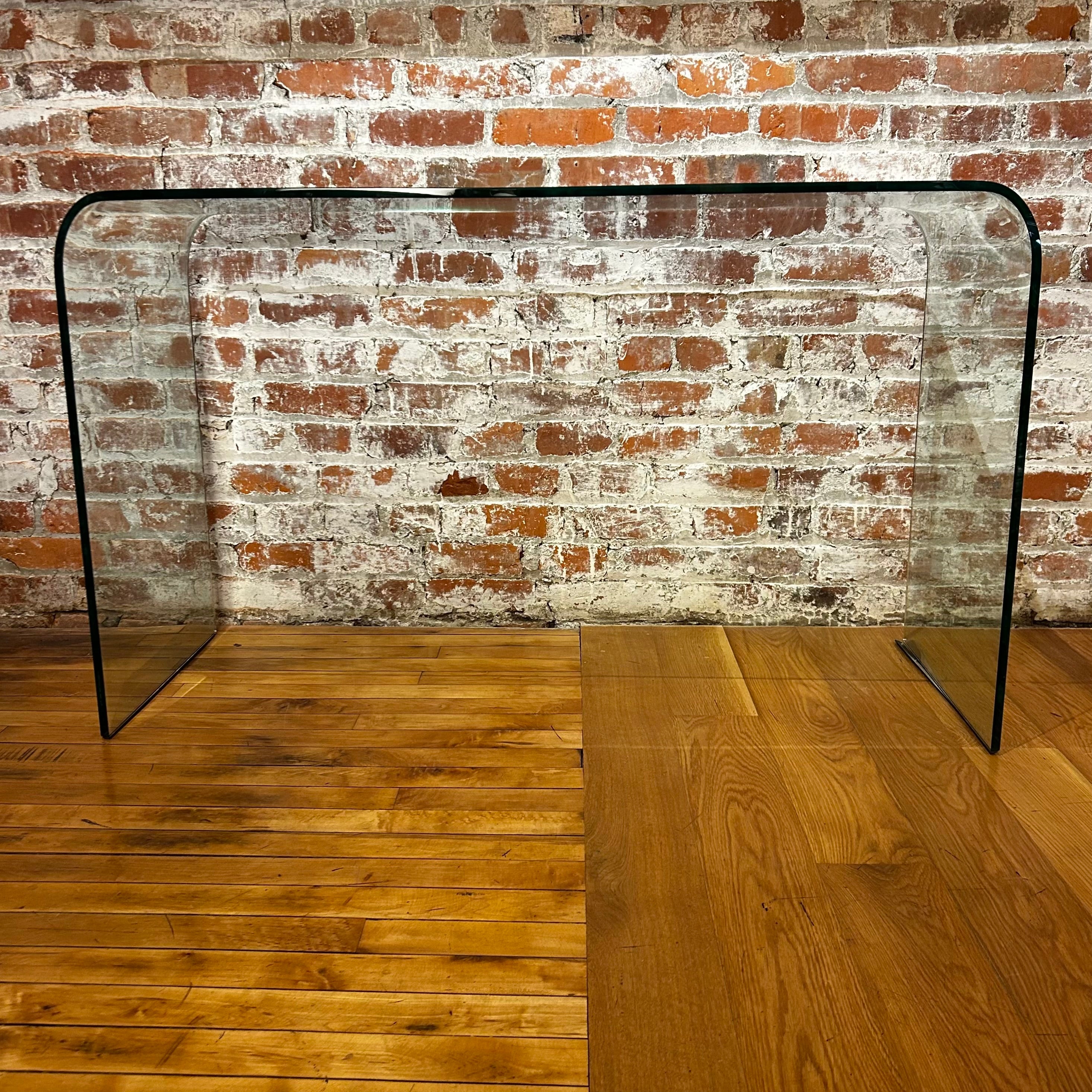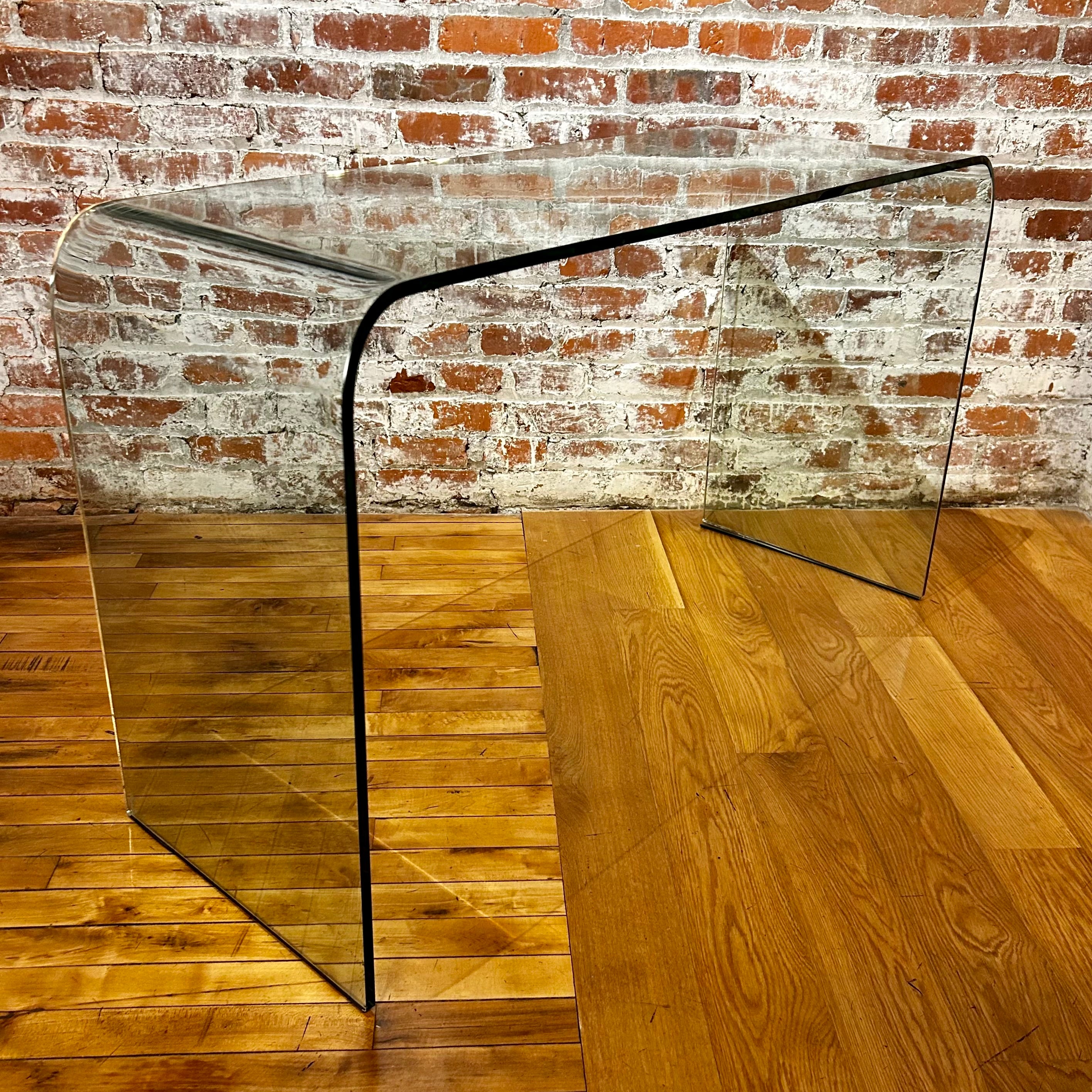 Fiam Angelo Cortesi curved glass desk table with beveled edge glass.