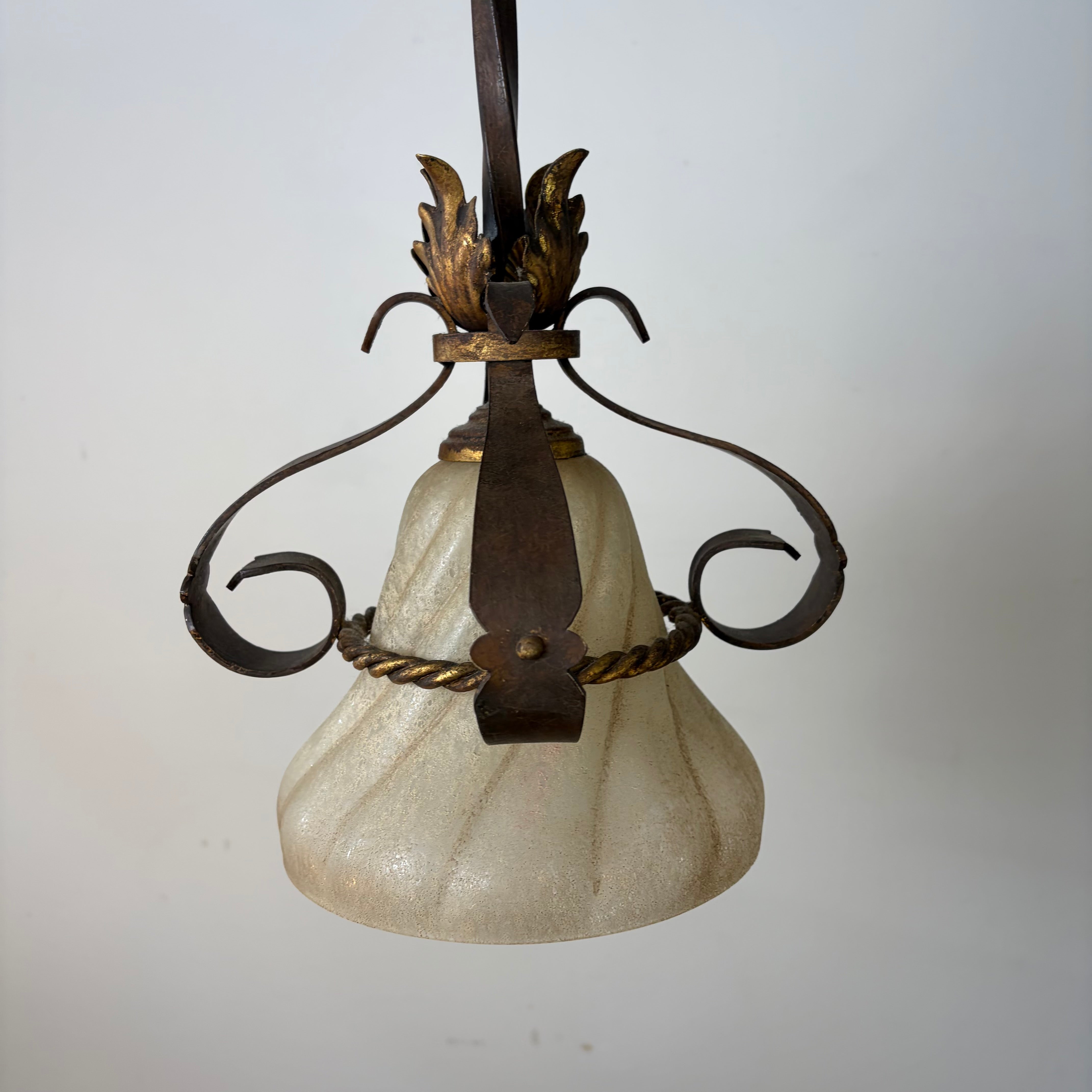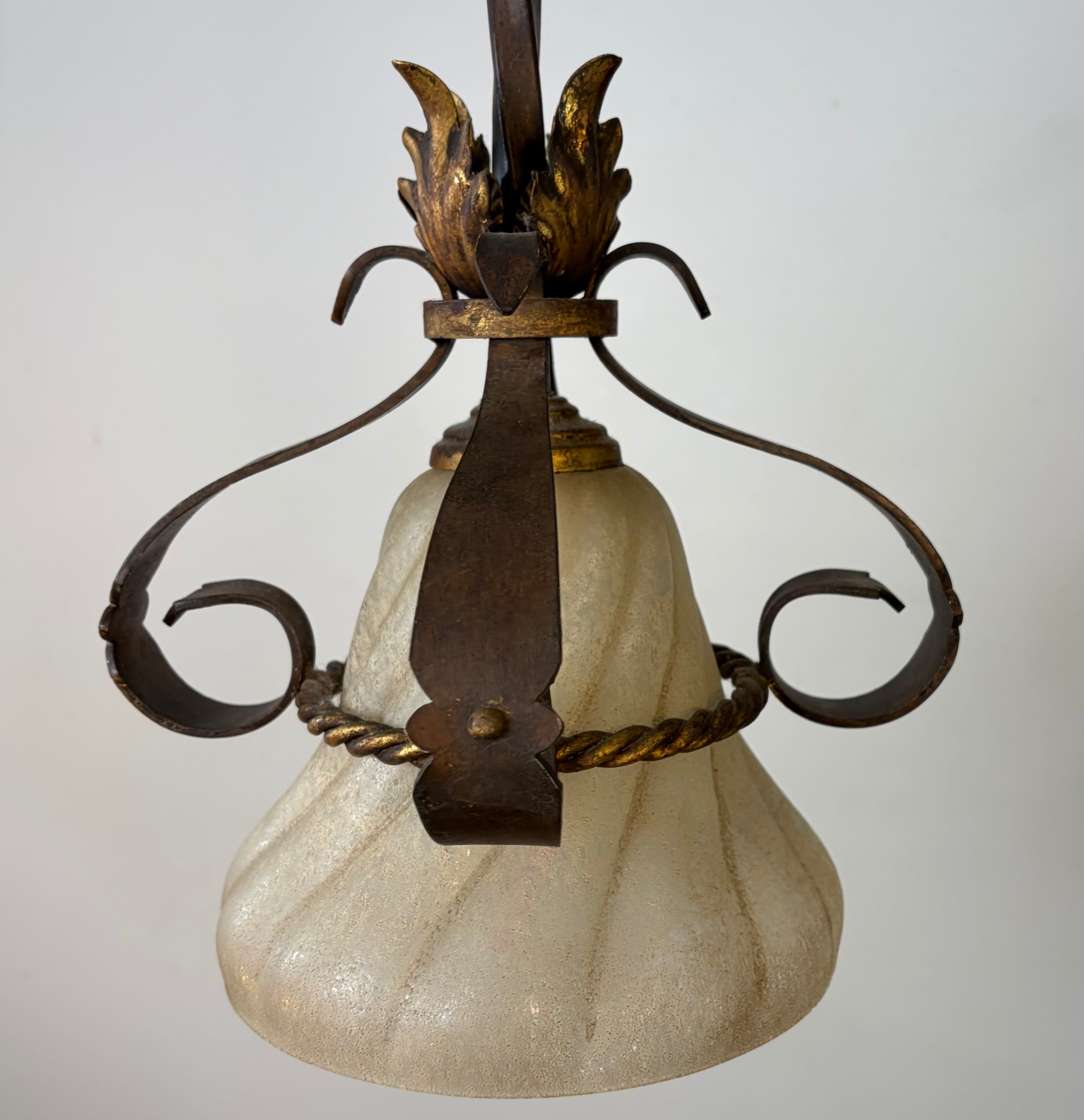 Fine Art Lamps Pendent Light, Ornate, Frosted Shade with Bronzed Finish.