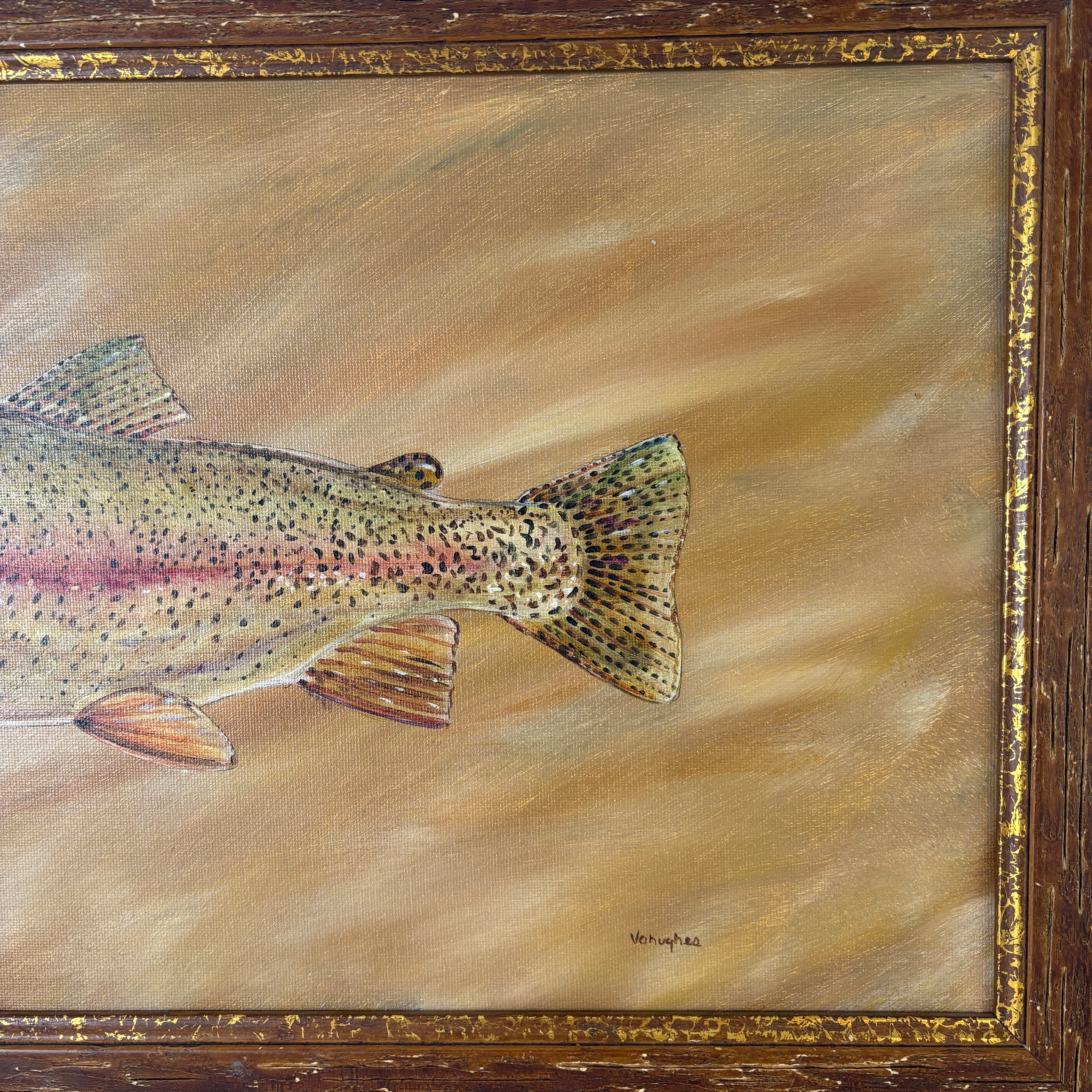 Fish Painting of a Rainbow Trout, Artist -Vahughes, Framed.