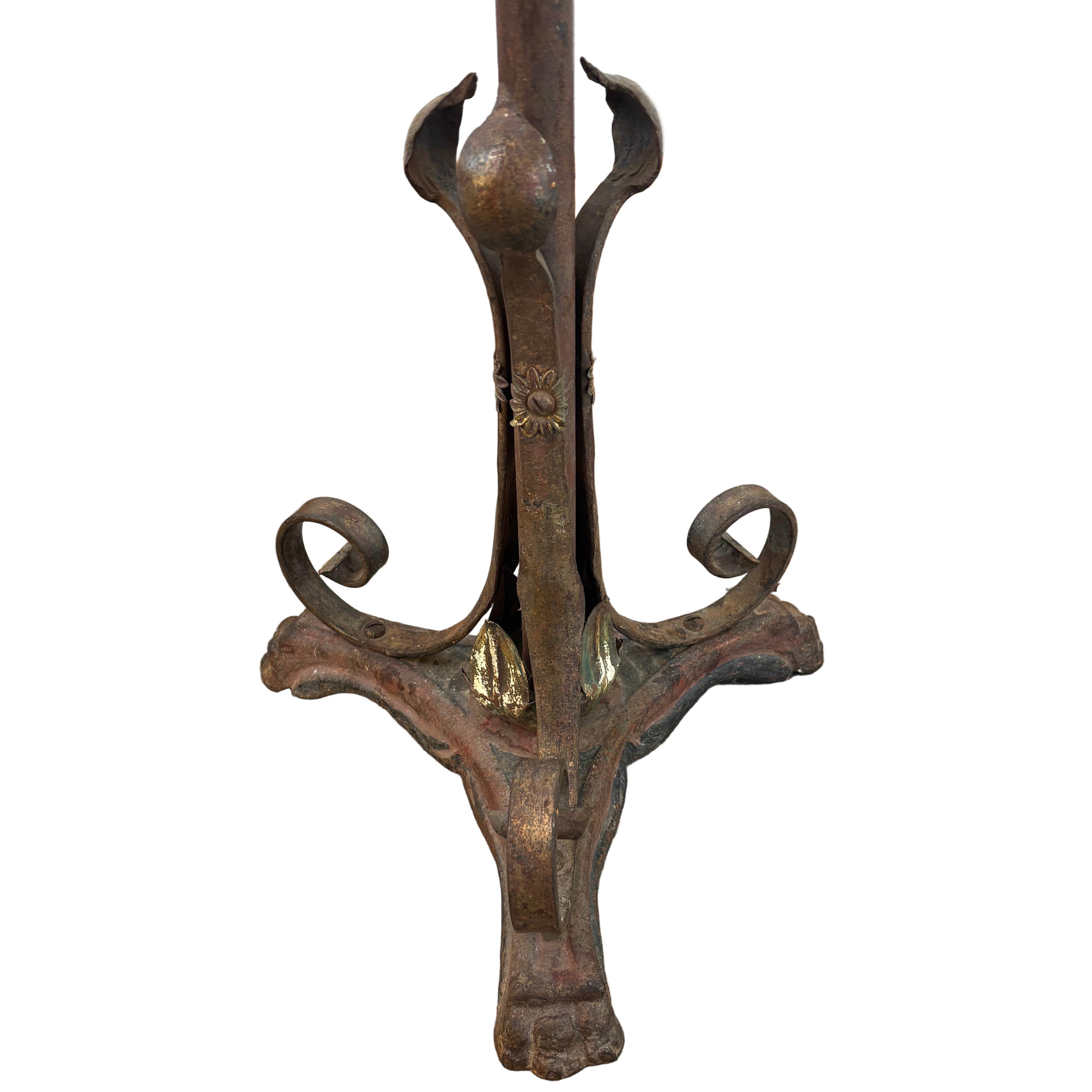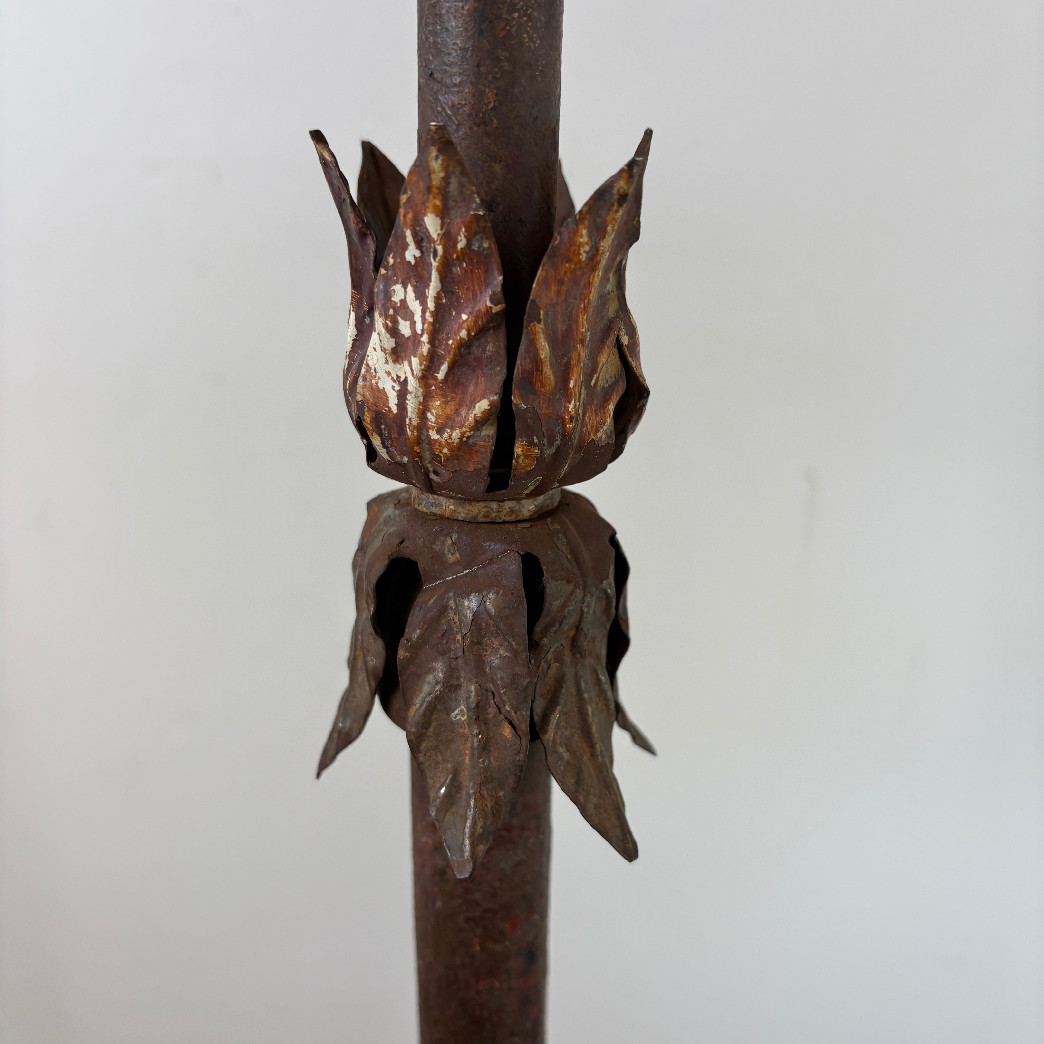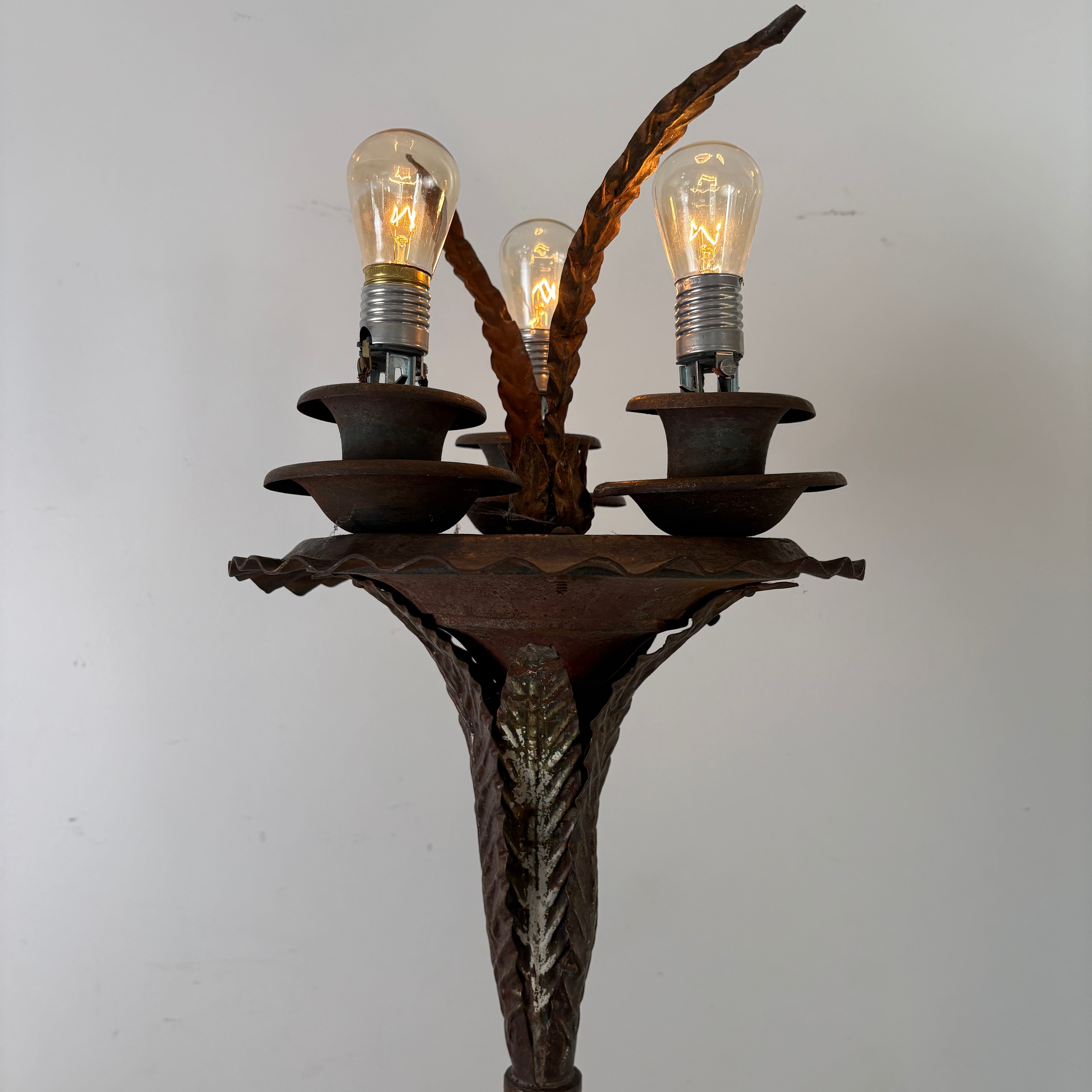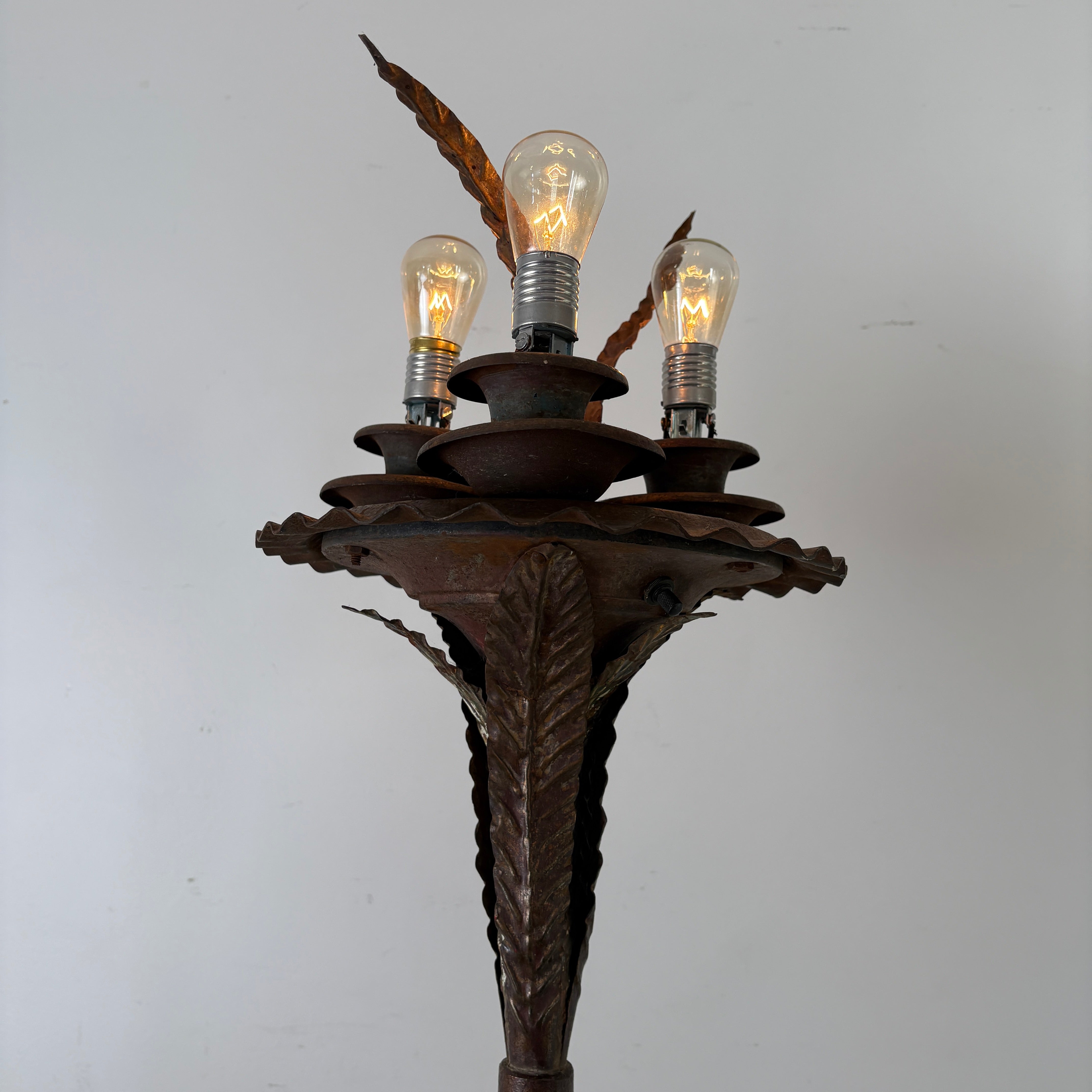 Floor Lamp in Metal with Pressed Metal Leaf Motif. Three light sockets.