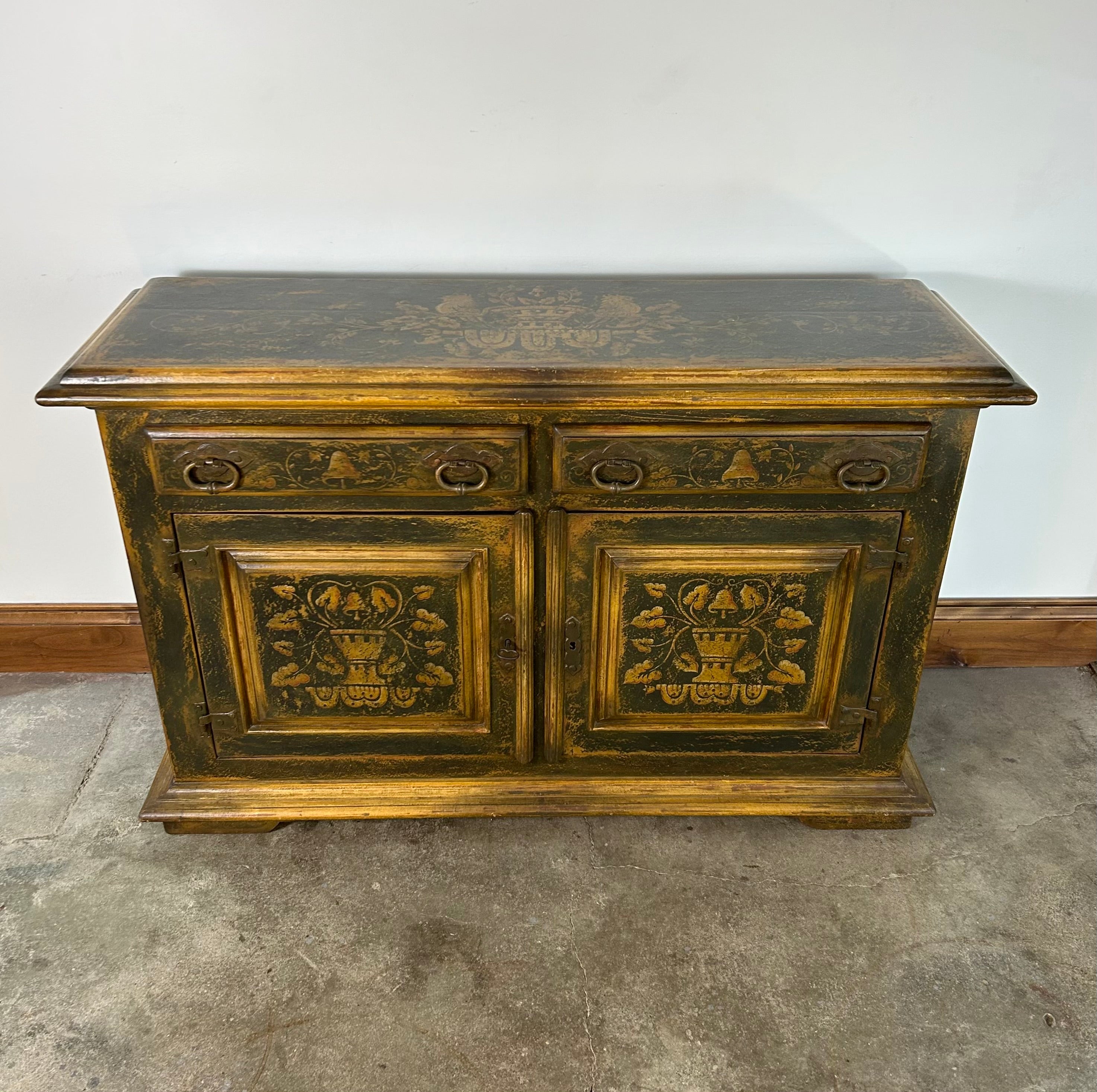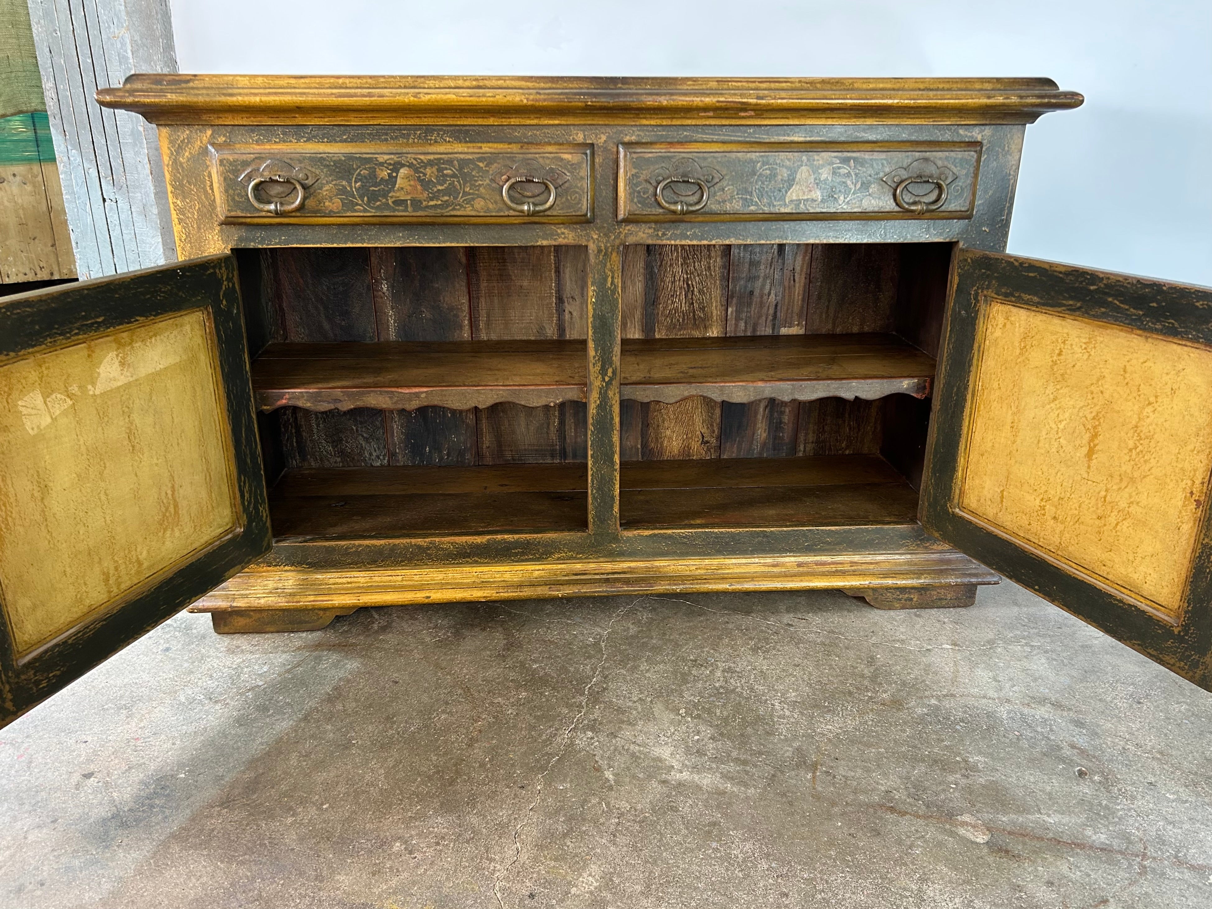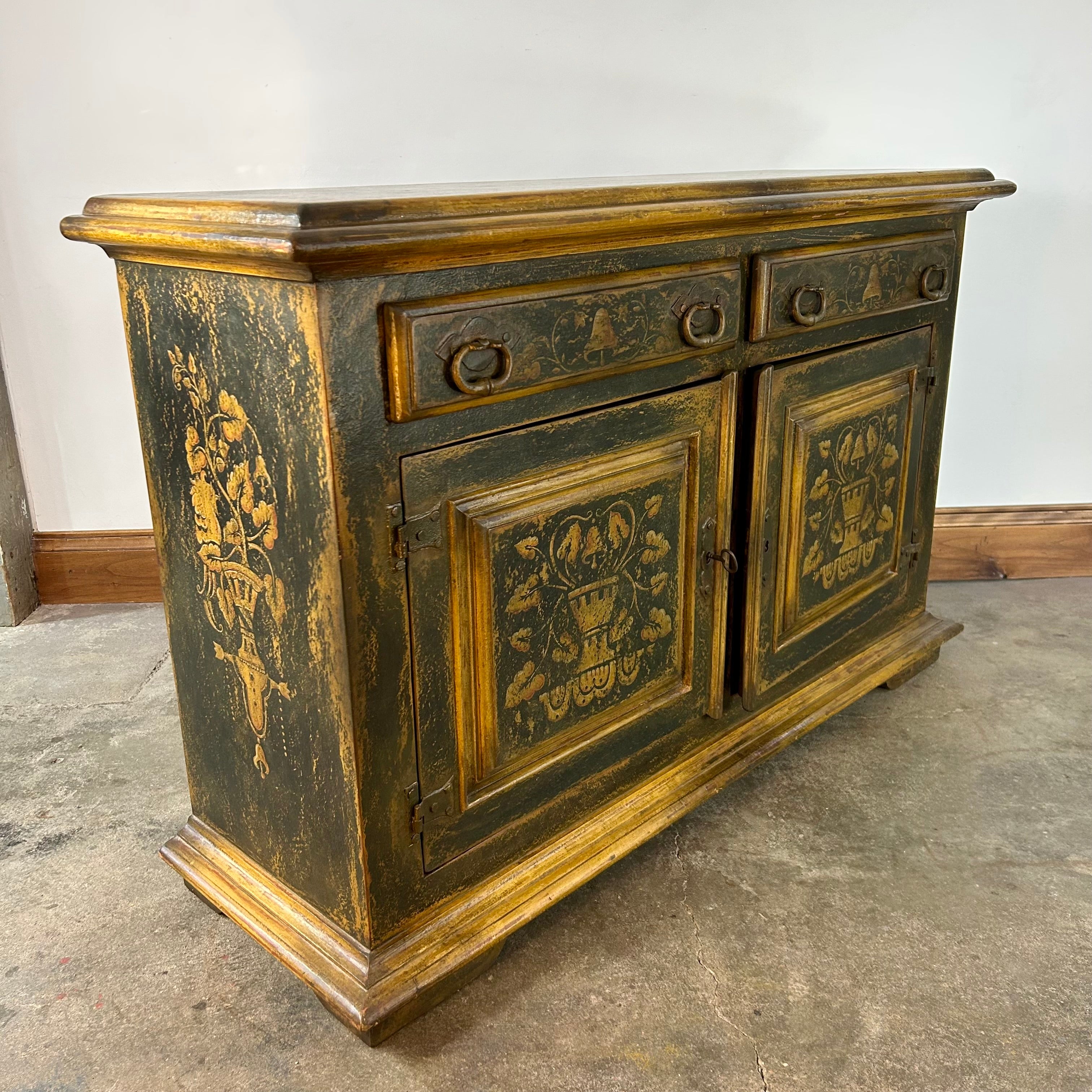Sideboard or server cabinet with hand painted basket & bird motif with key.
