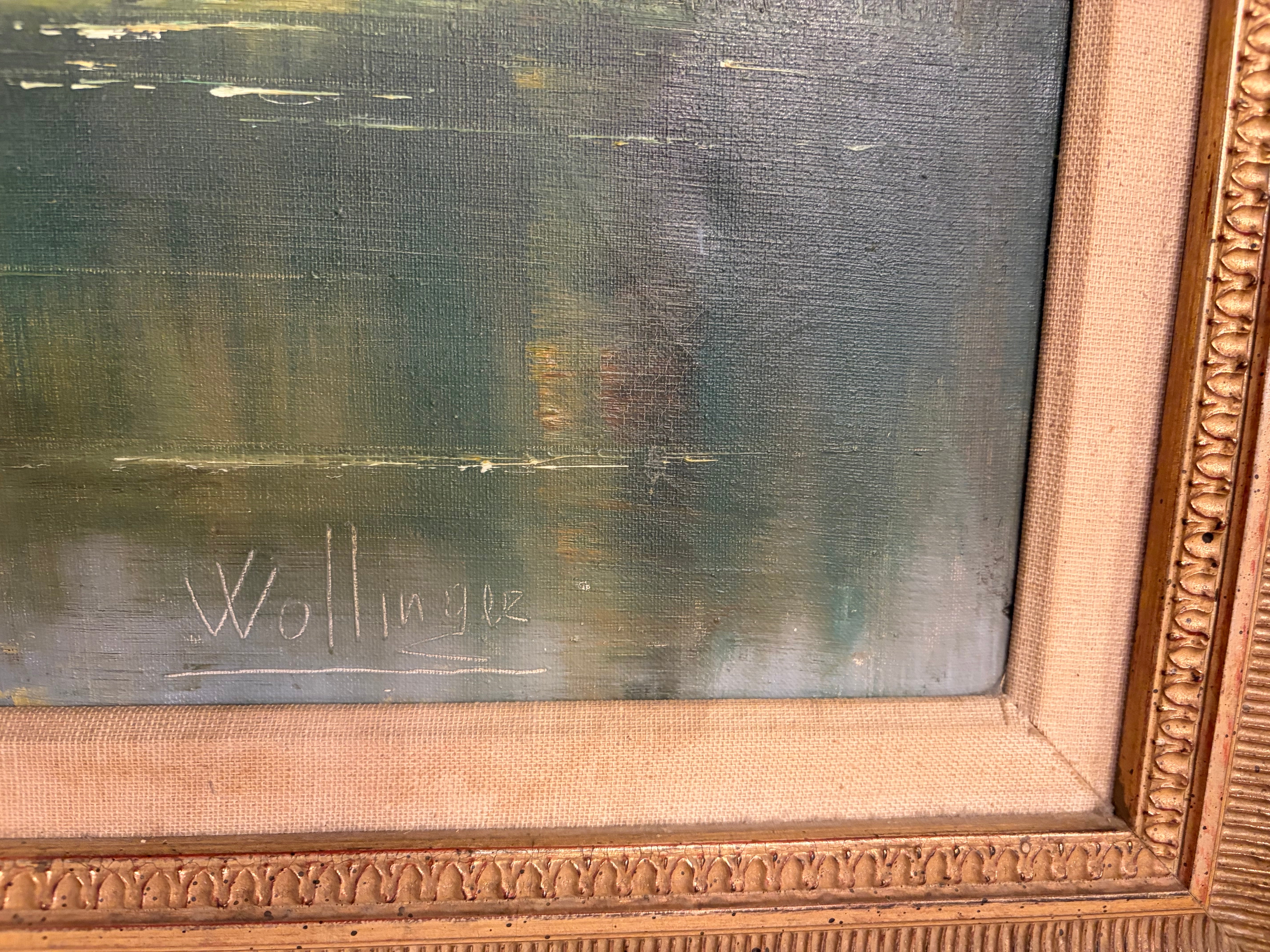 Vintage Forest Lake Scene by Dutch Artist Peter Volinger, Original Oil in Frame.