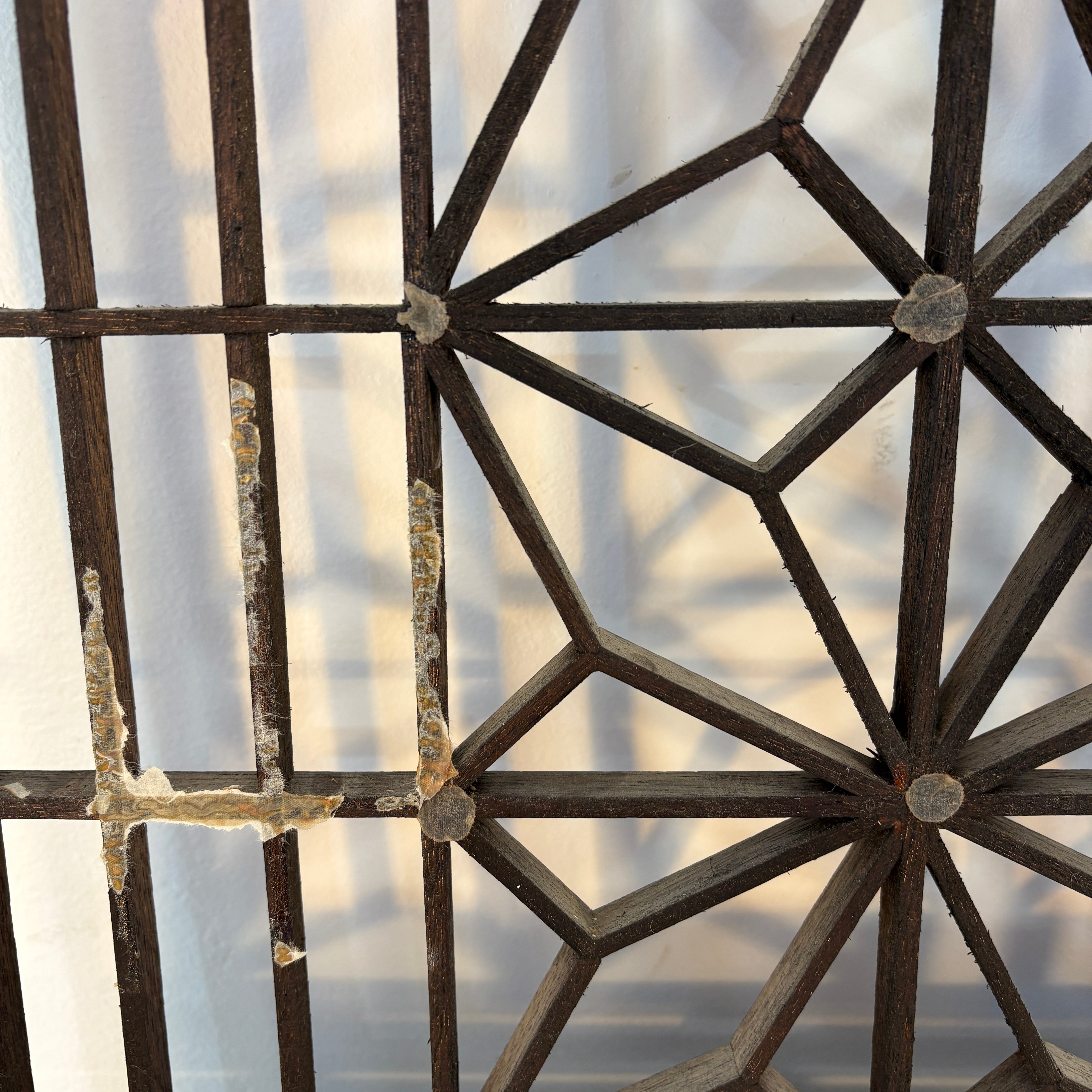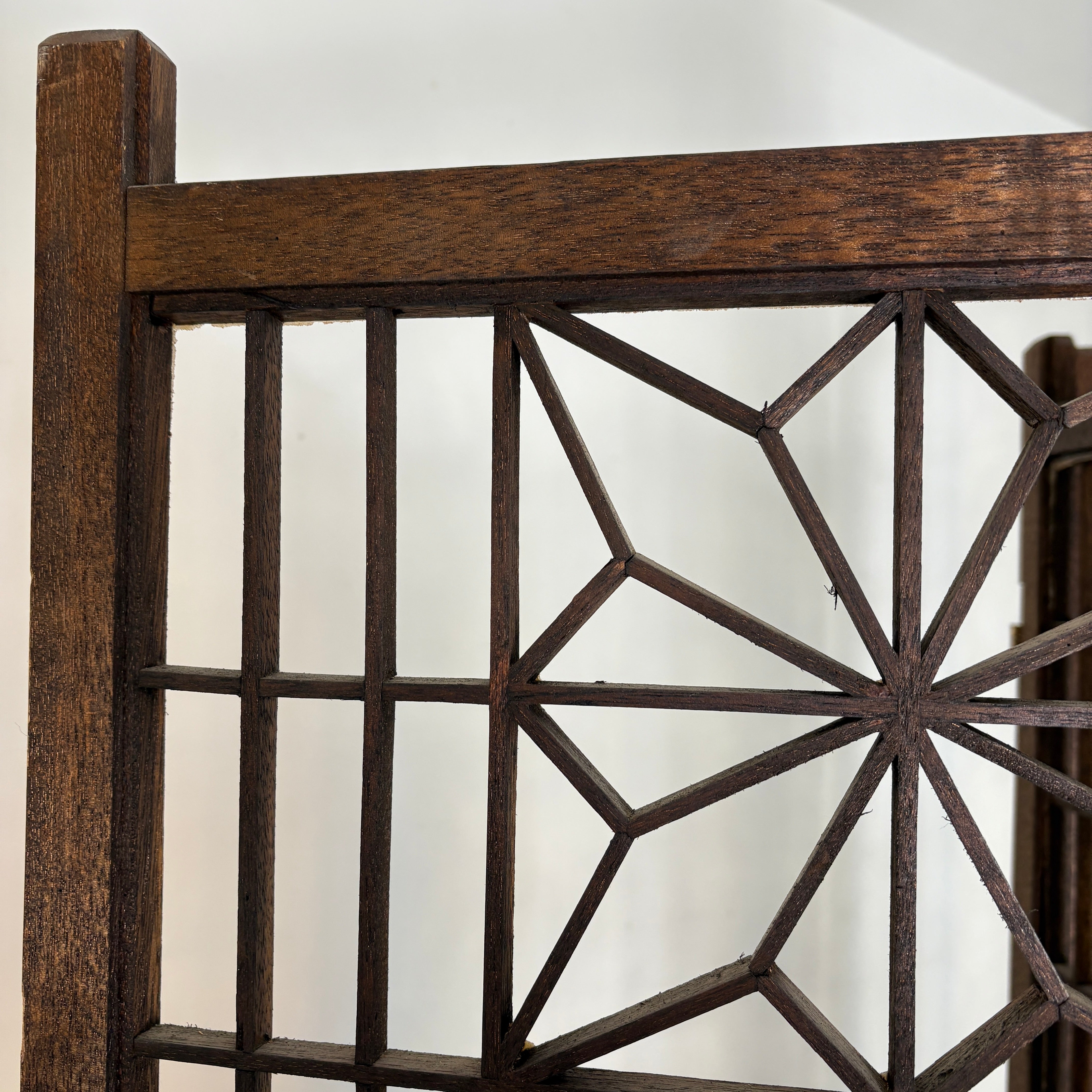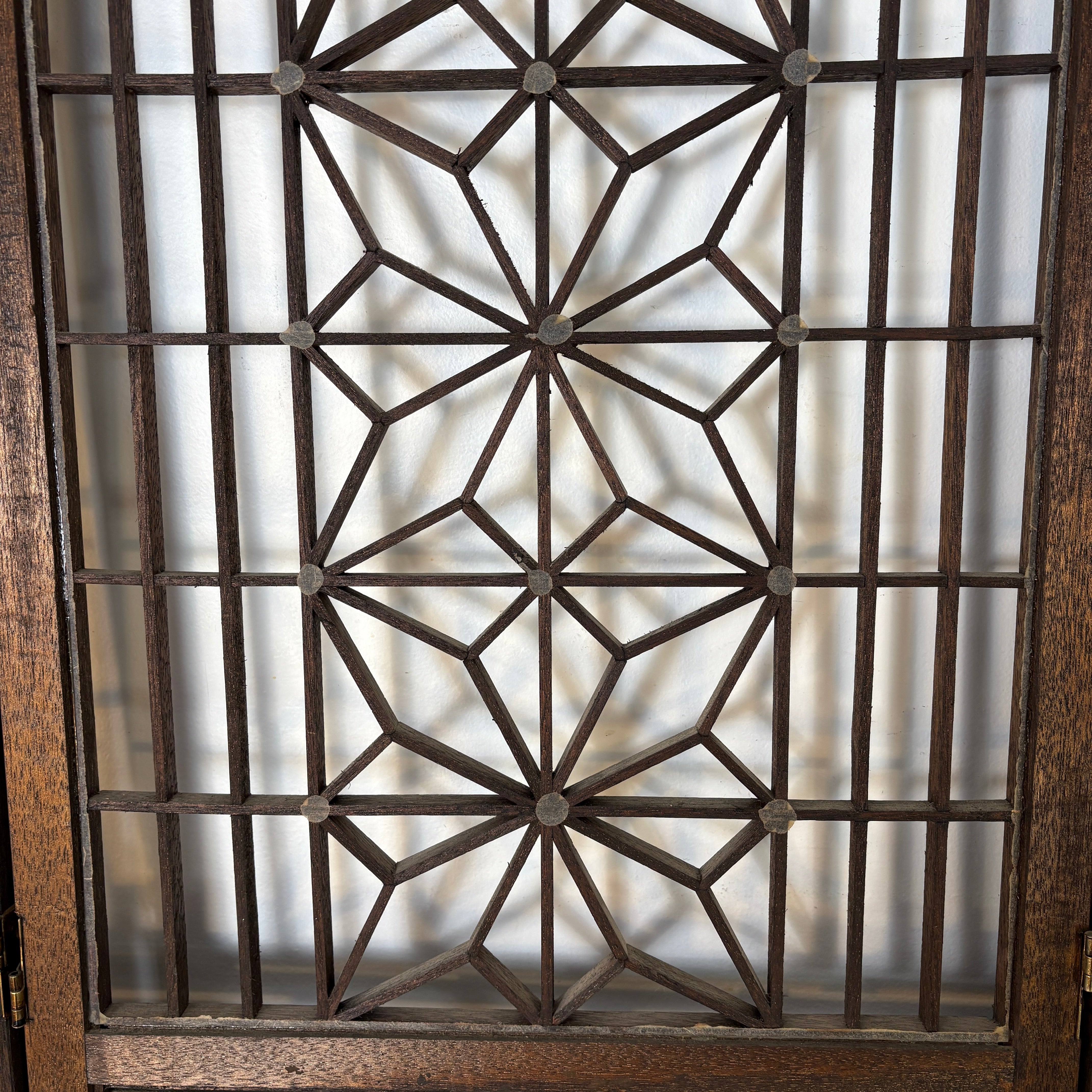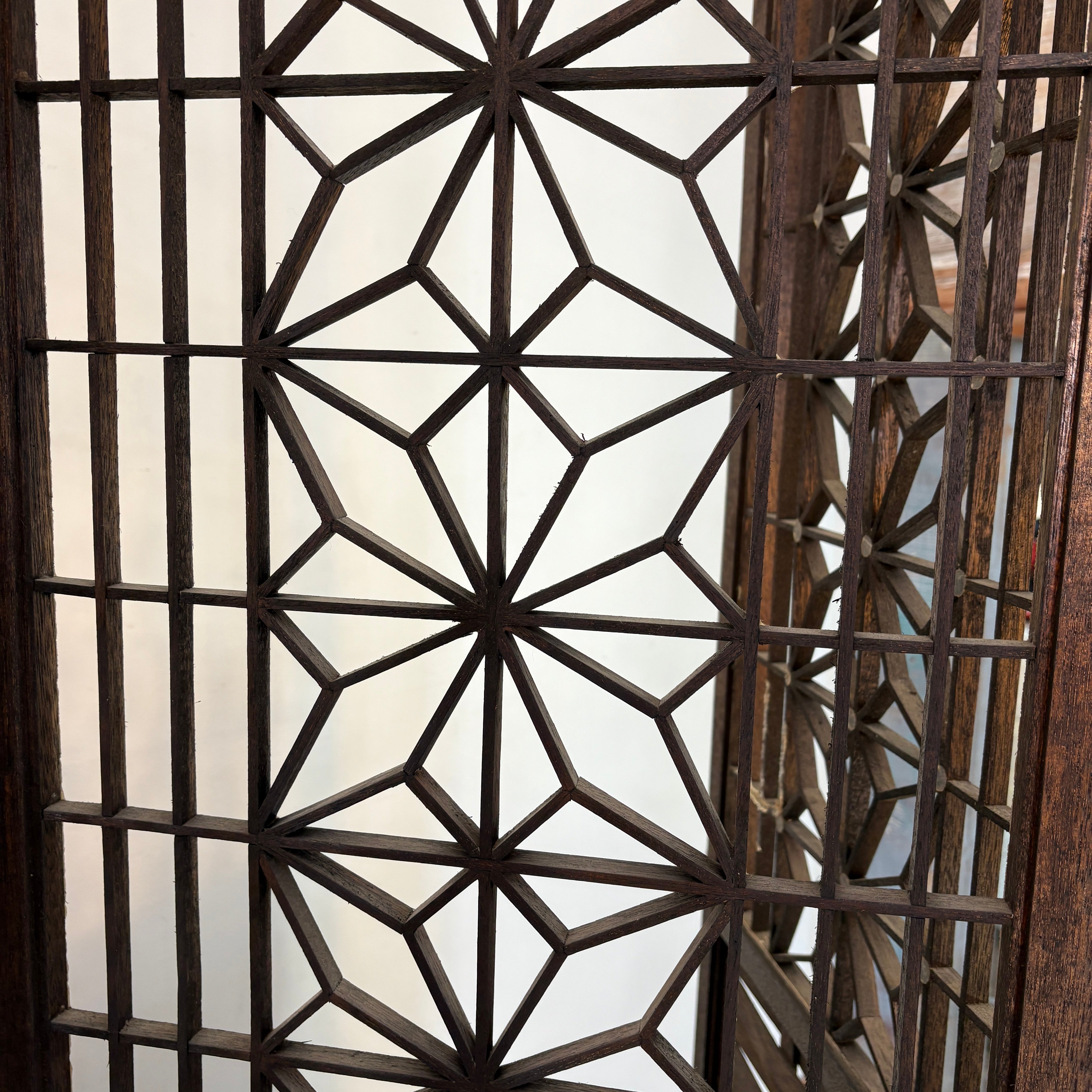 1960's Mid Century Modern Japanese "Atomic Starburst" Kumiko Teak Wood 4-Panel Room Divider