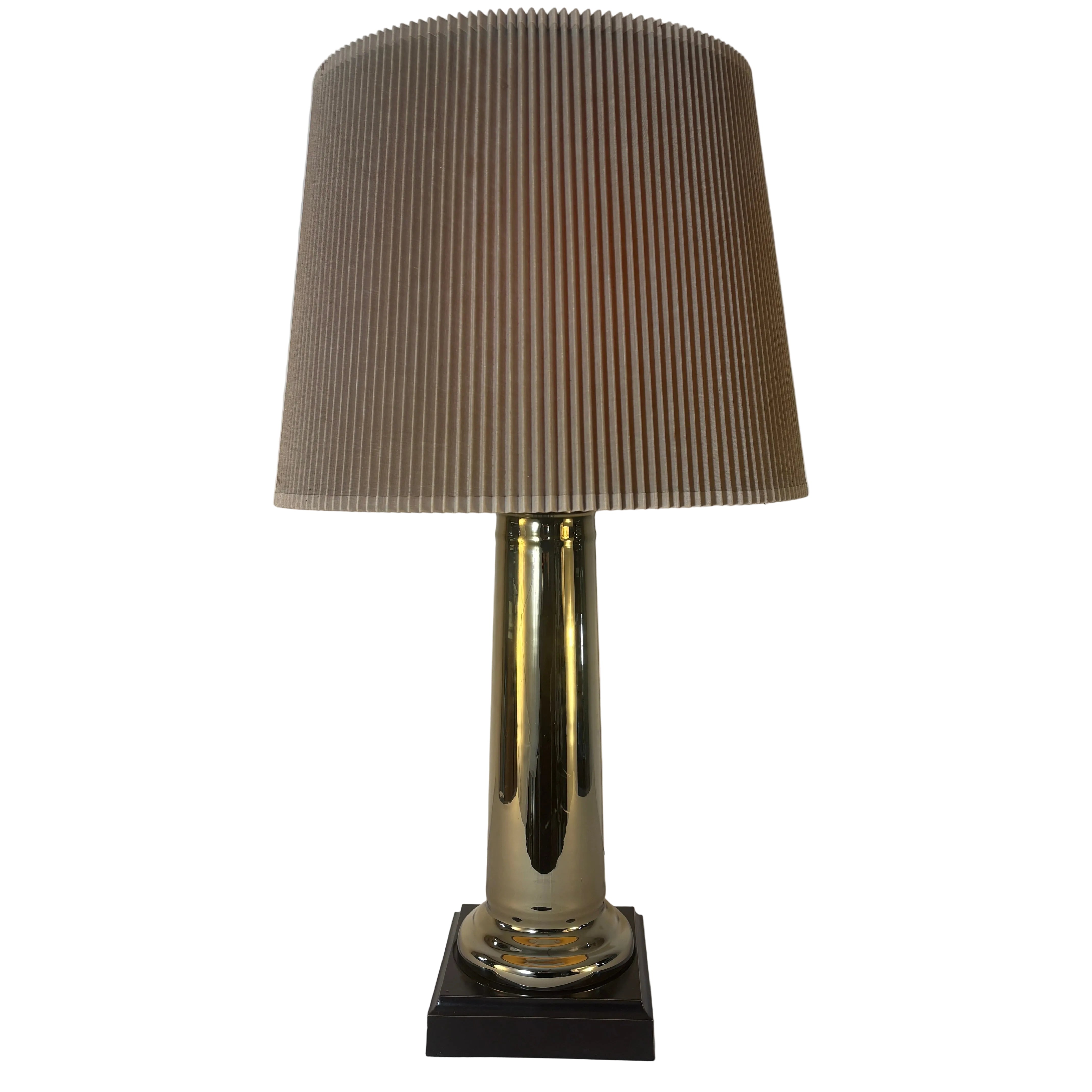 Gold Glass Column Shaped Lamp Base with Square Base. Shade Not Included in Price.