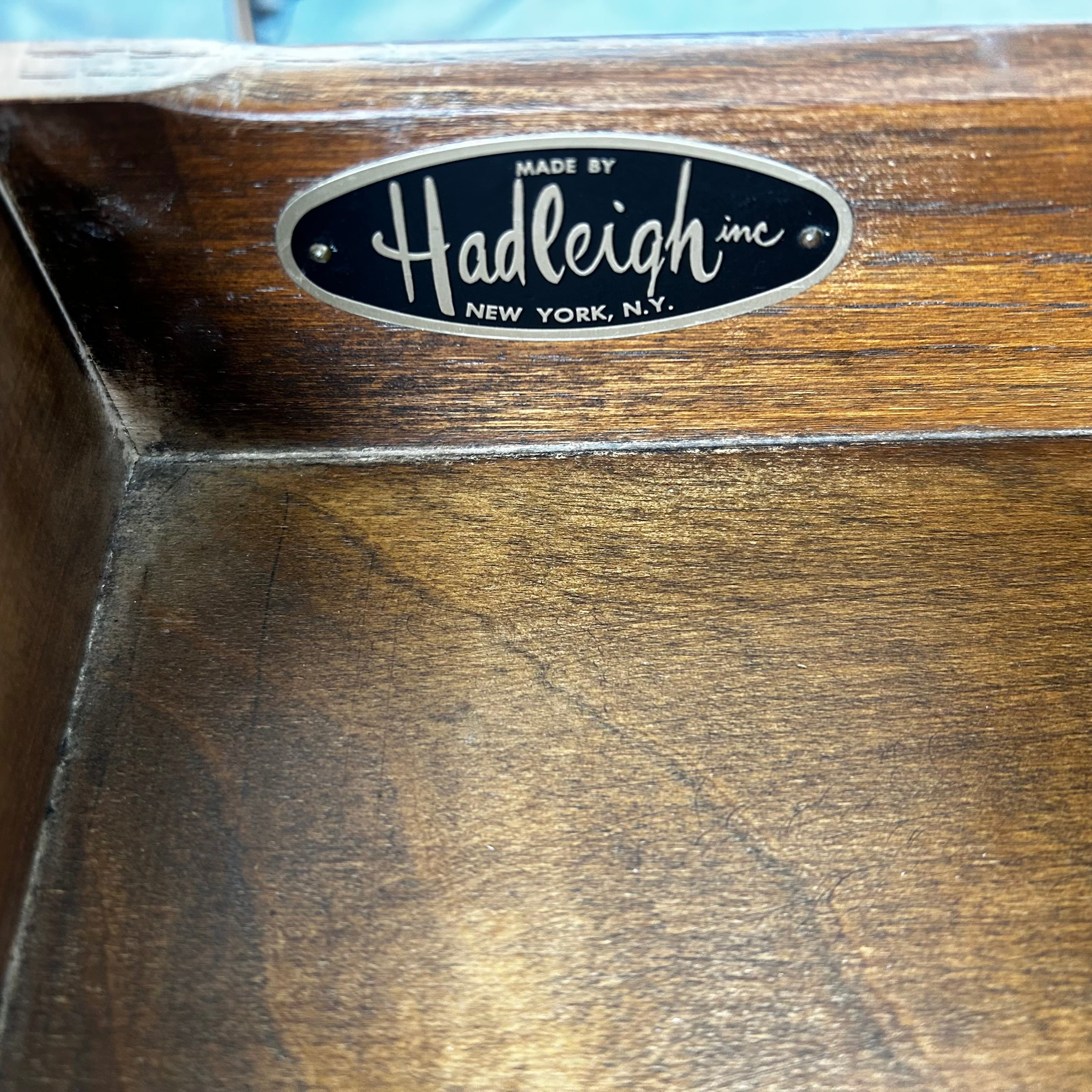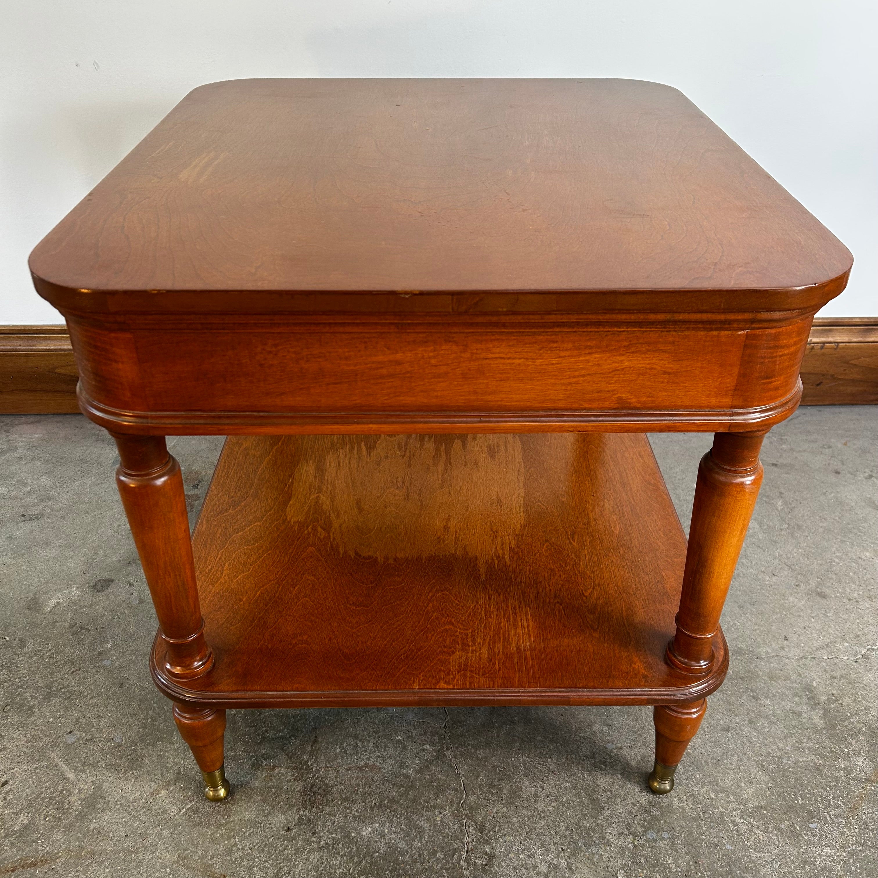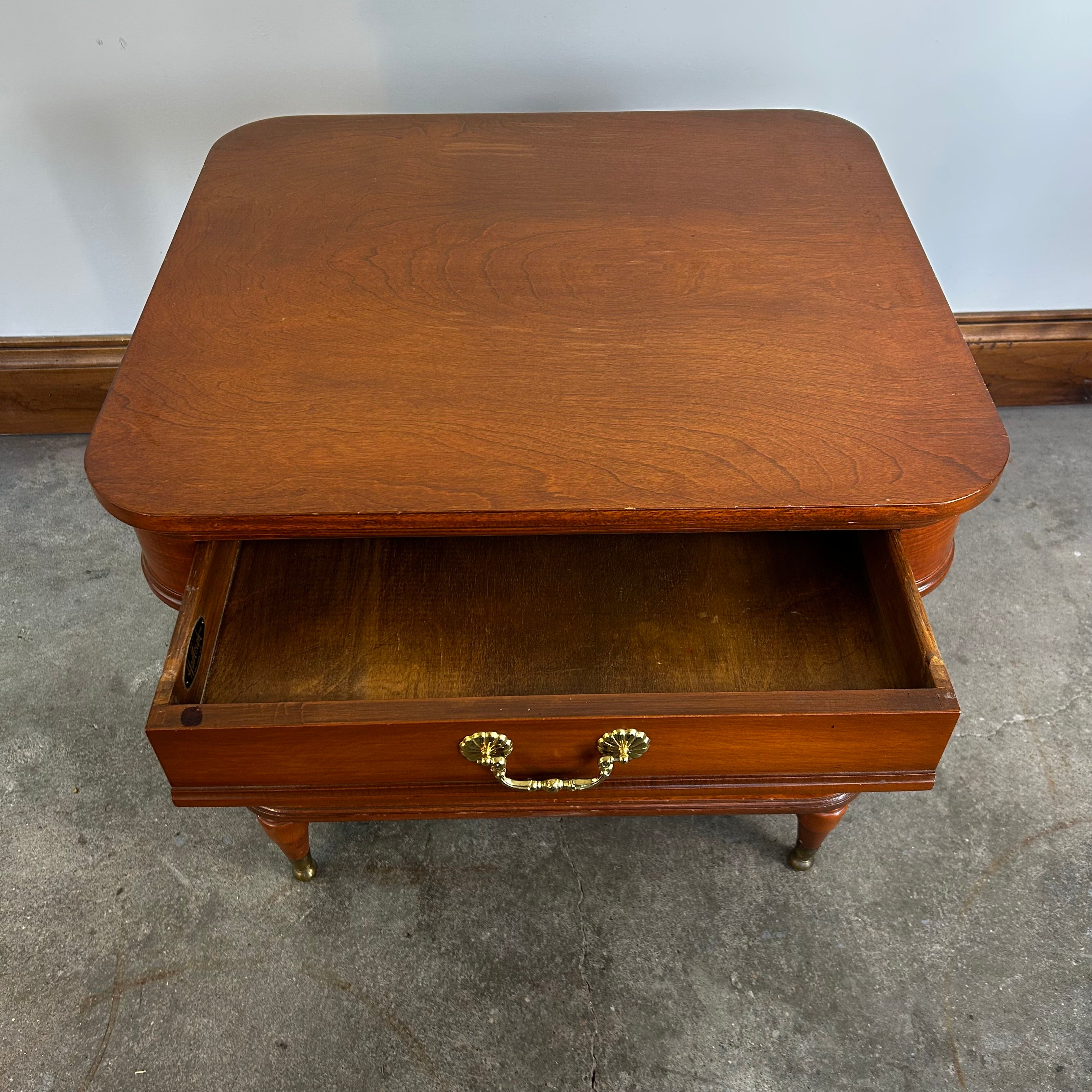 Hadleigh nightstand with drawer, lower shelf with brass pull.