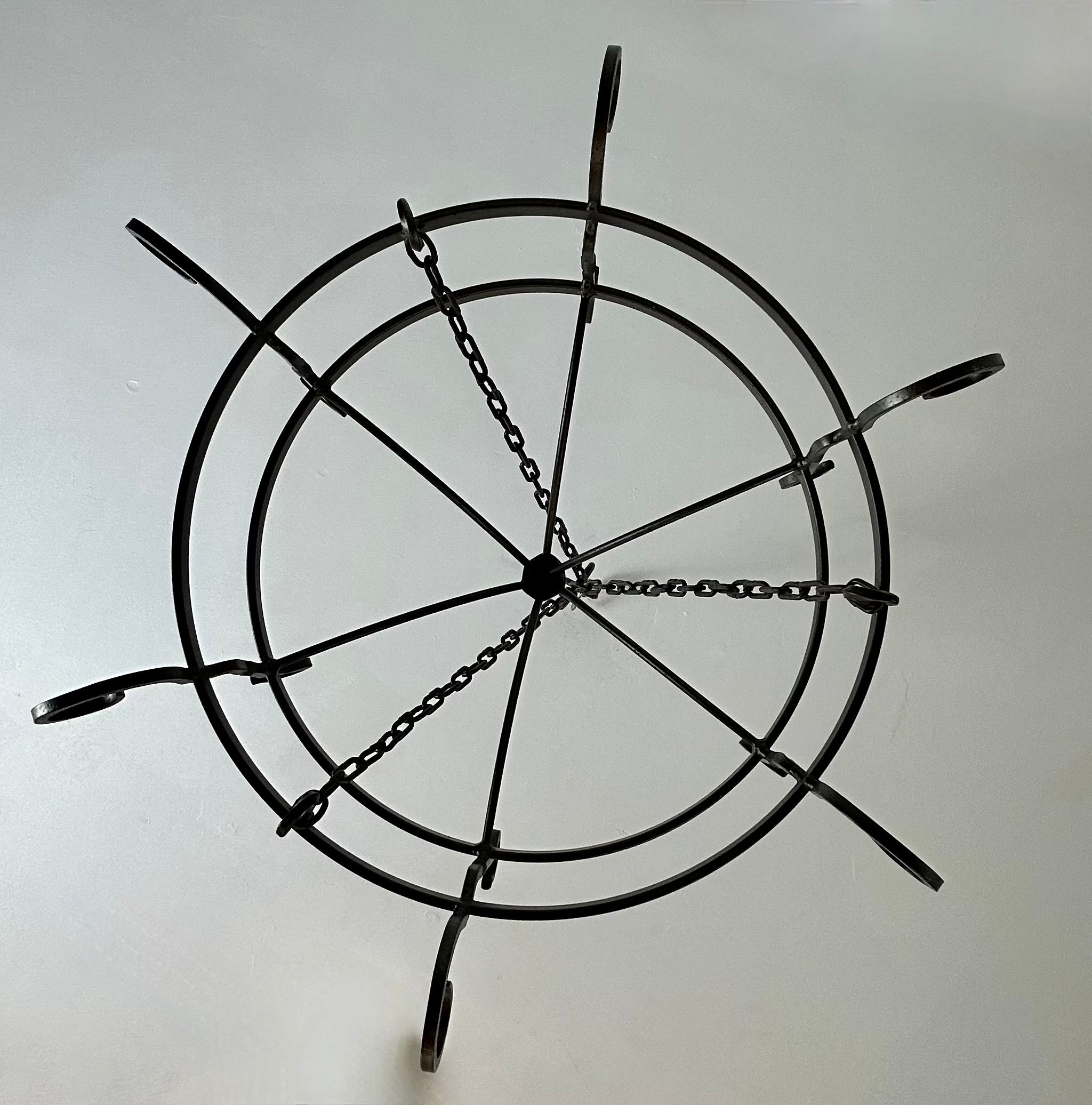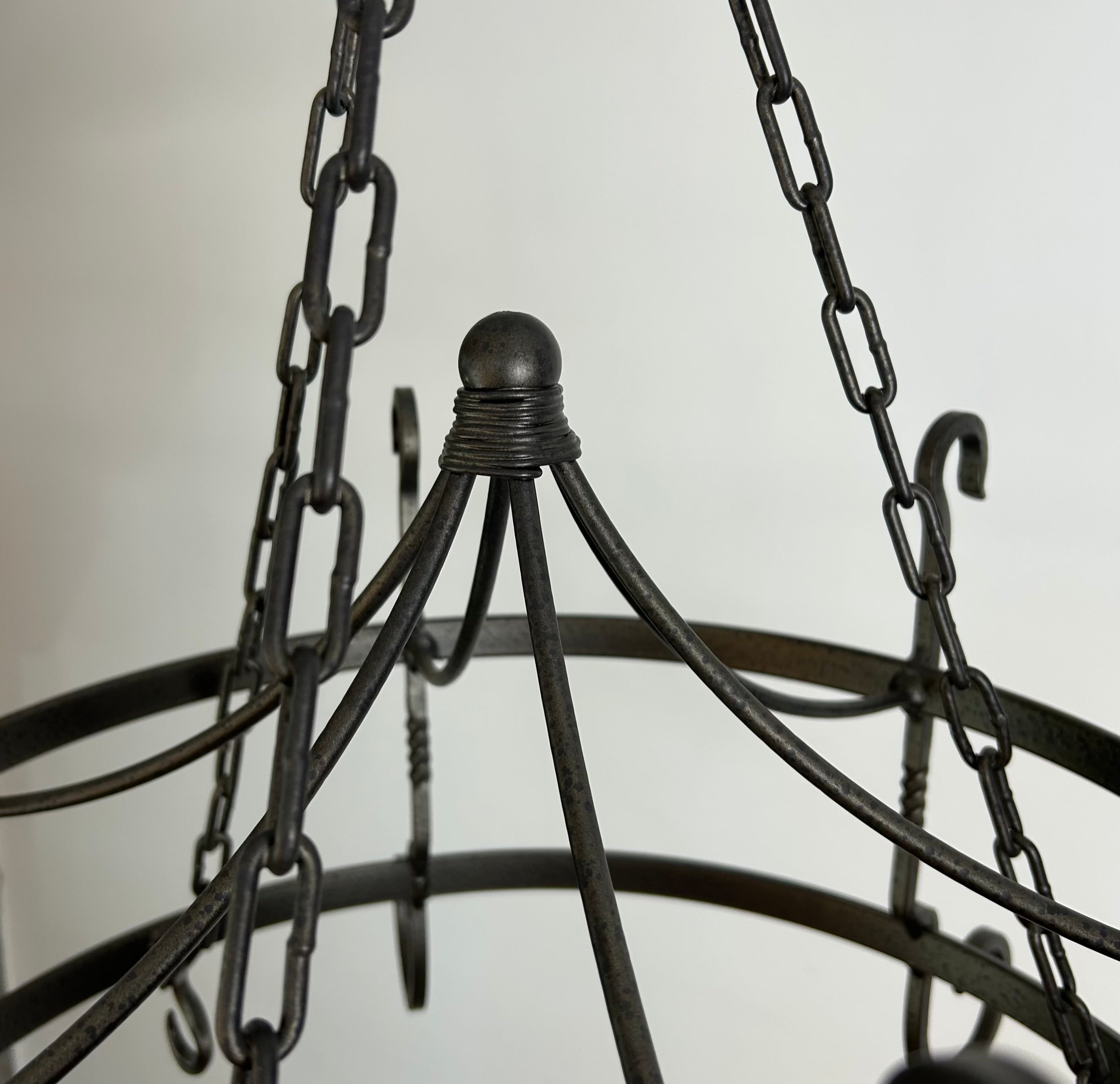 Hand Wrought Iron Pot Rack with 6 Hooks, Pewter Finish.