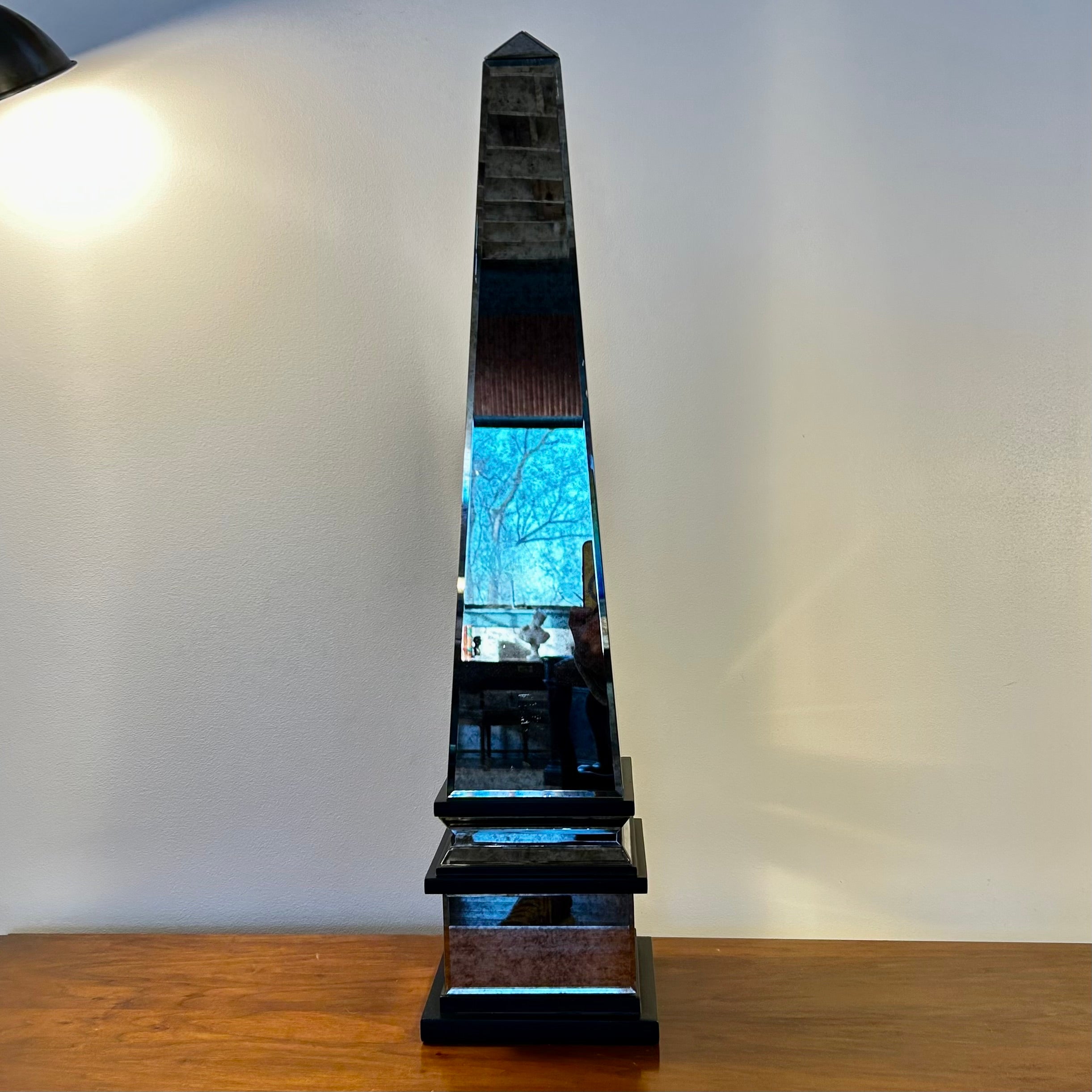 Howard Elliot Collection obelisk, large mirrored beveled smoked glass.