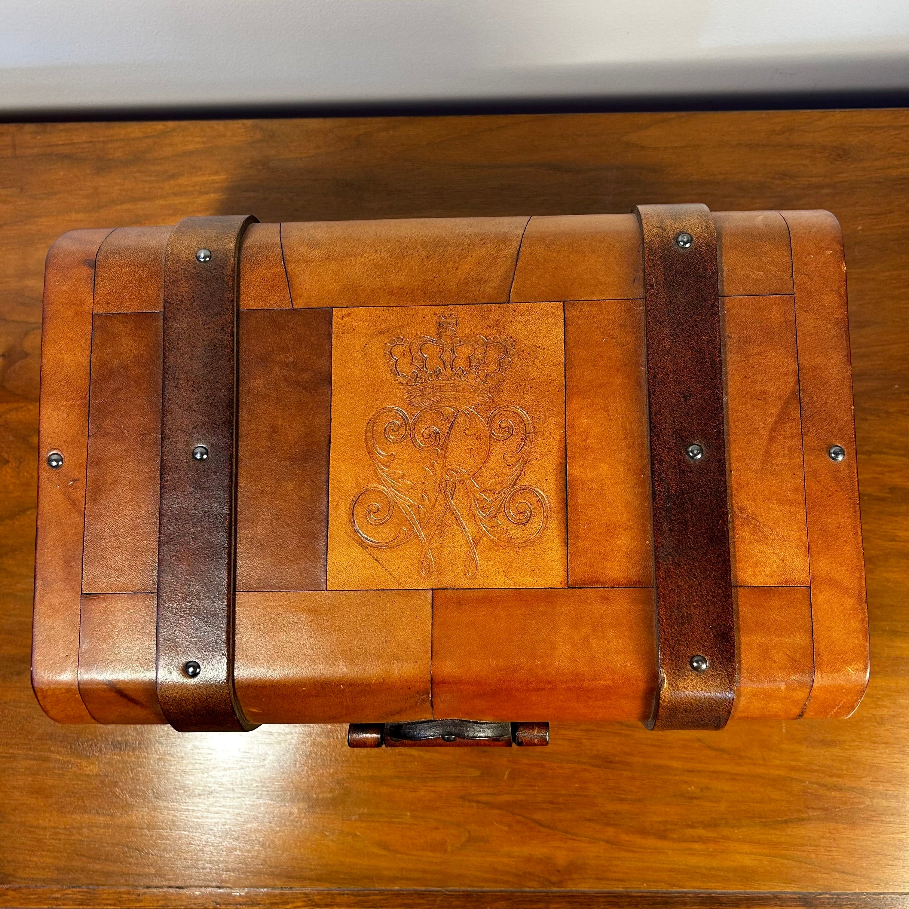 Wesley & Bober, Inc. humidor, cigar case, leather wrapped. It has a humidor inside and removable wood rack.