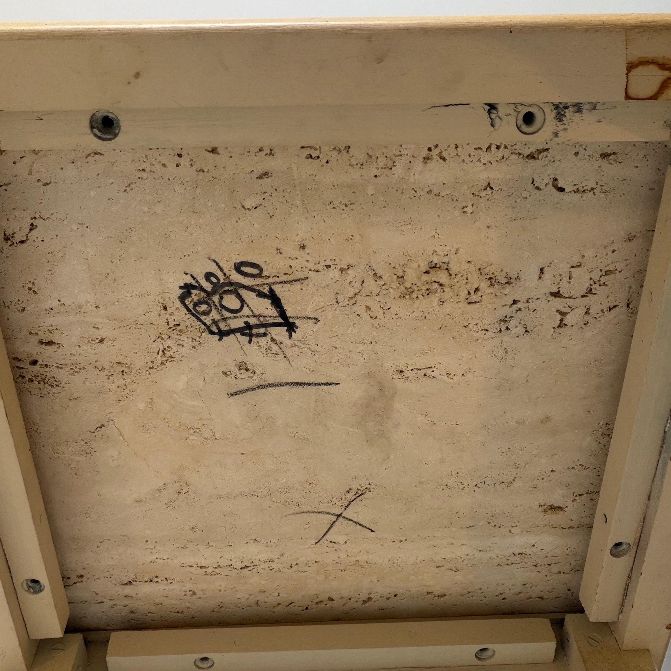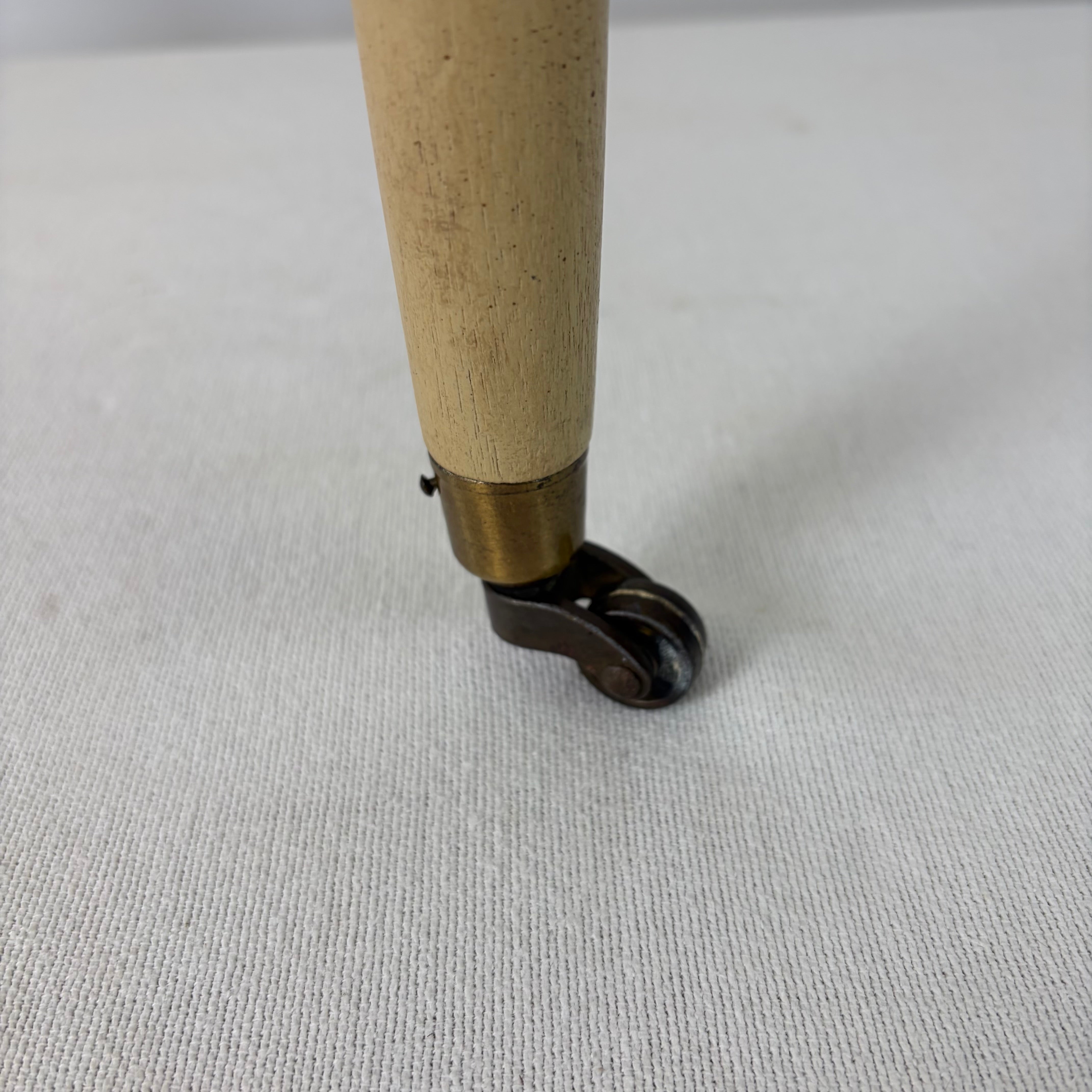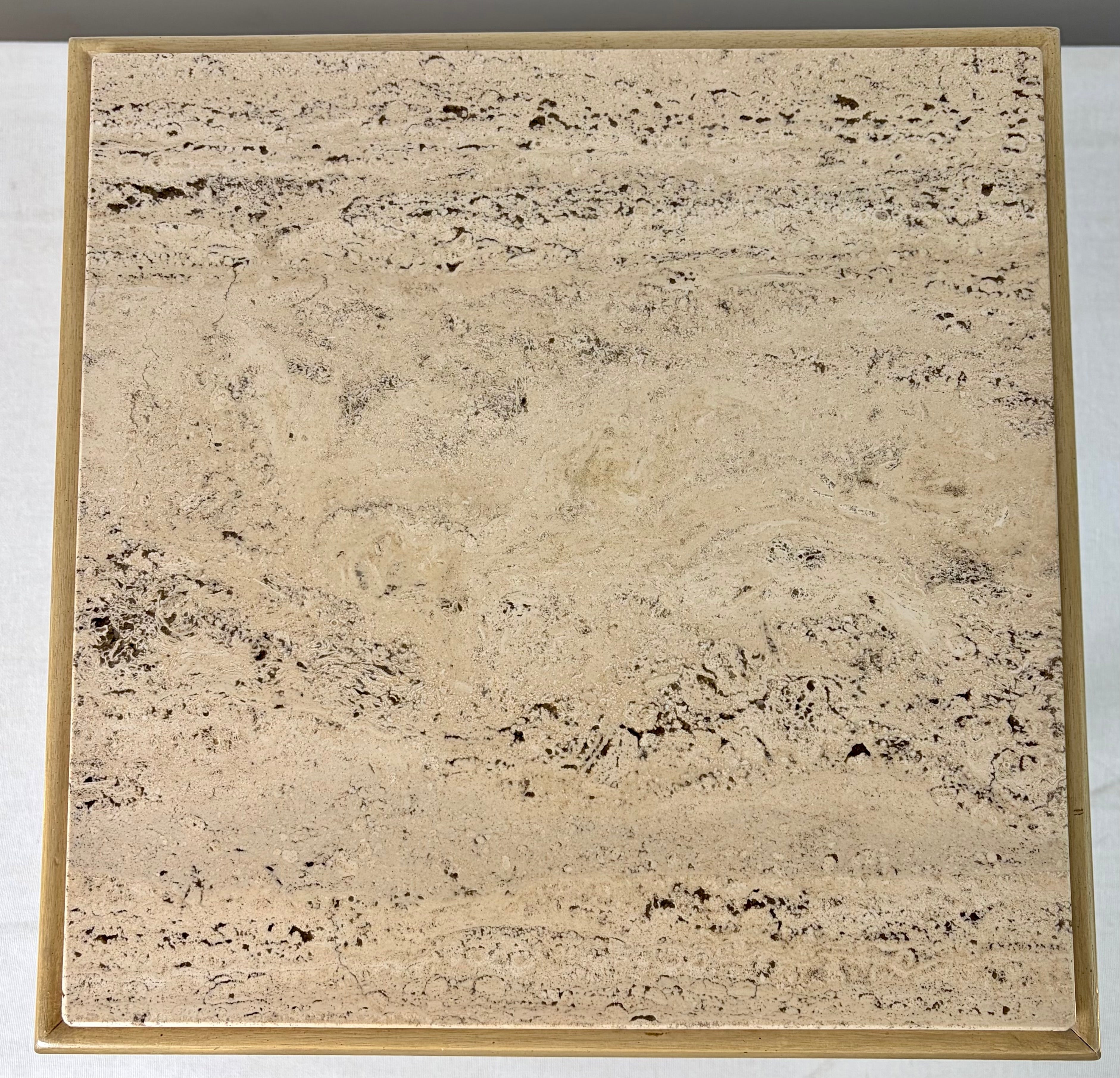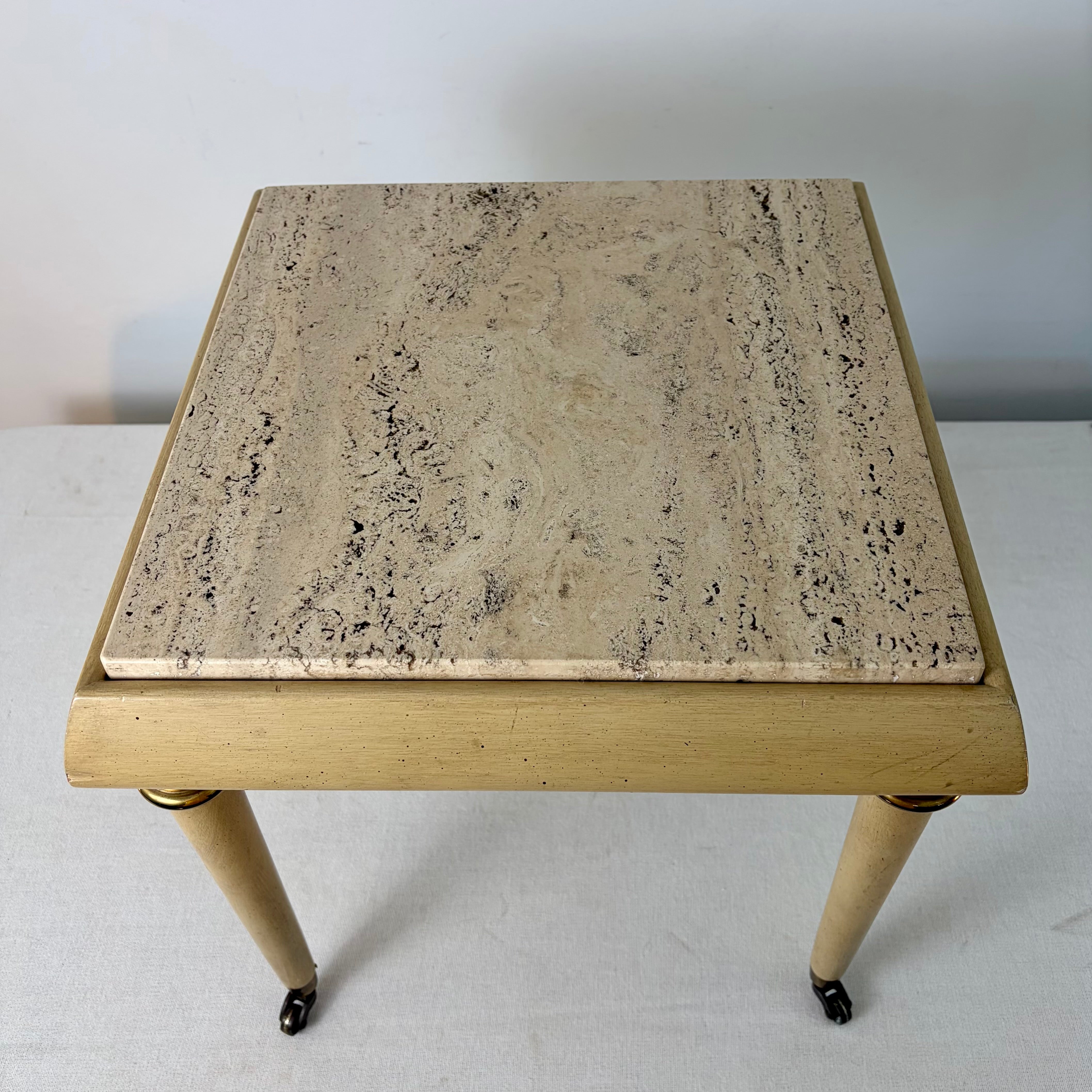 Italian Regency Style Mini Table on Casters Ivory Wood Base with Brass Detail and Travertine Top.