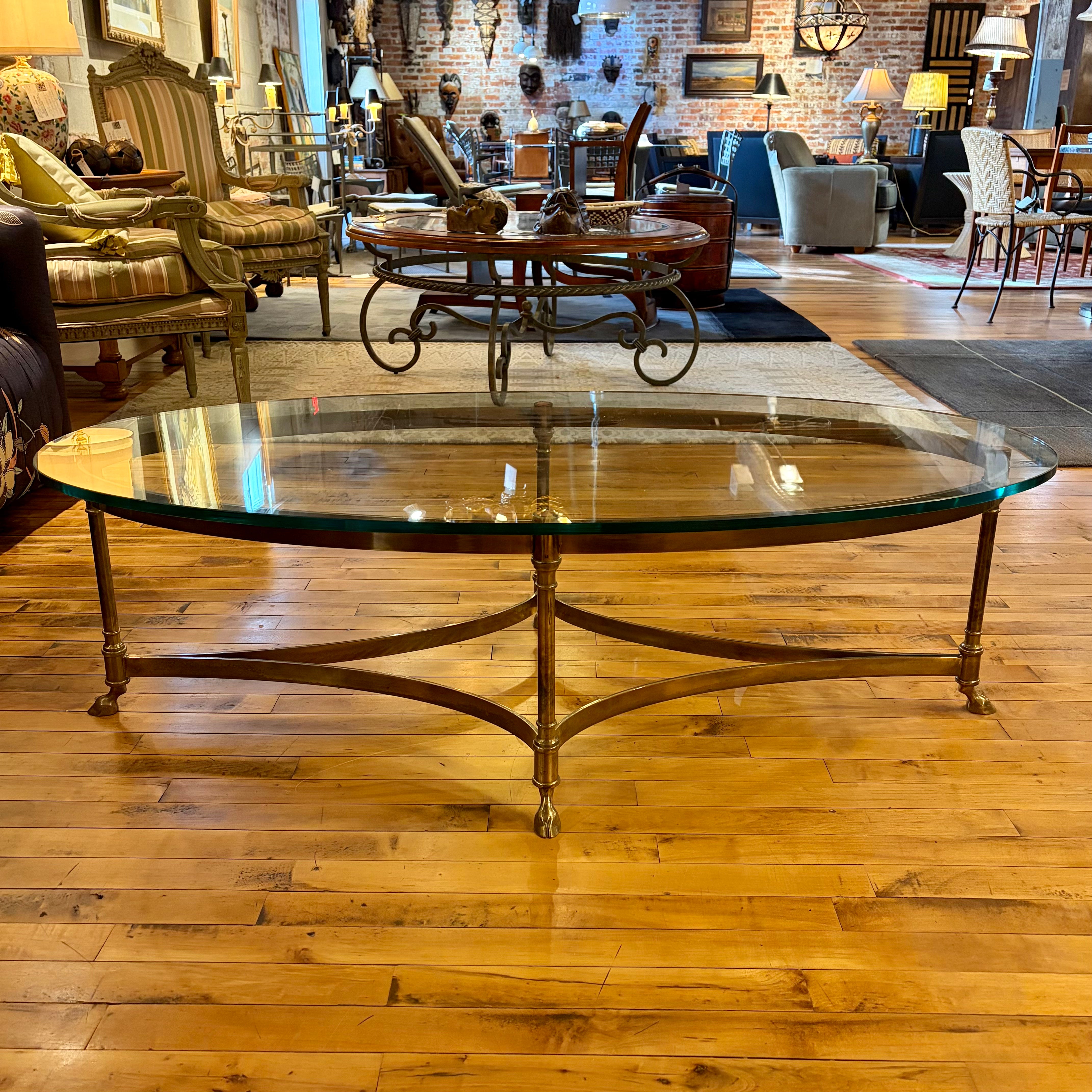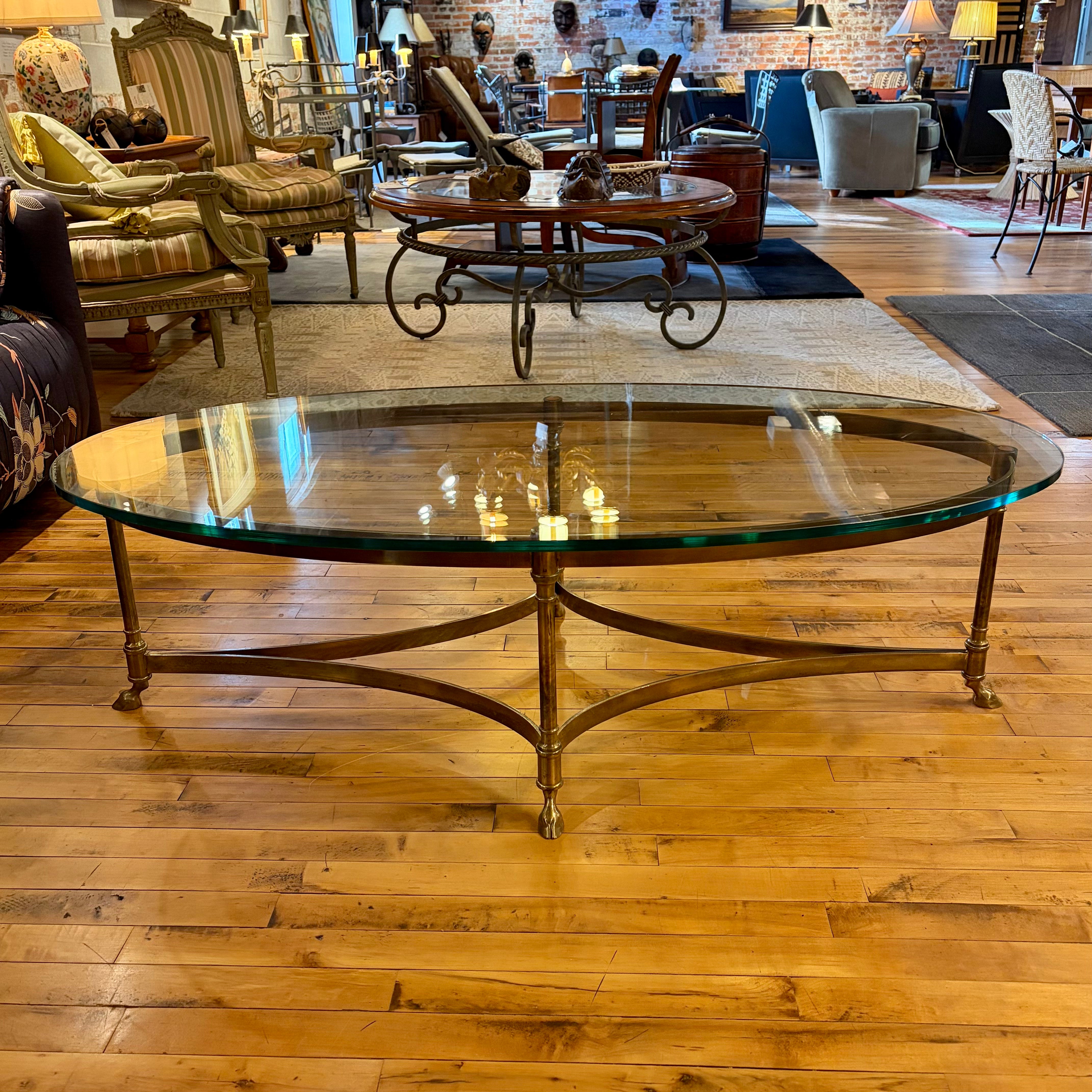 La Barge Coffee Table, Brass, Oval Glass Top.