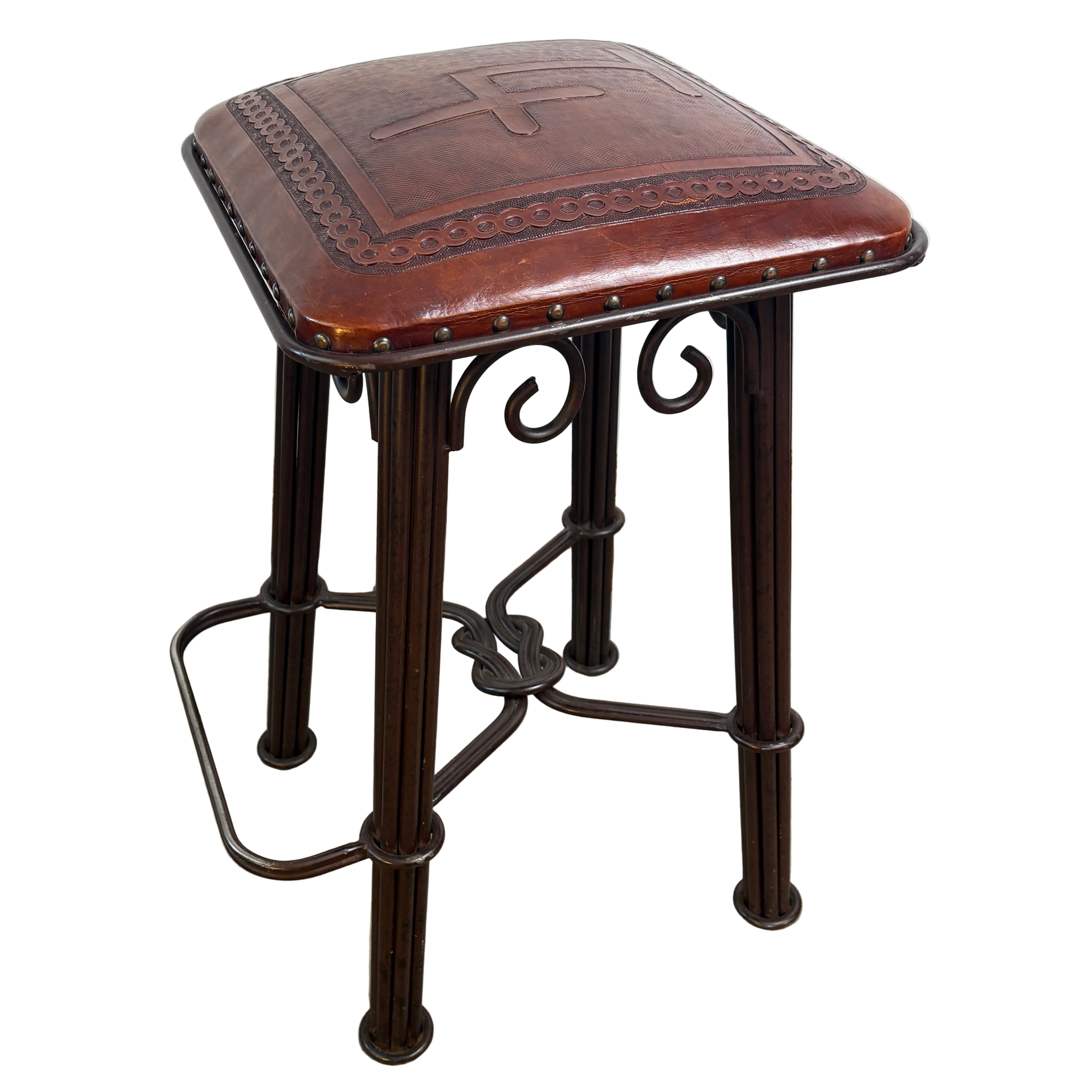Leather Top Bar Stool, Iron Frame, Foot Rest, Counter Height with Branding.