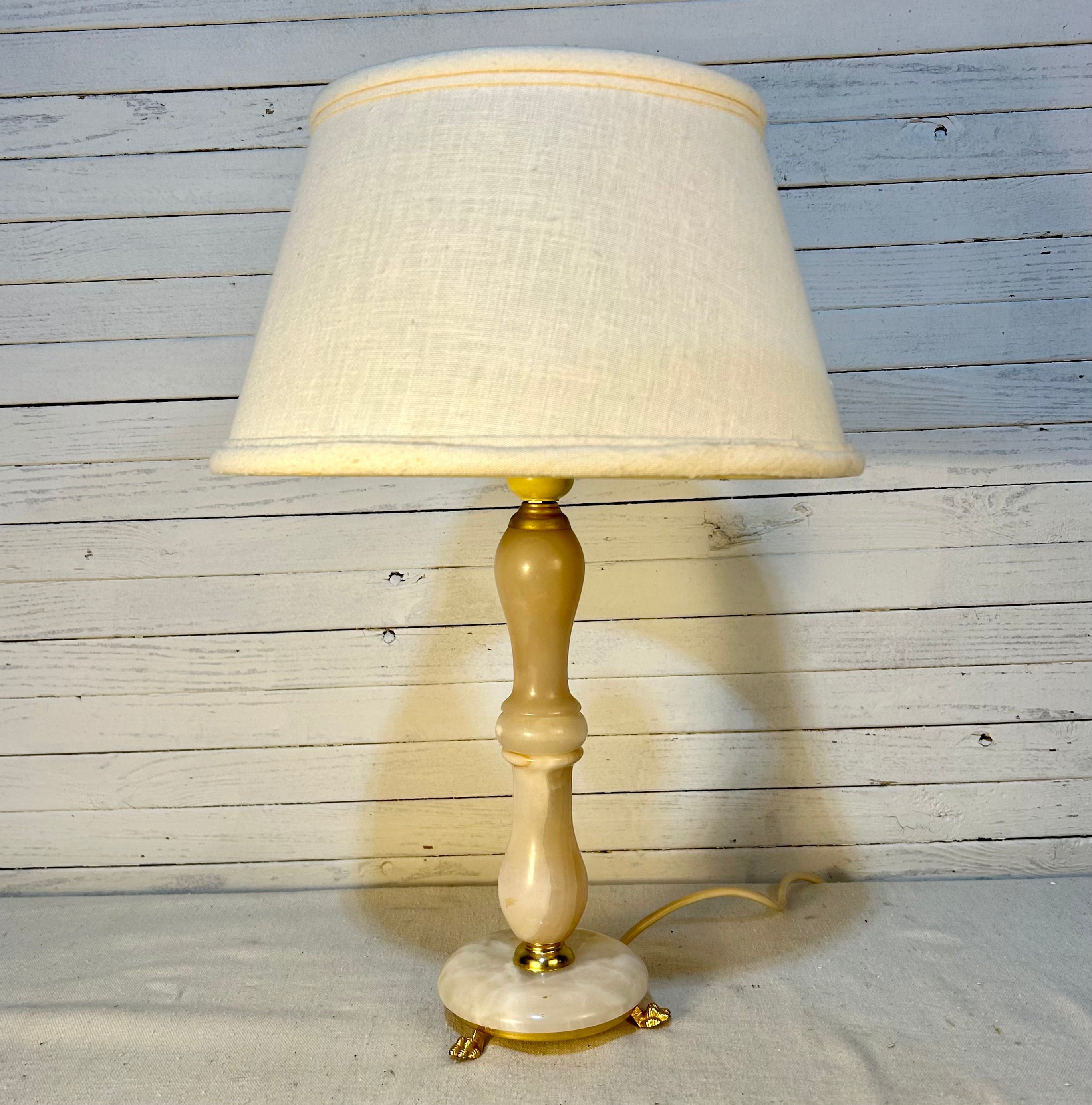 Vintage alabaster stone table lamp with 3 golden claw feet. Lamp shade sold separately ($20 additional)