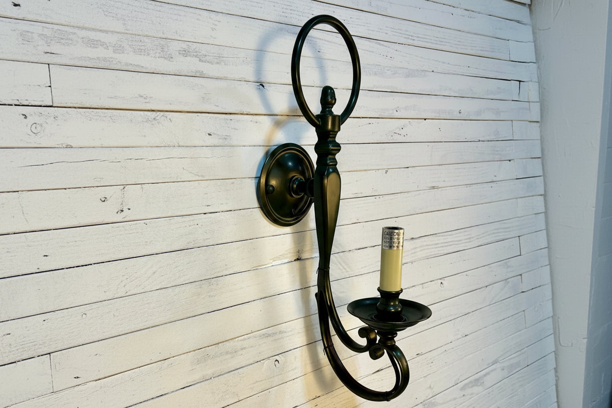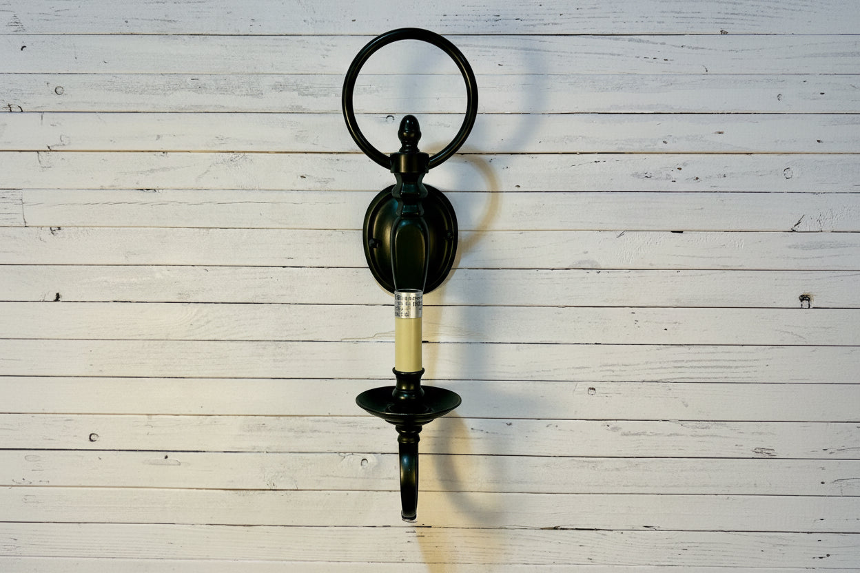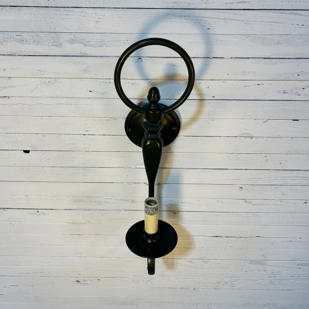 Visual Comfort (BZ) Wall Sconce Verdigris (dark green gray) Finish Metal Ring with Clear Glass Hurricane Shade.