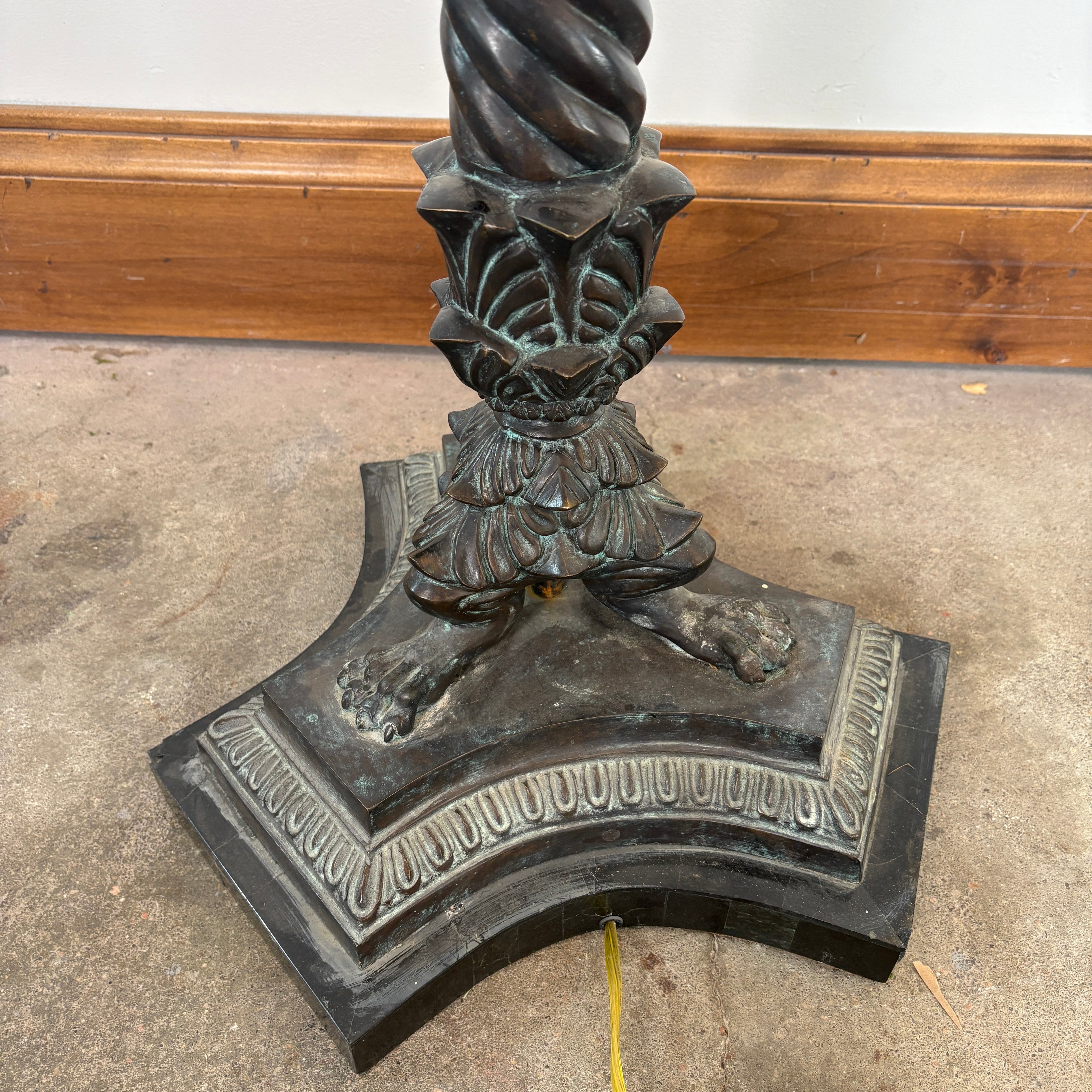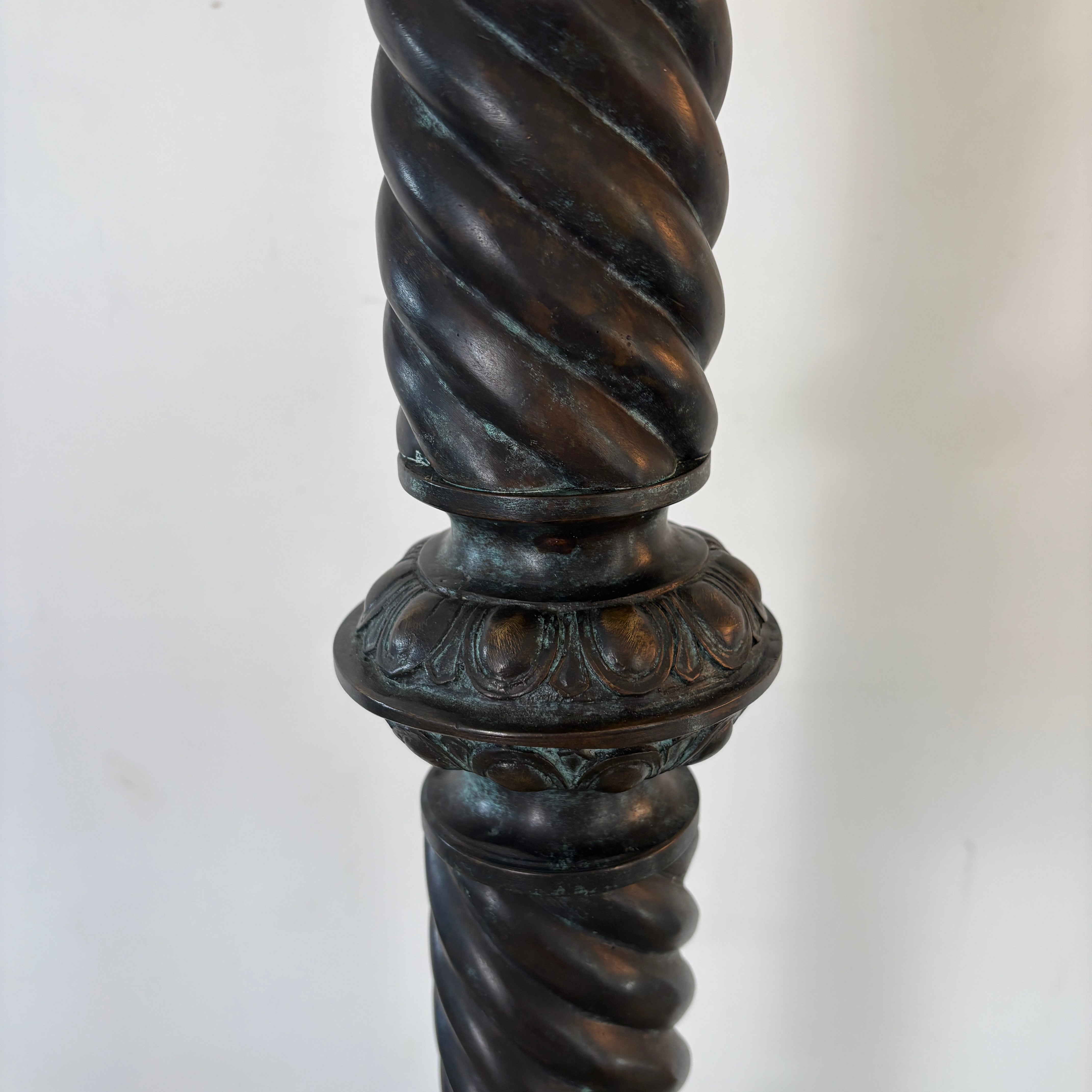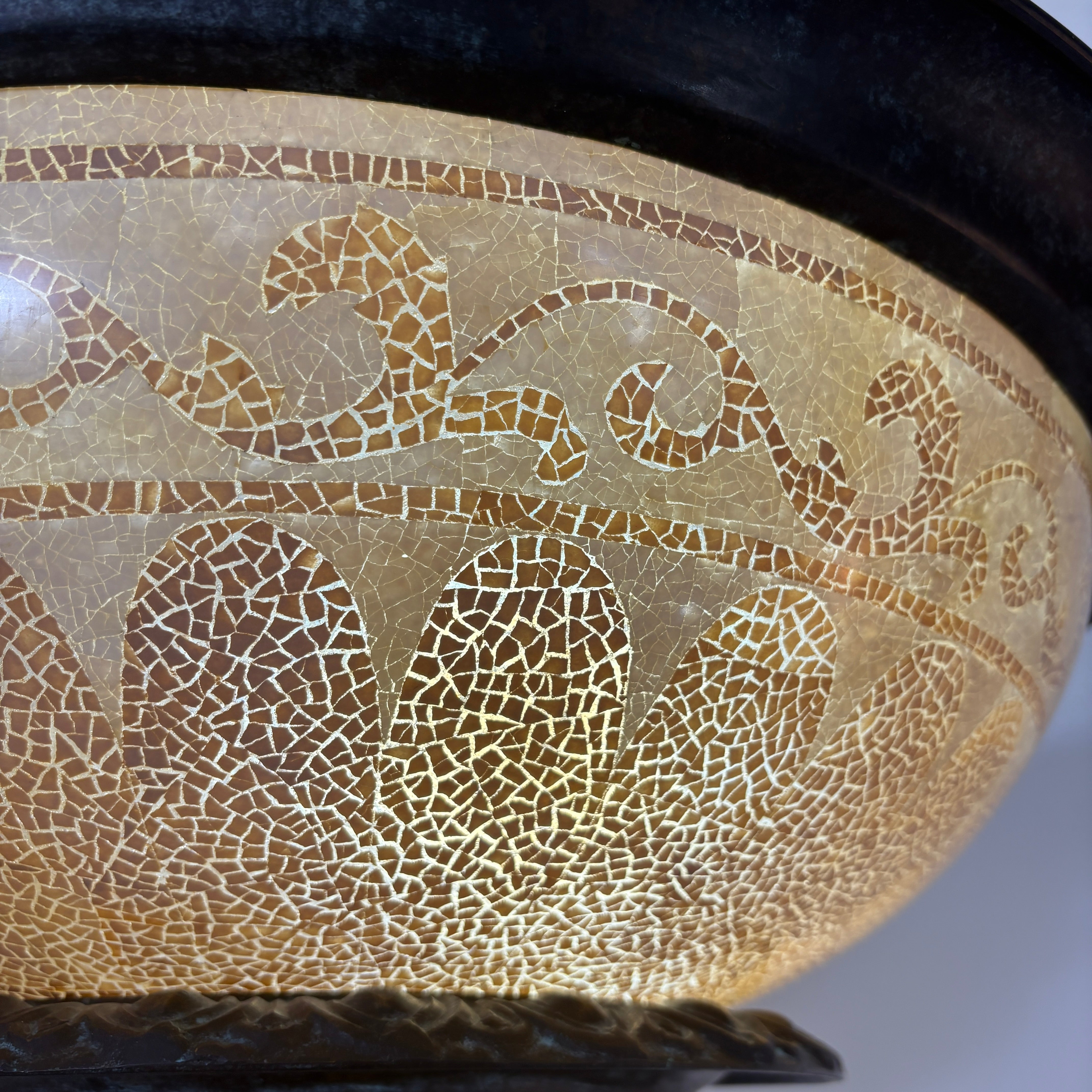 Maitland Smith Torchiere Floor Lamp Marble Base, Faux Mosaic Tile Globe, Metal Column and Fittings.