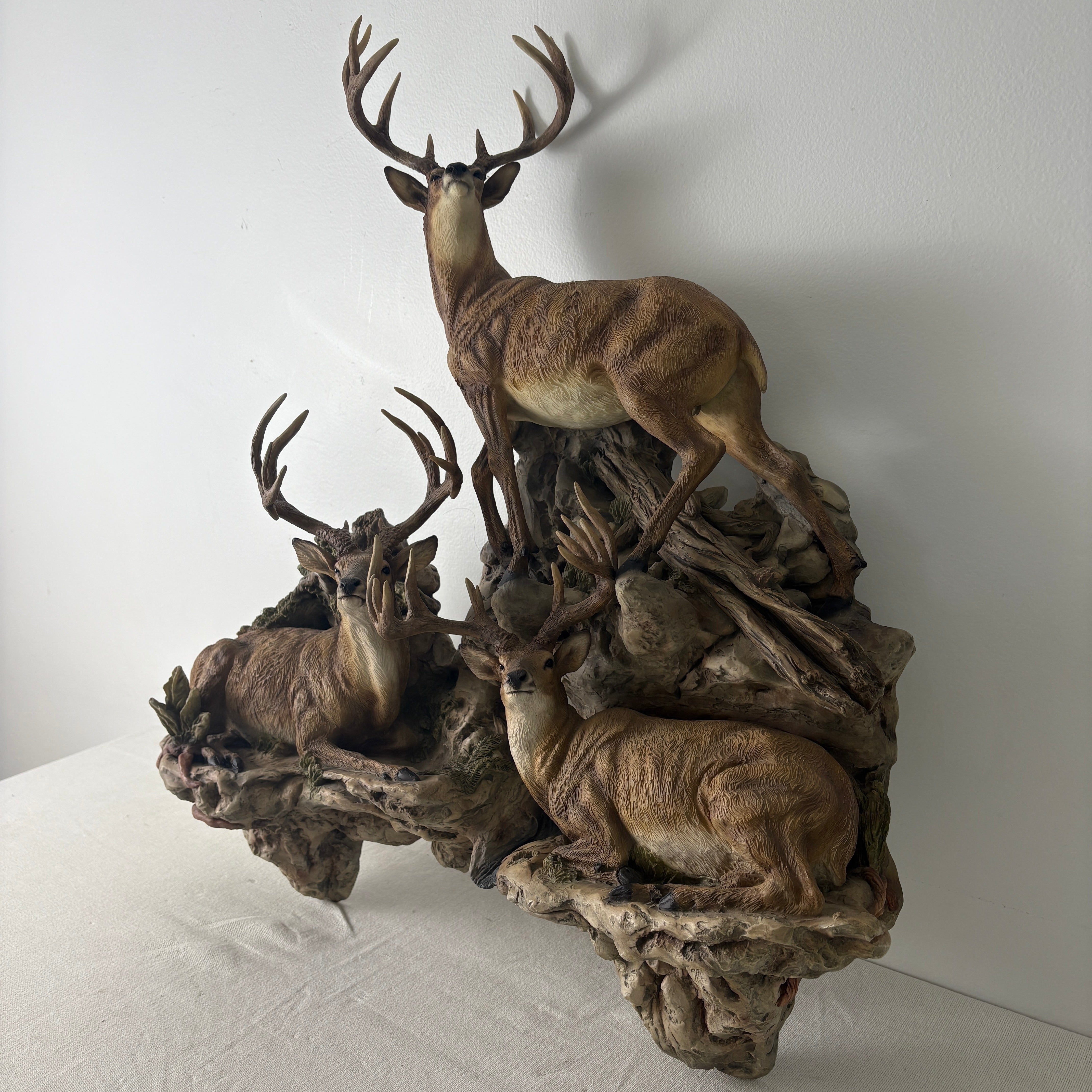 Mill Creek Studios, Artist Danny Edwards, "Sunrise" 1034/1200, 3 Whitetail Bucks, Cast Resin Wall Sculpture.